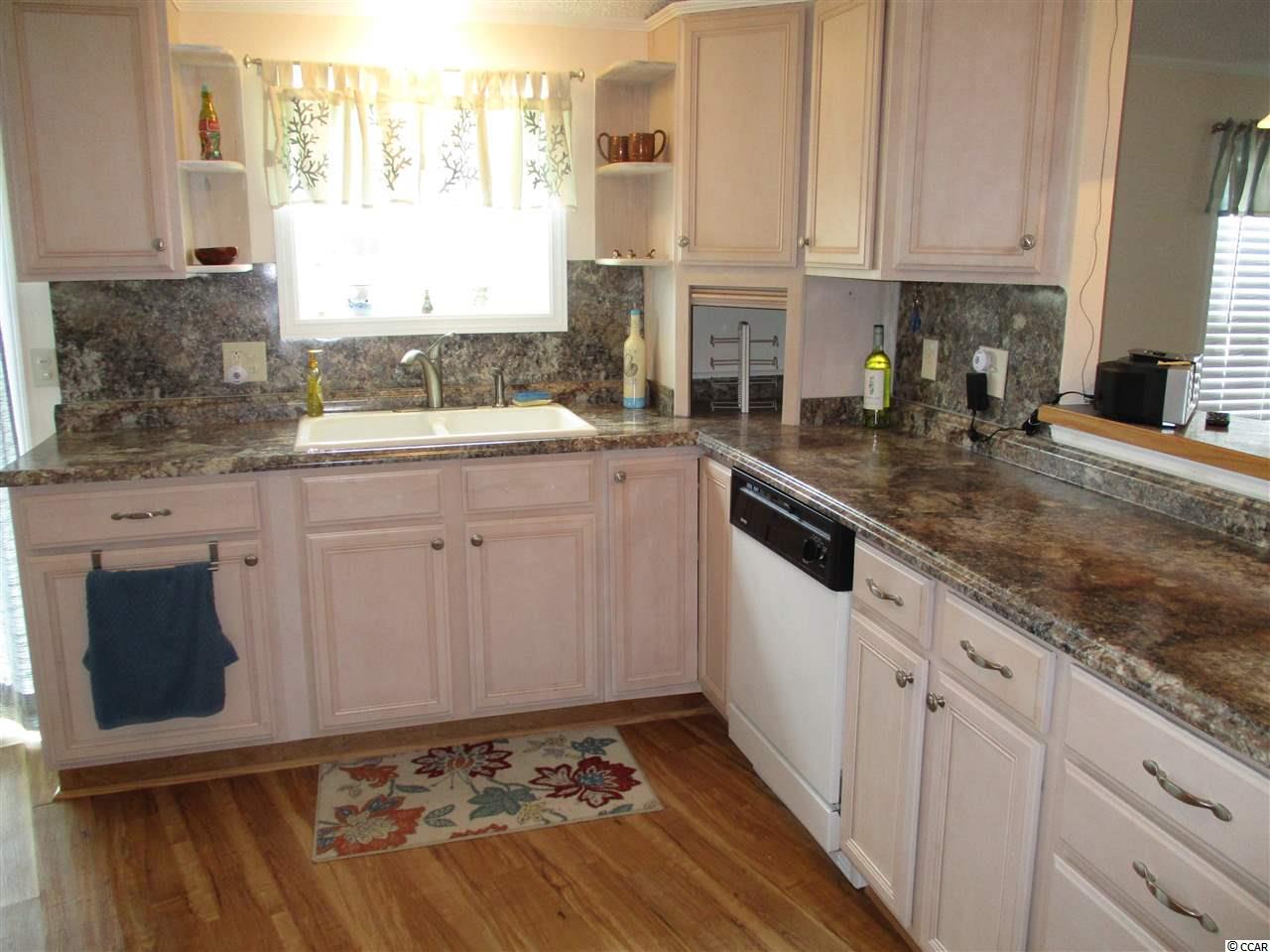 2 BR 2 BA (large 16x72) manufactured home in Captain's Cove MHP, a quiet community for folks 55 & older, located in Murrells Inlet, SC, approx. 15 miles south of Myrtle Beach. Community has a clubhouse & pool, and lots of activities for residents who wish to participate. Near Murrells Inlet's famous water front restaurants & close to Huntington Beach (Oceanfront) State Park & beautiful Brookgreen Gardens. Also near lots of golf courses & many other types of entertainment. Only minutes from a modern hospital & doctors' offices. This is an extra large home, with a bed rm and bath at each end allowing for privacy when you have guests. Home was completely remodeled in 2015. At that time, new high quality kitchen cabinets were installed, along with new counter tops, sink & faucets, refrigerator, garbage disposal, and breakfast bar, new shower w/ceramic tile in master bath, new sinks, vanities, lighting, & mirrors in both baths, new tub & ceramic surround in hall bath, new ceiling fans, vinyl plank flooring and Pella double pane vinyl windows throughout. Then, during the past 3 years, a new covered entry deck, a large new rear deck, new water heater, new electric panel, new sliding glass doors, and vinyl fencing w/solar lighting were installed. All kitchen appliances, washer & dryer, outside storage bldg. and some furniture will remain. This is a beautiful home in better than new condition, it will not last long call today to see.
