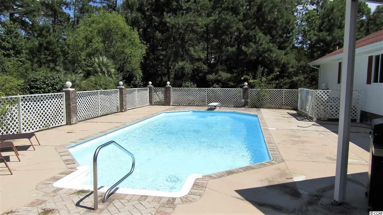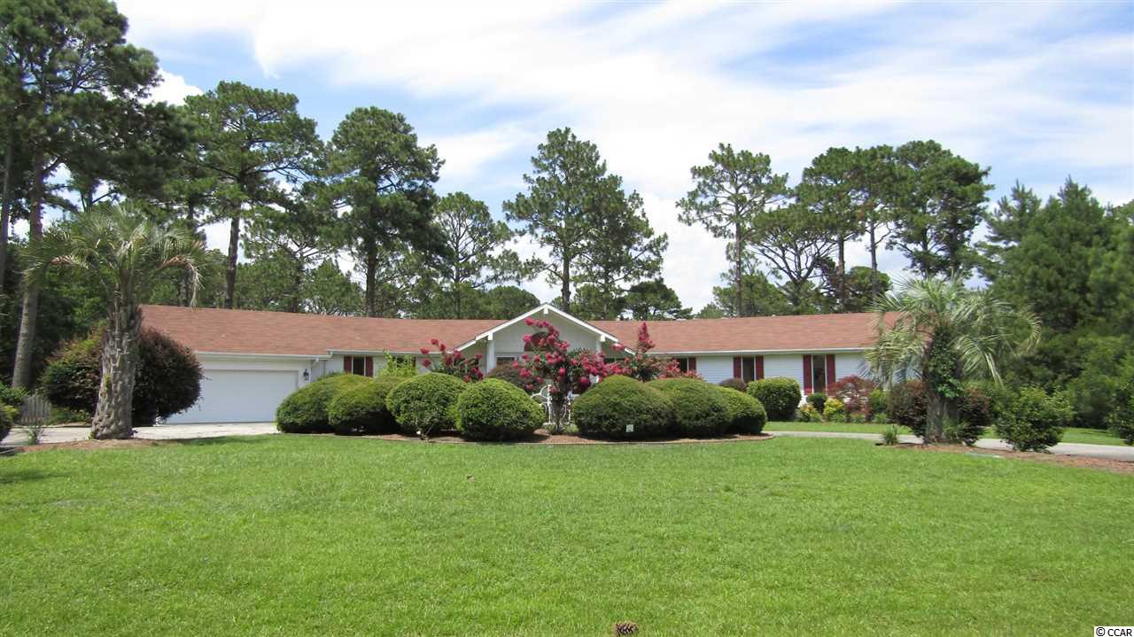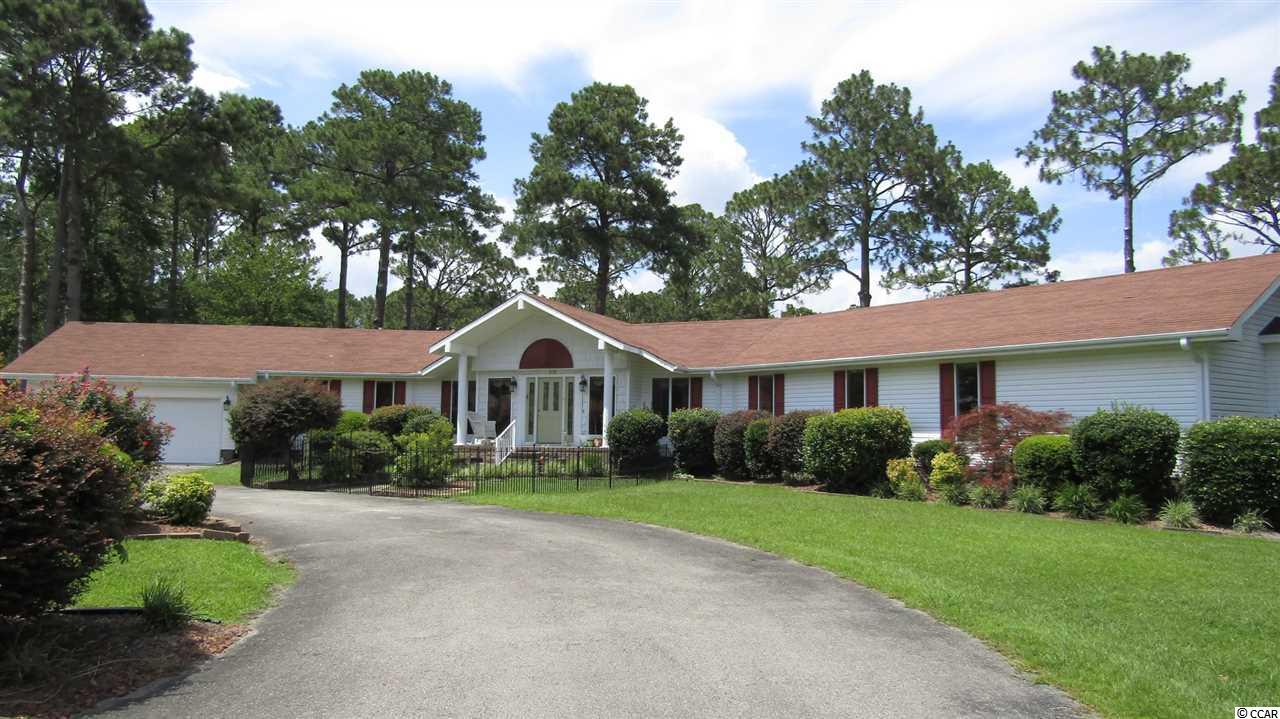 Ranch style home just minutes to town in a natural environment featuring a beautiful lawn, circle drive and entry area. The four bedroom, 3 bath home is highlighted by enormous living areas including the kitchen, living room and Charleston Sun Room. A beautiful fireplace is focal point in the living room. Decorative fencing makes a garden front entry reminiscent of the charm of Charleston style homes. The almost acre lot is nicely landscaped with flowering trees and perennials along with accents of crepe myrtles, wax myrtles, rose bushes and azaleas. Laminate and tile floors in living areas, carpeted bedrooms. Stainless appliances, granite counter tops and oak cabinetry in the kitchen with recessed and under cabinet lighting. Huge, enclosed pool area off the Sun Room for ultimate entertaining!