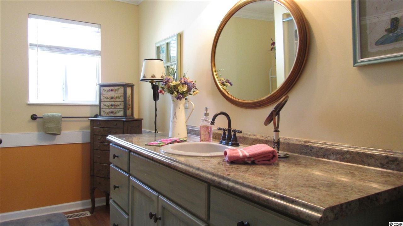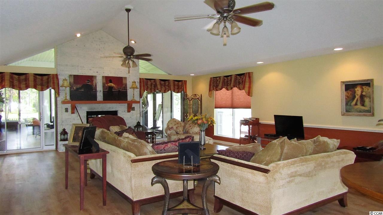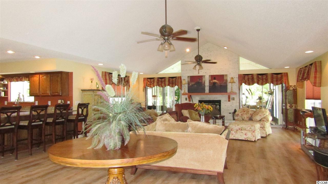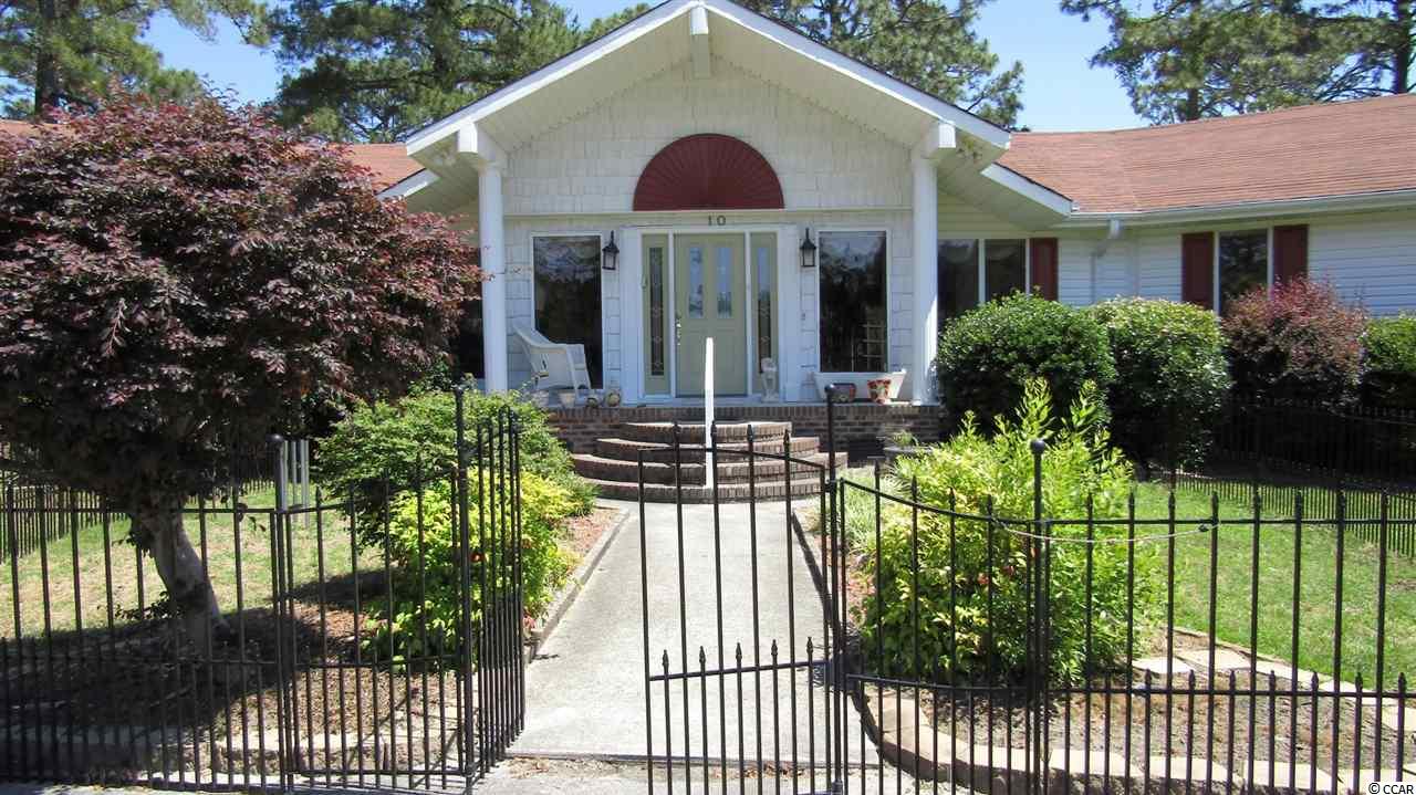 Ranch style home just minutes to town in a natural environment featuring a beautiful lawn, circle drive and entry area. The four bedroom, 3 bath home is highlighted by enormous living areas including the kitchen, living room and Charleston Sun Room. A beautiful fireplace is focal point in the living room. Decorative fencing makes a garden front entry reminiscent of the charm of Charleston style homes. The almost acre lot is nicely landscaped with flowering trees and perennials along with accents of crepe myrtles, wax myrtles, rose bushes and azaleas. Laminate and tile floors in living areas, carpeted bedrooms. Stainless appliances, granite counter tops and oak cabinetry in the kitchen with recessed and under cabinet lighting. Huge, enclosed pool area off the Sun Room for ultimate entertaining!