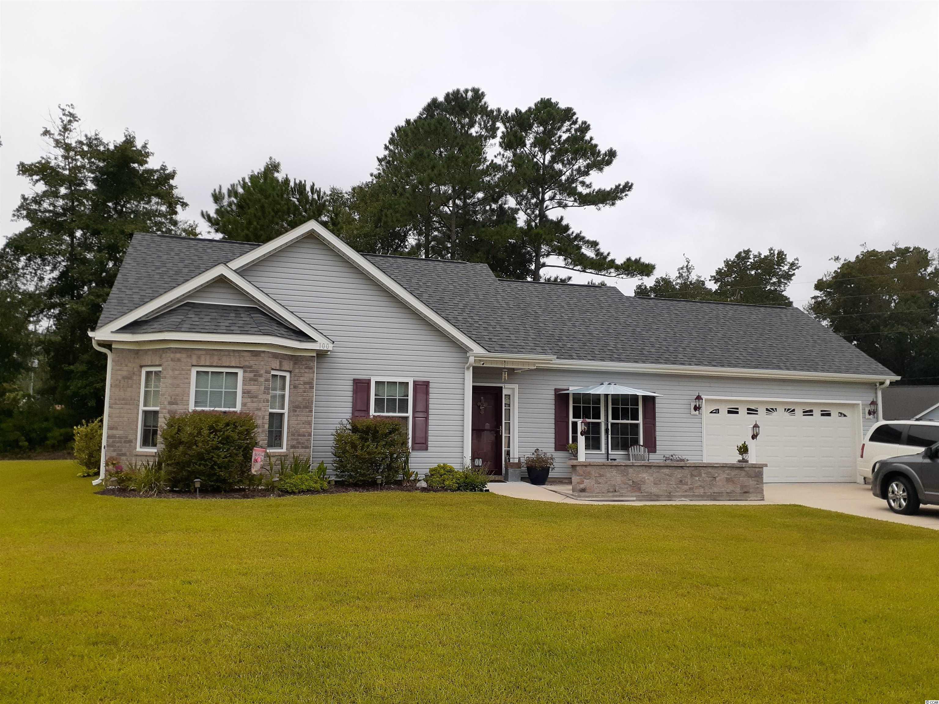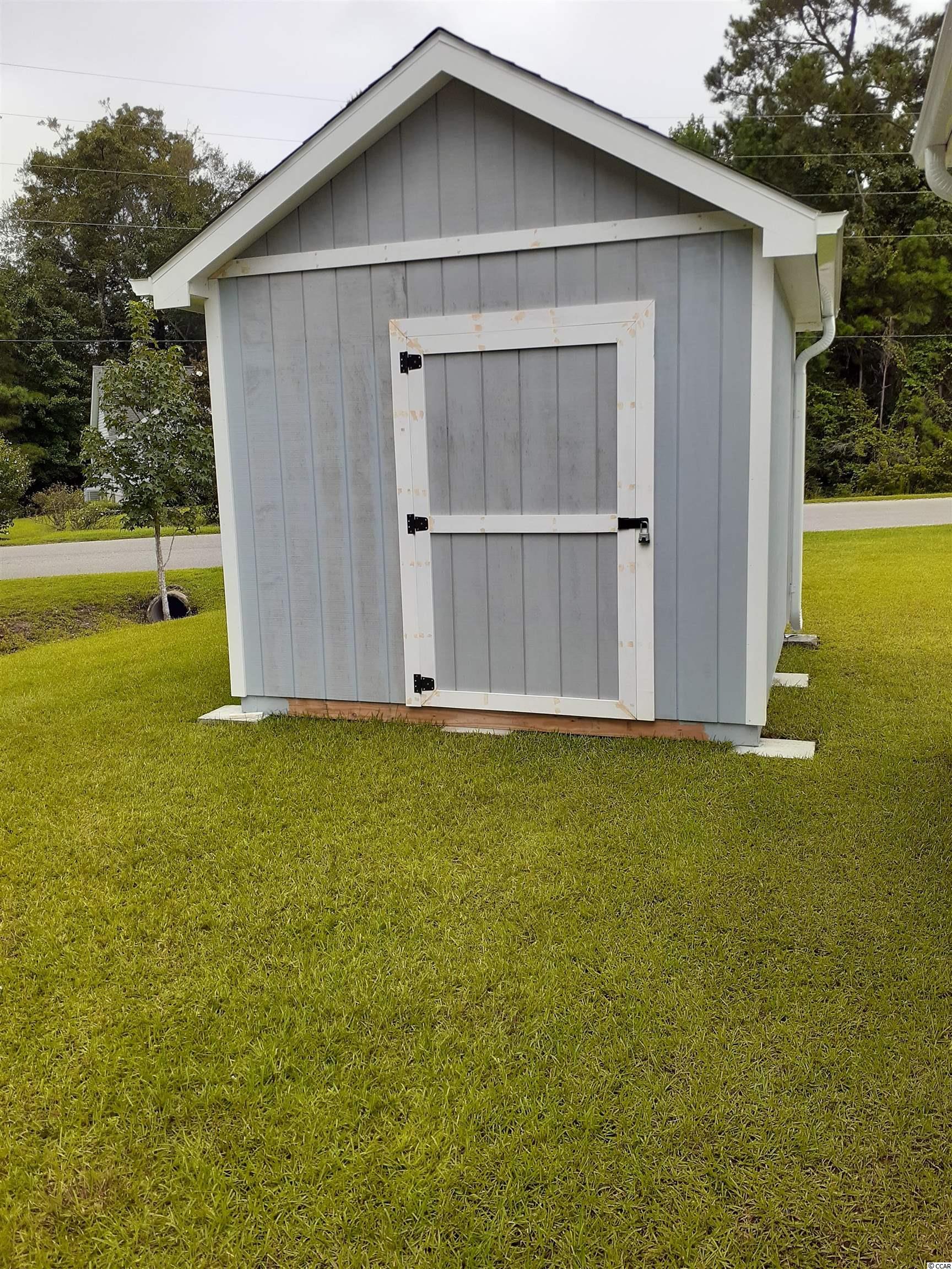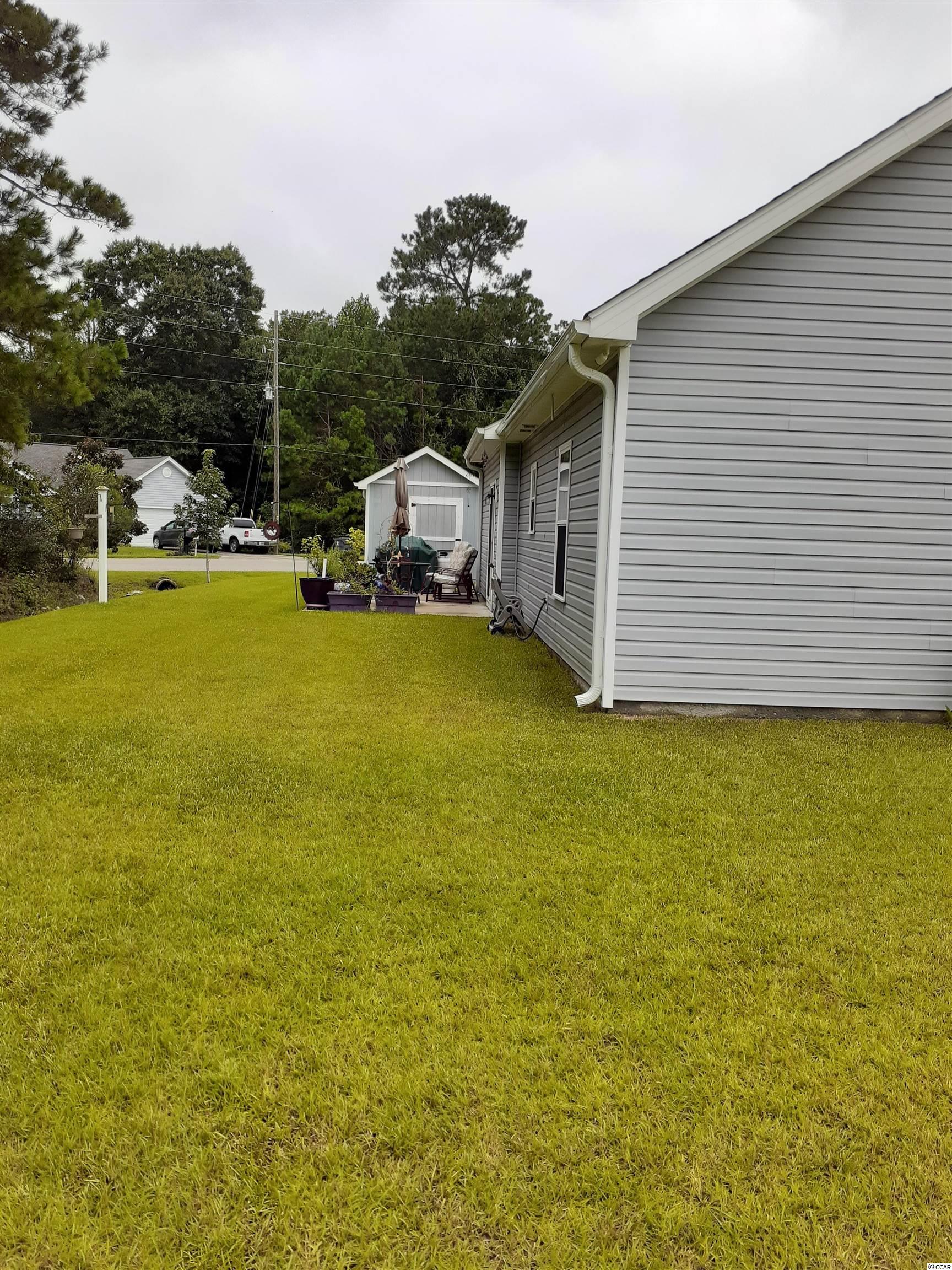 This well-maintained Kennedy B Deluxe model home sits on a large .33 size corner lot in the Bristol Pines community in Myrtle Beach. This single level home has 3 nice sized Bedrooms, 2 full Baths and a 2-car Garage. Vaulted ceilings in the Living Room and natural light coming in from the windows makes the home inviting and open. In the Hallway there is a set of pull-down stairs to give you access to the attic. There is an eat-in Kitchen with upgraded Cabinets that have self-close and slam proof features, Stainless Steel appliances, Breakfast Bar & Sliders out to the Patio for grillin and chillin! Around the doorway of the sliders is a unique wooden accent piece. The Master Bath has a nice walk-in Shower. Out in the back yard there is a detached storage shed for all the extras! Good curb appeal! Great central location and close to all the Grand Strand has to offer: great championship golf courses, good schools, excellent restaurants, entertainment, shopping, medical facilities & the Airport.