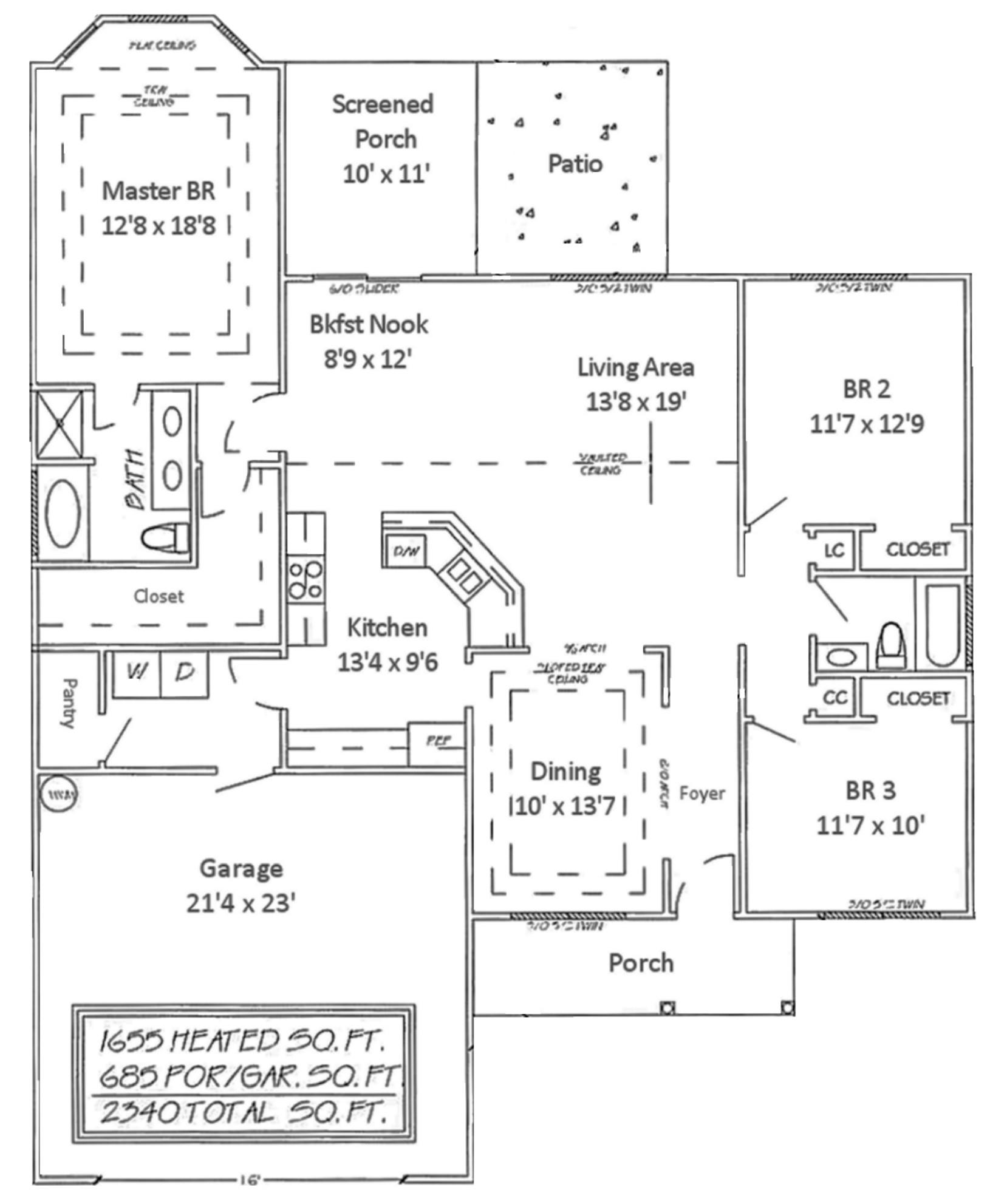 Large lots, no HOA fee, basic Deed Restrictions. Can park your RV or Boat at your home. This home has a low country-covered front porch and a rear screened porch and sits on a premium lot. The large great room has a vaulted ceiling with a fan/light and a formal dining room with a tray ceiling, and an open floor plan. The kitchen has solid wood custom built cabinets with knobs and crown molding, stainless steel appliances, a breakfast counter/bar, a breakfast nook, and a pantry closet. Split bedroom floor plan. The master bedroom suite has a double tray ceiling, ceiling fan, bay window, and a huge walk-in closet. The master bath on-suite has double sinks in a raised height vanity, a garden tub and a separate walk-in shower. Our homes are built with a minimum 9' smooth ceiling, 30-year architectural roof shingles, gutters, and sodded yard including an irrigation system. Spacious finished and painted 2-car garage with an automatic door opener, and pull down stairs to attic storage above. Enjoy the peace and quiet of small-town living, conveniently located and just minutes from downtown Loris, Nature Park, shopping, restaurants, and hospital. Desired Green Sea Floyds school district! Video is for illustrative purposes only and may be of a similar home built elsewhere. Square footage is approximate and not guaranteed, buyer(s) are responsible for verification