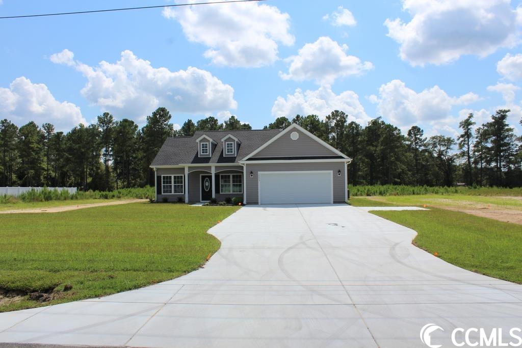 This Pecan Alt 1 is being built on a premium 3.08-acre homesite. Enjoy the quiet country living, yet close to everything! No HOA and basic CC&Rs. Can park your RV or Boat on your property. Popular 3-bedroom Pecan Alt 1 plan has open living areas, split bedrooms, a relaxing front porch, and a large rear screened porch. The living room has a vaulted ceiling and ceiling fan with lights. The large kitchen has lots of solid wood cabinets with crown molding and knobs, and a raised height breakfast counter. Stainless steel appliances - microwave, smooth top stove, dishwasher, and pantry closet. The master bedroom has a vaulted ceiling with a ceiling fan, a huge walk -in closet, double sinks in a raised height vanity, linen closet, and a 5 ft. walk-in shower. Guest bedrooms and bathrooms are on the opposite side of the house. Blinds package included. Spacious, finished, and painted 2-car garage with an automatic door opener, and pull-down stairs to attic storage above. Irrigation system, gutters, (front and back) sodded and landscaped yard. Video is for illustrative purposes only and may be of a similar home built elsewhere. Enjoy the peace and quiet of small-town living, conveniently located and just minutes from downtown Loris, Nature Park, shopping, restaurants, and hospital. Photos and videos are for illustrative purposes only and may be of a similar home built elsewhere. Square footage is approximate and not guaranteed, buyer(s) are responsible for verification.