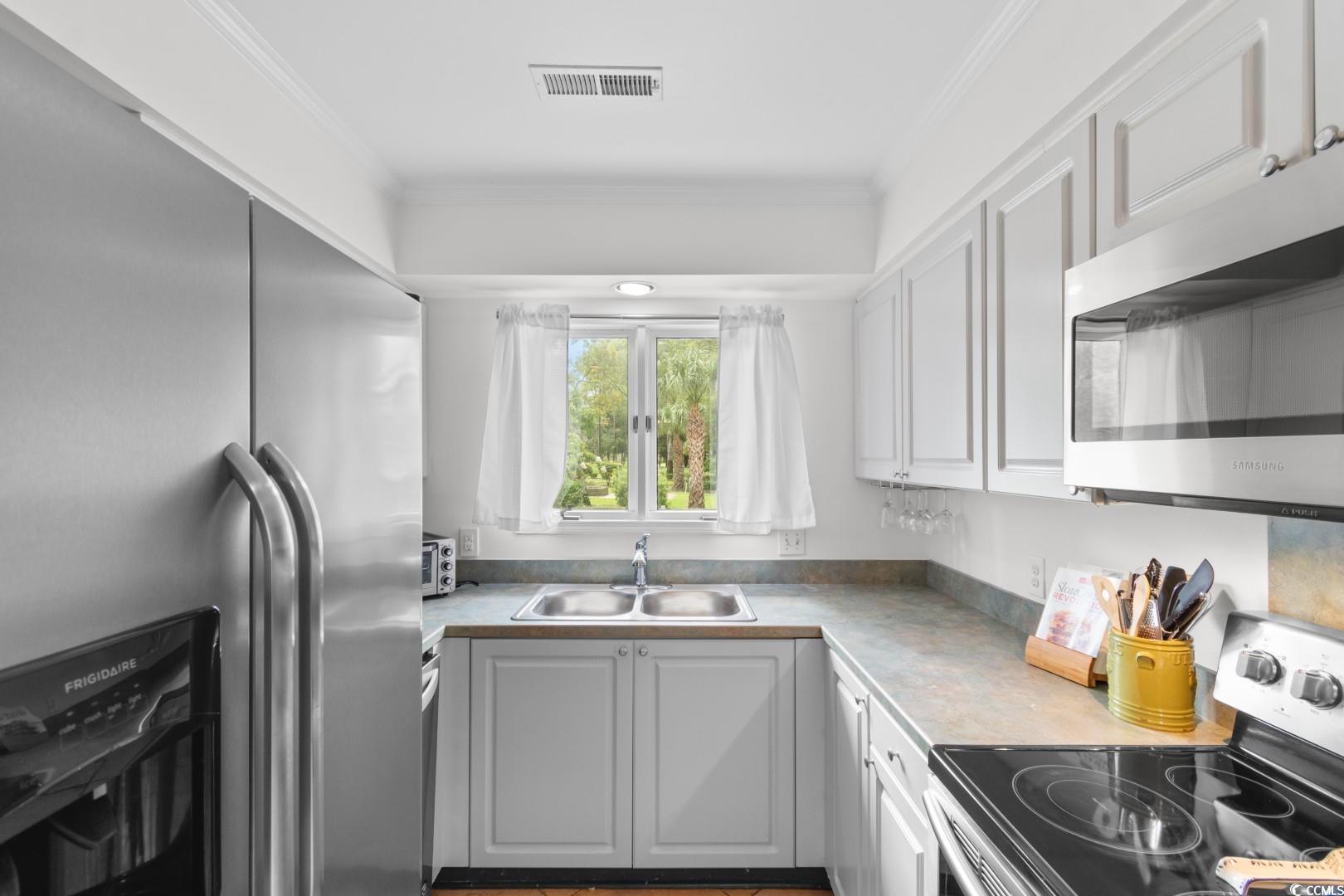 Appliances: Dishwasher, Disposal, Microwave, Oven, Range, Refrigerator, RangeHood, Dryer, Washer