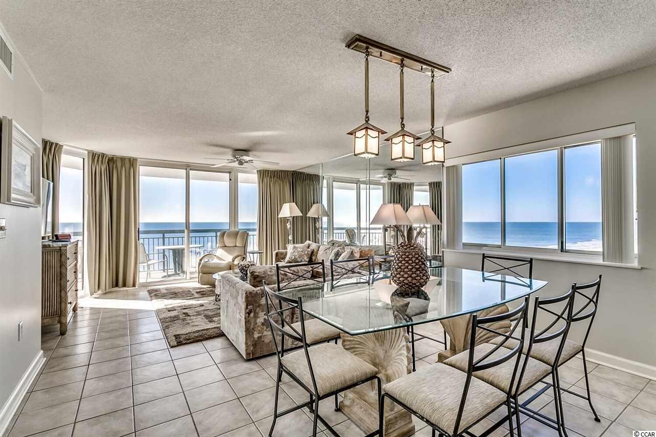Spectacular direct oceanfront views from the spacious south end corner condo of this well maintained 4 bedroom, 3 bathroom condo. Both the living room and master bedroom offer balcony access. There are 2 master bedrooms one is ocean front and the other has its own private balcony with an ocean view. North Shore Villas is a premier building with only 57 spacious condos and located in the prestigious Crescent Beach section of North Myrtle Beach. There are lots of amenities including outdoor pool, lazy river, kiddie pool, hot tub, oceanfront fitness room, parking underneath the building, and 2 separate large storage closets inside the condo. Great rental income or enjoy as a wonderful home or home away from home. Only used as their second home until April 2019, entire condo just painted, ready for you.