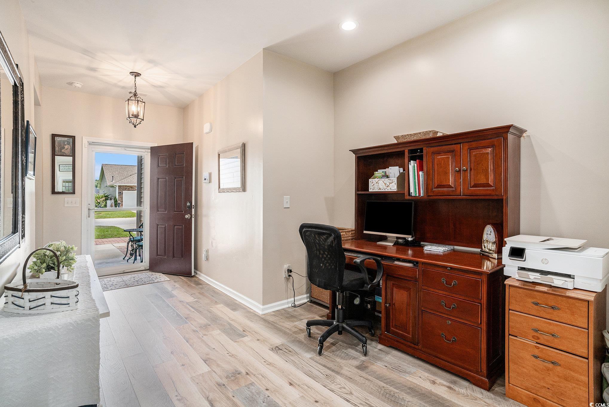 OPEN HOUSE: October 11, 2025 | Saturday | 11AM-1PM Discover this meticulously maintained 3-bedroom, 2-bathroom residence, perfectly situated on a tranquil side street within this highly desirable natural gas community, Glenmoor. This home offers an immediate sense of comfort and elegance, thoughtfully designed with an open concept floorplan that seamlessly blends modern living with timeless appeal. The main entryway provides ample space, allowing for personalized customization to welcome guests. A dedicated separate dining room offers an ideal setting for formal meals or intimate gatherings, complementing the home's versatile layout. The heart of this home is its inviting gathering room, an expansive space anchored by a beautiful fireplace, perfect for creating warm and cozy evenings. Adjacent to this, culinary enthusiasts will appreciate the kitchen, which boasts abundant counter space and a charming breakfast nook, making meal preparation and casual dining a delight. All stainless steel appliances, including the refrigerator, washer, and dryer, have been upgraded and convey with the home, ensuring a truly move-in ready experience. Experience the elegance and durability of luxury RevWood flooring throughout the entire residence, with no carpet to be found. This premium flooring combines the stunning visual appeal of hardwood with exceptional toughness, offering superior scratch and water resistance. Engineered for long-lasting performance, RevWood ensures lasting beauty and easy maintenance, an ideal choice for an active lifestyle. Step outside to a tranquil screened-in porch, where a truly amazing and private view of the lake's full length awaits. This serene panorama features graceful ducks and swans, ensuring peaceful moments without a neighbor in sight - a genuine backyard oasis designed for relaxation and enjoyment. Beyond the home's interior, practicality meets perfection within the garage, which is thoughtfully equipped with a utility sink, workbench, and cabinets, offering unmatched convenience for hobbies or storage. The property also boasts stunning curb appeal, featuring beautiful landscaping and curbscaping that reflect its meticulous care and enhance its overall aesthetic. Residents of the Glenmoor community enjoy exclusive access to a refreshing community pool, providing an additional avenue for leisure and recreation. The prime location on a quiet side street ensures a peaceful living environment while offering easy access to local amenities, dining, and entertainment, including the Conway Riverwalk and Myrtle Beach attractions.