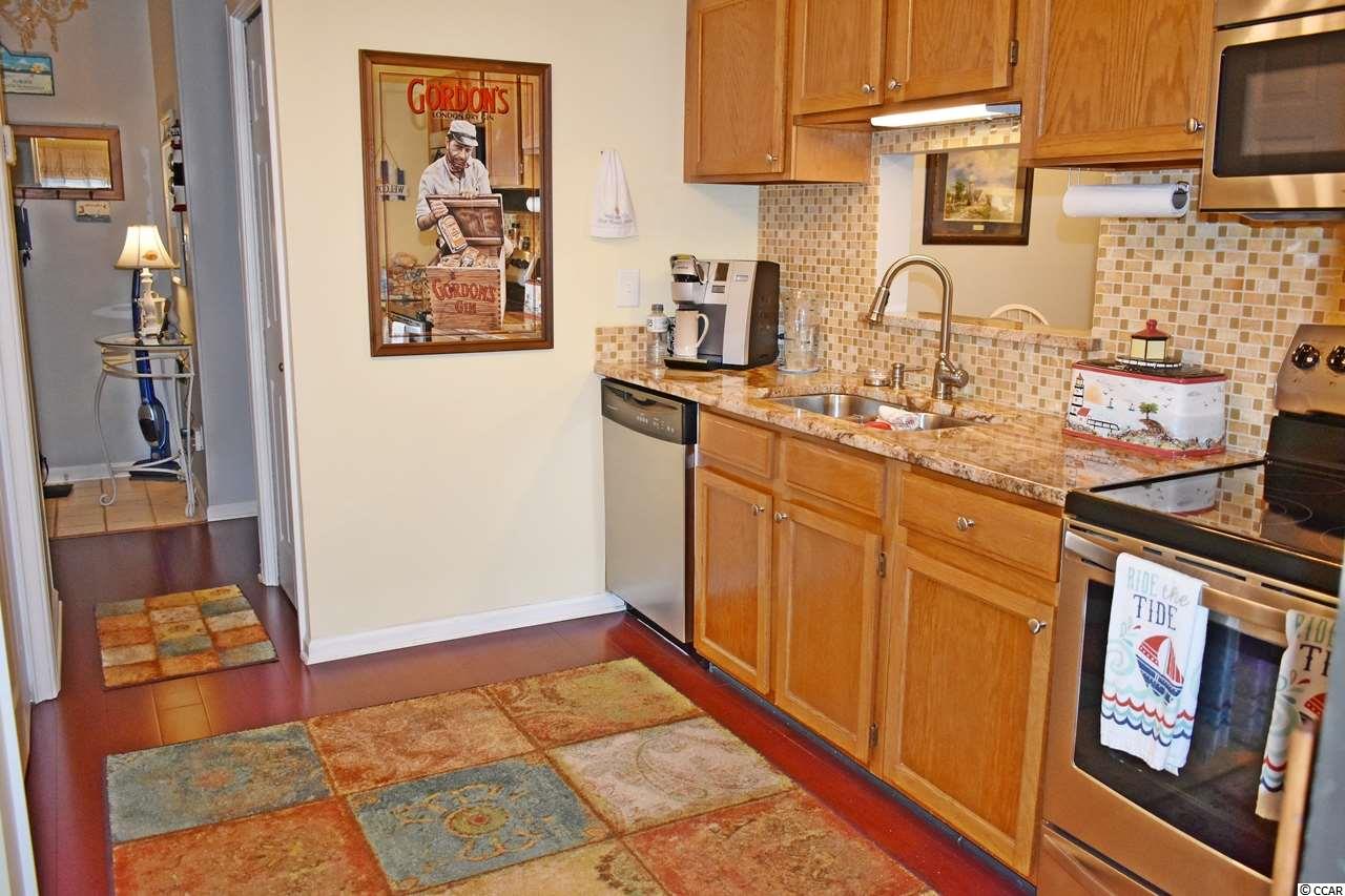 This hard to find 3BR first floor corner condo is located in the picturesque residential community of Indian Wells Golf Villas. Tucked away from traffic noise but is just minutes to beautiful Garden City Beach. This private community provides the homeowners with extra attention. Assigned parking, manicured landscaping, professional property management company. No special assessments and has not raised the HOA dues in 11 years. New roof, pretty pool and picnic area, A car washing area for owners and charging area for owners golf carts is provided. This condo has a desirable ""split bedroom"" layout, lots of windows because it is an end unit. Beautiful wood floors,9'ceilings, crown molding through out, kitchen, granite counter-tops, (even over the washer/dryer) stainless steel appliances. Ceiling fans in bedrooms and living room. Be sure to note the abundance of closets.You have easy access to the all season porch from the living area or kitchen. The porch has custom black out blinds, and even wall mount for extra TV. You will appreciate the extras this very special property provides its owners. Price Reduction and includes home warranty. Assigned parking right in front of your condo.