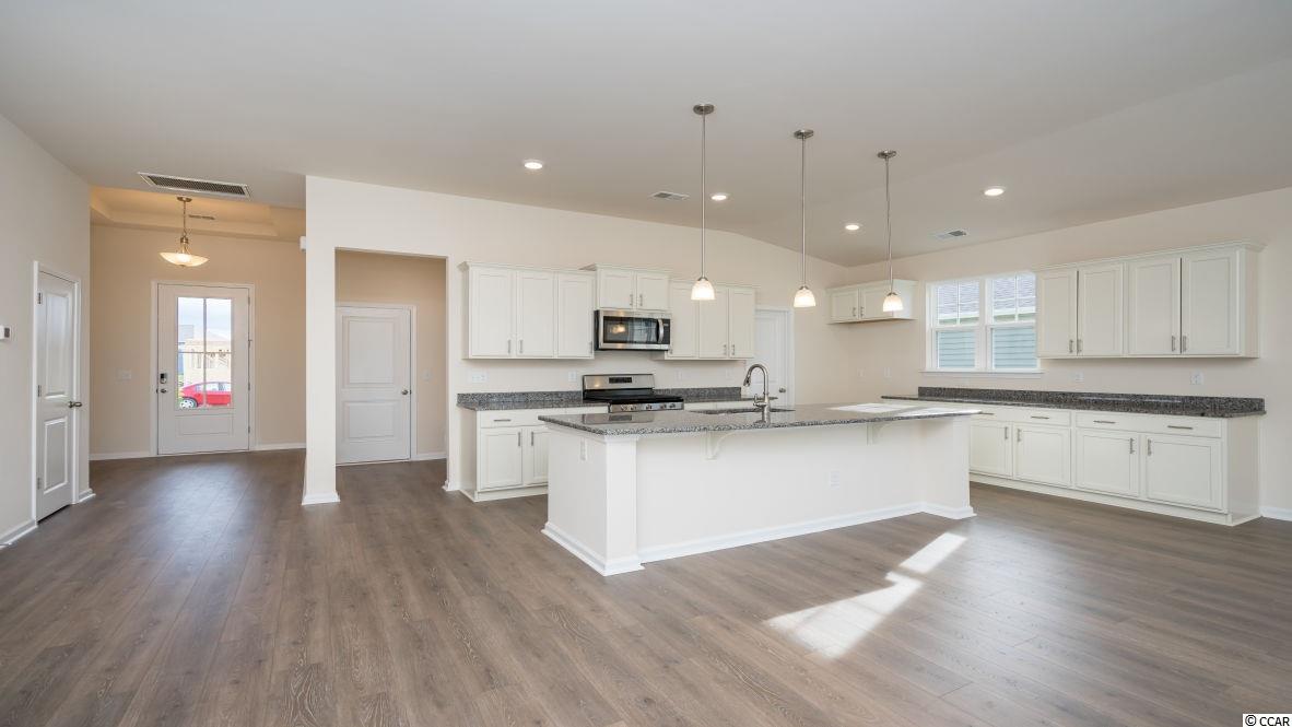 The popular Eaton floor plan is a great one level, open concept home with a show stopper kitchen! Granite counters in the kitchen, gray painted cabinets, stainless Whirlpool appliances including a gas range, tall ceilings, and lots of windows for an abundance of natural light! Luxury primary bedroom with tray ceiling and en suite bath featuring a large double vanity, 5' shower, and two linen closets. Sliding glass doors off the living area lead to the spacious rear covered porch with pond views. This is America's Smart Home! Ask an agent today about our industry leading smart home package that is included in all of our homes. This home is located in a brand new natural gas community in Carolina Forest! The Parks of Carolina Forest is a picturesque setting of ponds, an amazing amenity center, and park of the majestic ""Ten Oaks"" with a walking trail to get to the Carolina Forest library. *Photos are of a similar Eaton home. (Home and community information, including pricing, included features, terms, availability and amenities, are subject to change prior to sale at any time without notice or obligation. Square footages are approximate. Pictures, photographs, colors, features, and sizes are for illustration purposes only and will vary from the homes as built. Equal housing opportunity builder.)