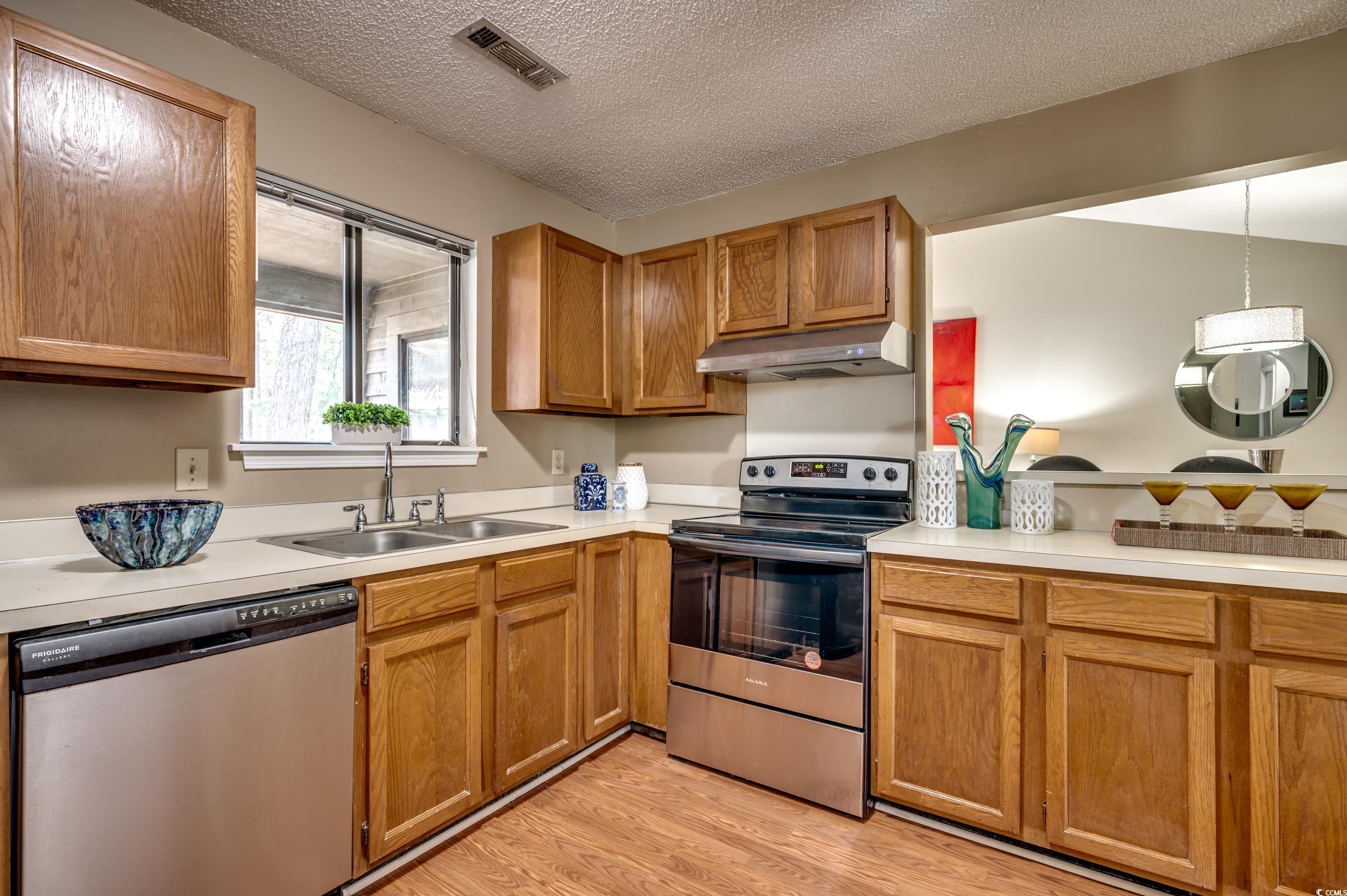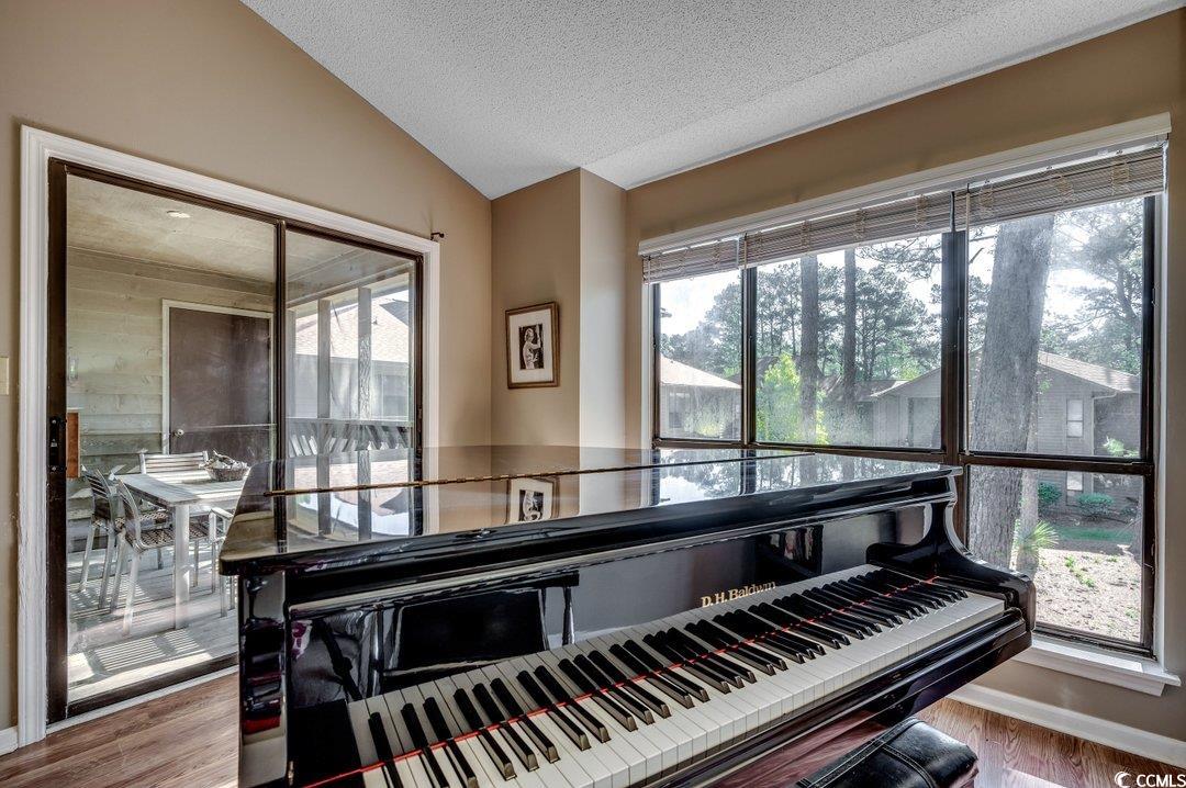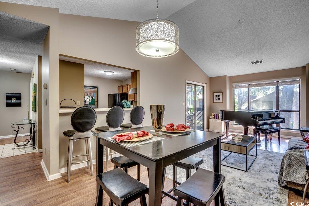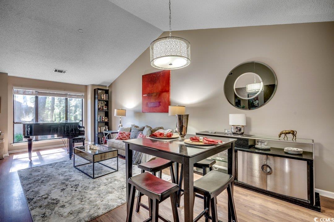 Welcome to your serene coastal retreat in the heart of Murrells Inlet! This immaculate 2-bedroom, 2-full bathroom condo offers a perfect blend of comfort, style, and convenience. As you step inside, you'll be greeted by vaulted ceilings that accentuate the spaciousness of the living area, adorned with tasteful laminate floors throughout, complemented by tile in the kitchen, foyer, and both bathrooms. Notably, this end unit provides unparalleled privacy with no neighbors above you, ensuring tranquility and peace. The generously sized living room, graced by a baby grand piano, invites you to unwind and entertain in style, creating memorable moments with friends and loved ones. Located just a golf cart ride away from the beach, this coastal oasis offers easy access to the sun, sand, and surf. After a day of beachside bliss, return home to enjoy the community pool, perfect for refreshing dips and leisurely lounging under the sun. Experience the epitome of relaxation in the owner's suite, boasting a massive walk-in closet for ample storage and a luxurious bathroom featuring a soothing soaking tubyour personal sanctuary for unwinding after a long day. What's more, this condo boasts low HOA fees, making it an affordable option for those seeking a vibrant coastal lifestyle without compromising on quality or convenience. Don't miss out on the opportunity to make this charming condo your ownschedule a viewing today and discover the coastal living you've been dreaming of!