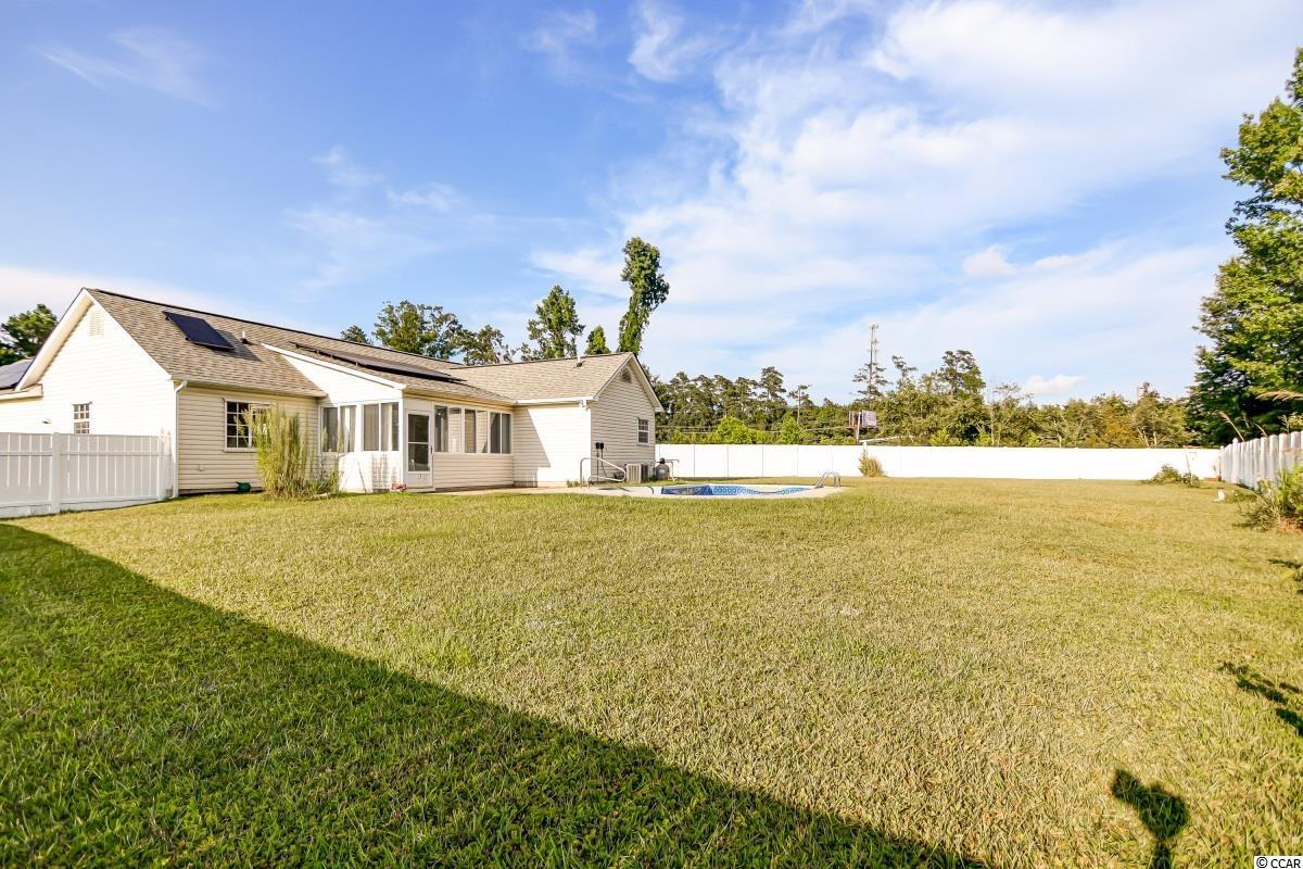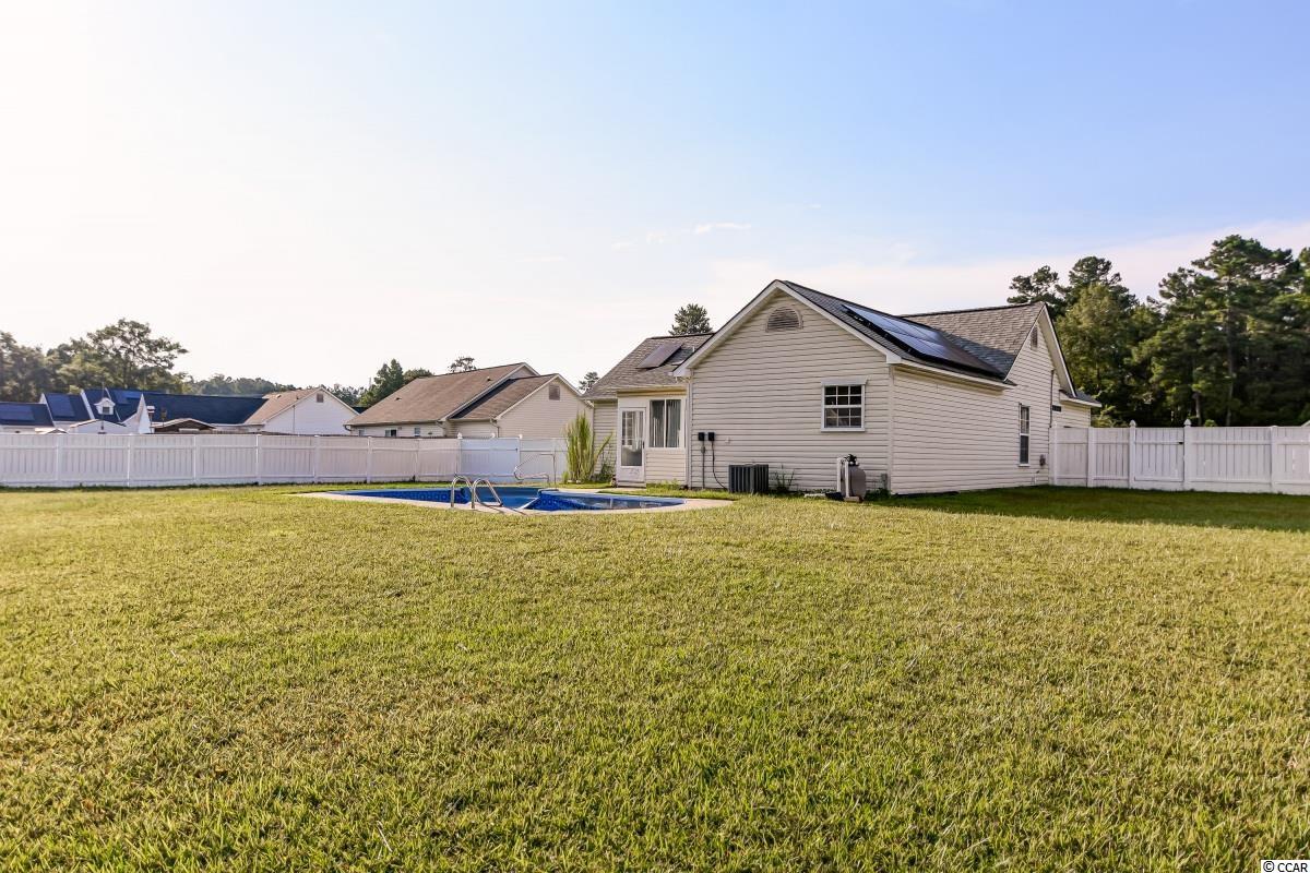 3 bedroom, 2 bath home with a 1 car attached garage on a 0.49+/-acre lot, located in the NO HOA community of The Thicket in Conway! The spacious living room has high vaulted ceilings with a fan, chair rail molding, and french doors to the 3 Seasons Room! In the kitchen you will find tile floors, white appliances including a refrigerator, and a dining area with a large window overlooking the backyard! The master bedroom has a tray ceiling with a fan, a big walk-in closet, and a private bath. The master bath has tile floors, a glass enclosed shower, a garden tub, and a long vanity with a spot for a seat. There are two additional bedrooms each with ceiling fans and their own closets. There is a second full bath with a shower/tub combo as well. Plus all the appliances in the home come with it including the washer and dryer. The massive fenced in backyard even has a pool!! Located just 10 minutes from Historic Downtown Conway with all of its shops and restaurants plus it is less than 20 minutes from Coastal Carolina University or Horry Georgetown Technical College! Come see this one before its gone!