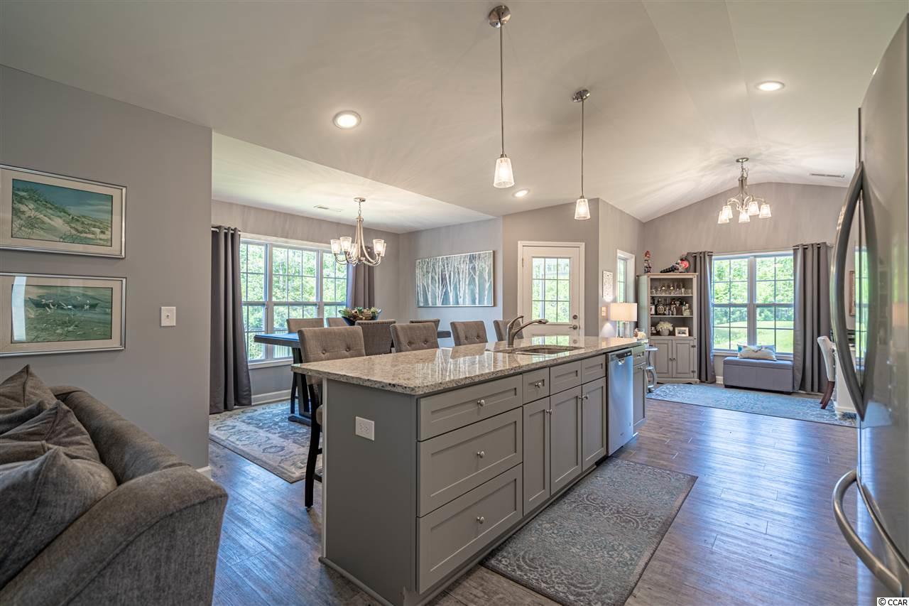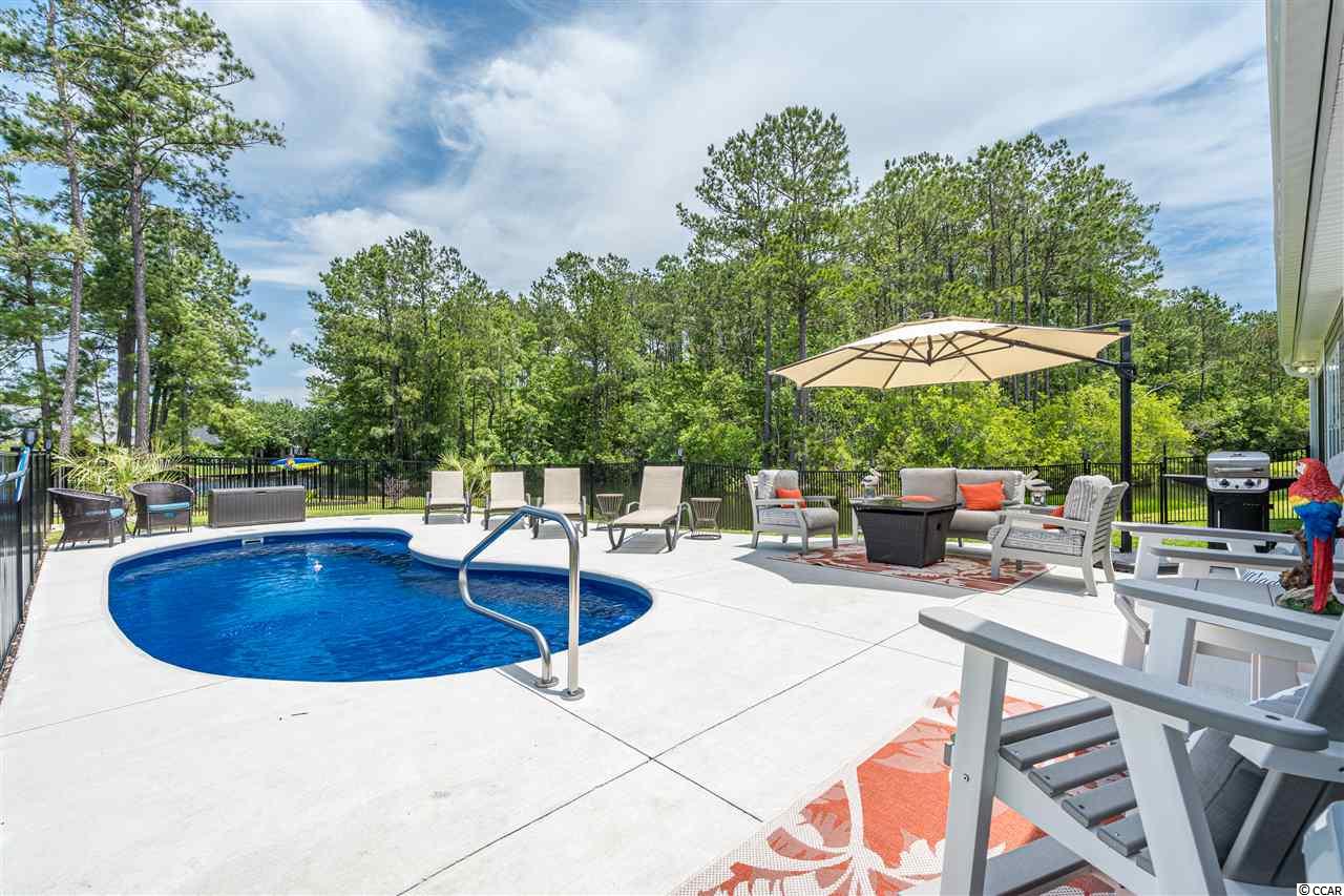 Beautiful, better than new home located on a cul de sac overlooking the lake and woods in the desirable community of The Lakes. The current homeowner has added numerous upgrades that include a salt water pool, fencing, screened in porches, patio, irrigation, gutters and pull out shelving for the kitchen cabinets. The salt water pool and lake provide an outside oasis that is ideal for unwinding and relaxing. The two screened in porches are perfect places to enjoy the views of lake with the beavers, ducks, geese and swans that frequently visit. There is so much to love about this home including the split bedroom floor plan, spacious master with sitting area, open concept living area adorned with a soothing gray and white color scheme. Upon entering the home you are welcomed by the inviting living room that over looks the lake and pool and is open to the kitchen, dining and sitting area. The kitchen features white and gray cabinetry with pull out shelving, granite countertops, barn door pantry, stainless steel appliances, and a large island making it the perfect spot to gather around. The master bedroom features a sitting area, large walk in closet and master bath with his and hers vanities and shower. One of the standout features of this home are the two screened in porches overlooking the lake and salt water pool. This home has been meticulously maintained and will not disappoint. The Lakes community is centrally located just a short drive from The Market Common, Murrells Inlet Marsh Walk, area beaches, dining, medical facilities and the Myrtle Beach International Airport. Do not pass up your chance to own this amazing home. Call today to schedule your showing!