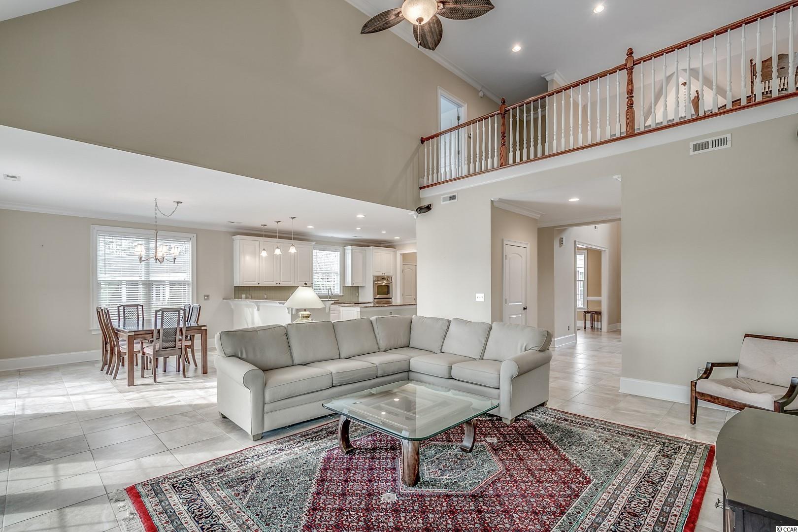 The sprawling low country porch gives just a hint of the much desired southern charm in this lovely custom home built by Poulin Custom Builders. Sparkling light dances across the pond which can be seen from every room along the back side of the home. Soaring ceilings allow the flow of natural lighting throughout. The kitchen opens to the living area and offers a gas cook top, huge work island and breakfast bar, a pantry, soft-close roll out drawers, stainless appliances and granite countersall perfect for entertaining. A double sided fireplace lends a cozy feel to the living area and creates the perfect spot on the screened porch to curl up by a warm fire. Framed by a fully trimmed tray ceiling, the master bedroom has 2 walk-in closets and a wonderful master bath with double sinks and a custom built tile walk-in shower. Just up the steps a loft overlooks the living area. Unfinished space off of each of the upstairs bedrooms could easily be finished and made into fabulous closets, climate controlled storage, sitting areas, office space or could remain wonderful walk-in attic storage. Each bedroom has its own full bath. The bonus room is huge, with its own full bath and could very easily be a fourth bedroom, play room, office, fitness area, media room or it could even be split into two rooms. With doors for 2 cars, the garage is fabulously oversized offering tons of space for cars, a workshop and storage. Creek Harbour is gorgeous gated community with its own pool, club house, boat storage, community day dock, and a boat ramp with deep water access to Collins Creek that leads out to the Intracoastal Waterway. Just off of the beaten path, this community is surrounded by nature and just minutes to the beautiful blue Atlantic Ocean and its white sandy beaches. Just minutes to shops, entertainment, restaurants, golf courses, the Murrells Inlet Marsh Walk, Brookgreen Gardens, water sports and fishing, this is the perfect spot to call home. Come find your place in the sun today! Square footage is approximate and not guaranteed. Buyers responsible for verification.