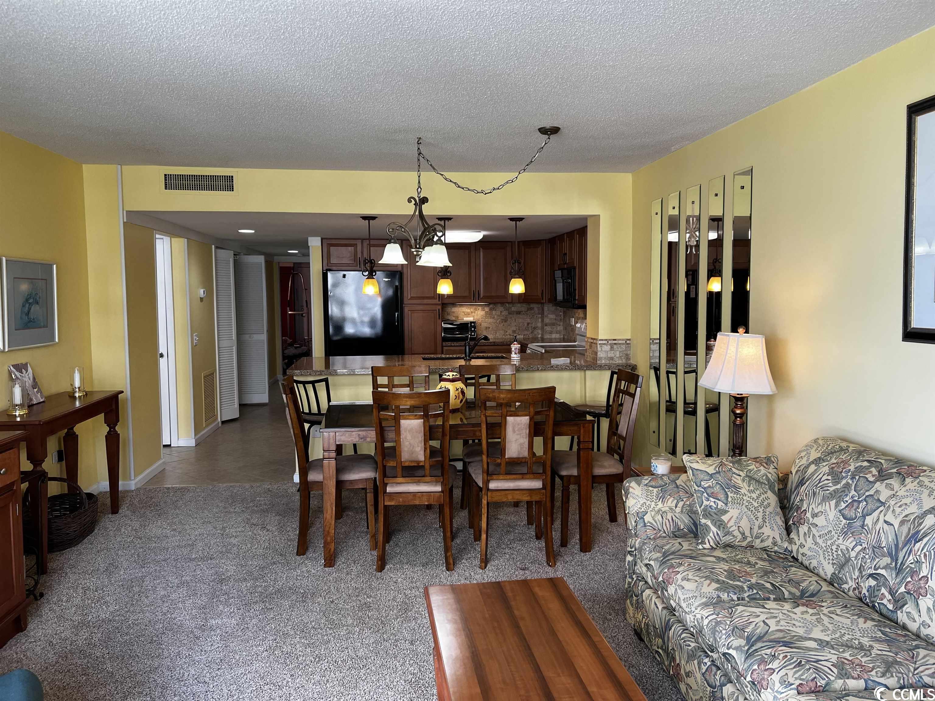 Rare find, this immaculate 3 bedroom, 3 bath Tower South condo. Updated kitchen opened for a view of the LR/DR area, just added a new stainless range/oven and microwave. Enjoy the balcony that overlooks the lagoon, swash and beautiful ocean. Two of the bathrooms feature tiled showers. New carpet in the living room and bedrooms, and all bedrooms are freshly painted. Ocean Creek has 57-acres of park-like grounds. 24-hour gated security, tennis center, pickleball court, putting green, multiple outdoor pools, and an indoor pool with whirlpool. The community boasts a wonderful oceanfront beach club with a snack bar and grill open in season, sand volleyball court, outdoor pool, playground, lockers, and restrooms. All figs. & sq. ft. approximate.