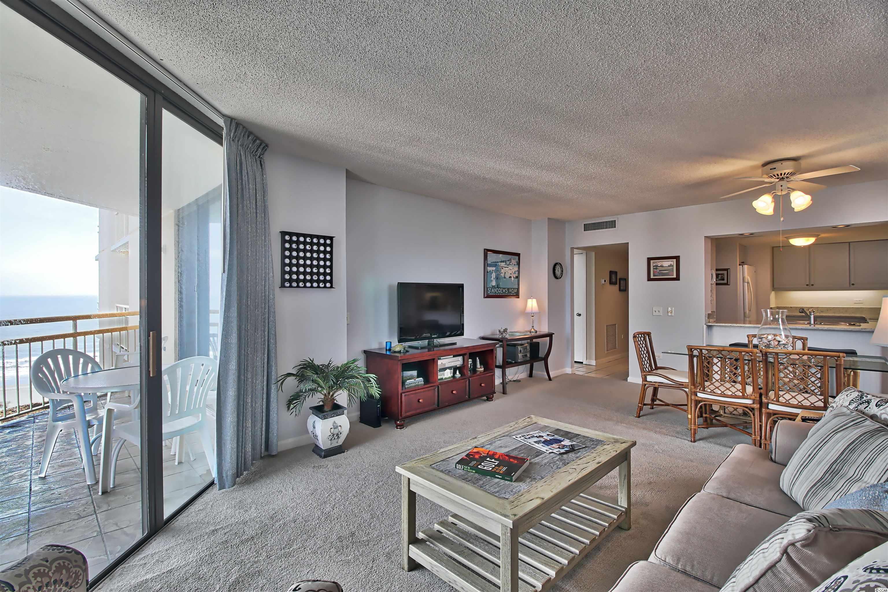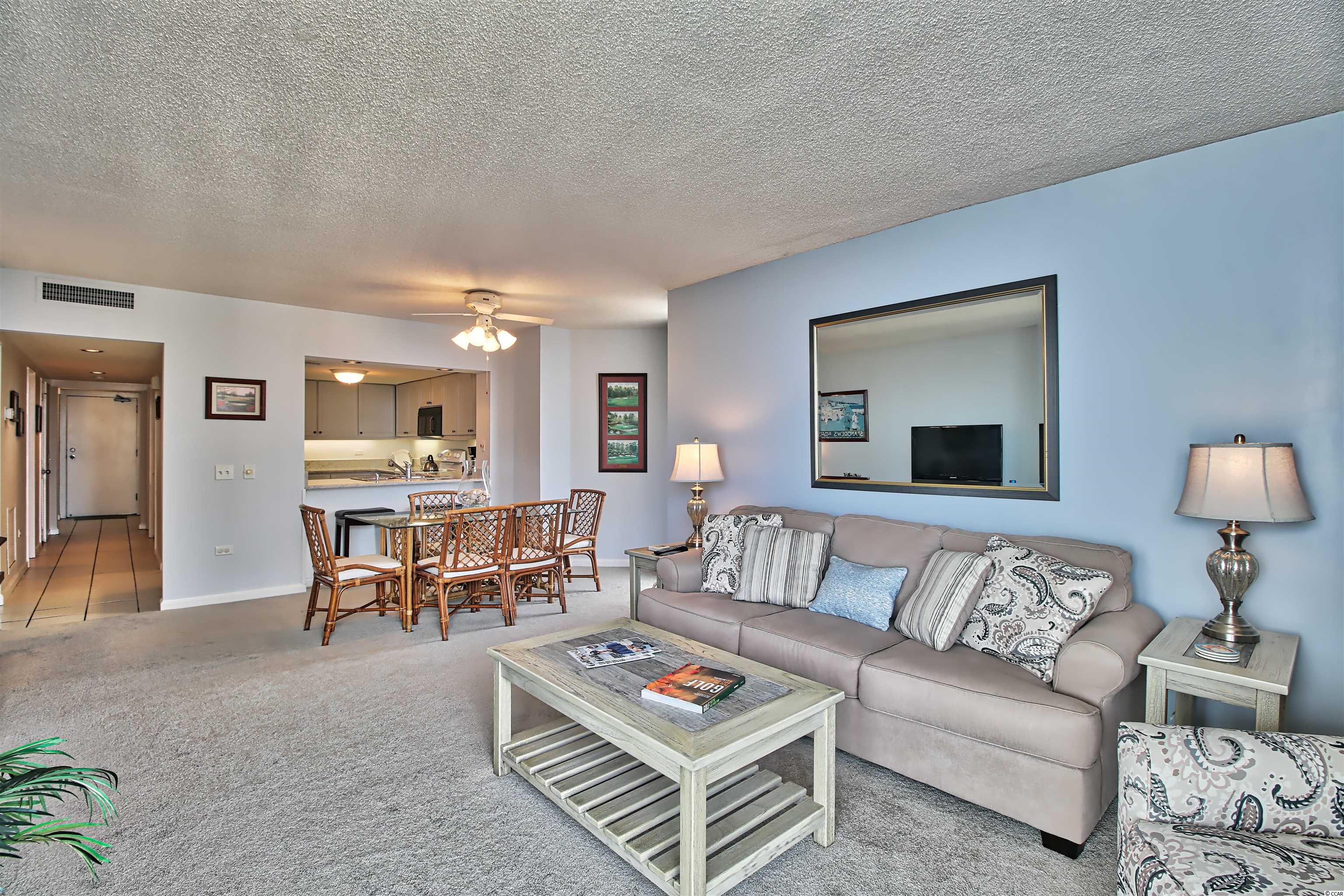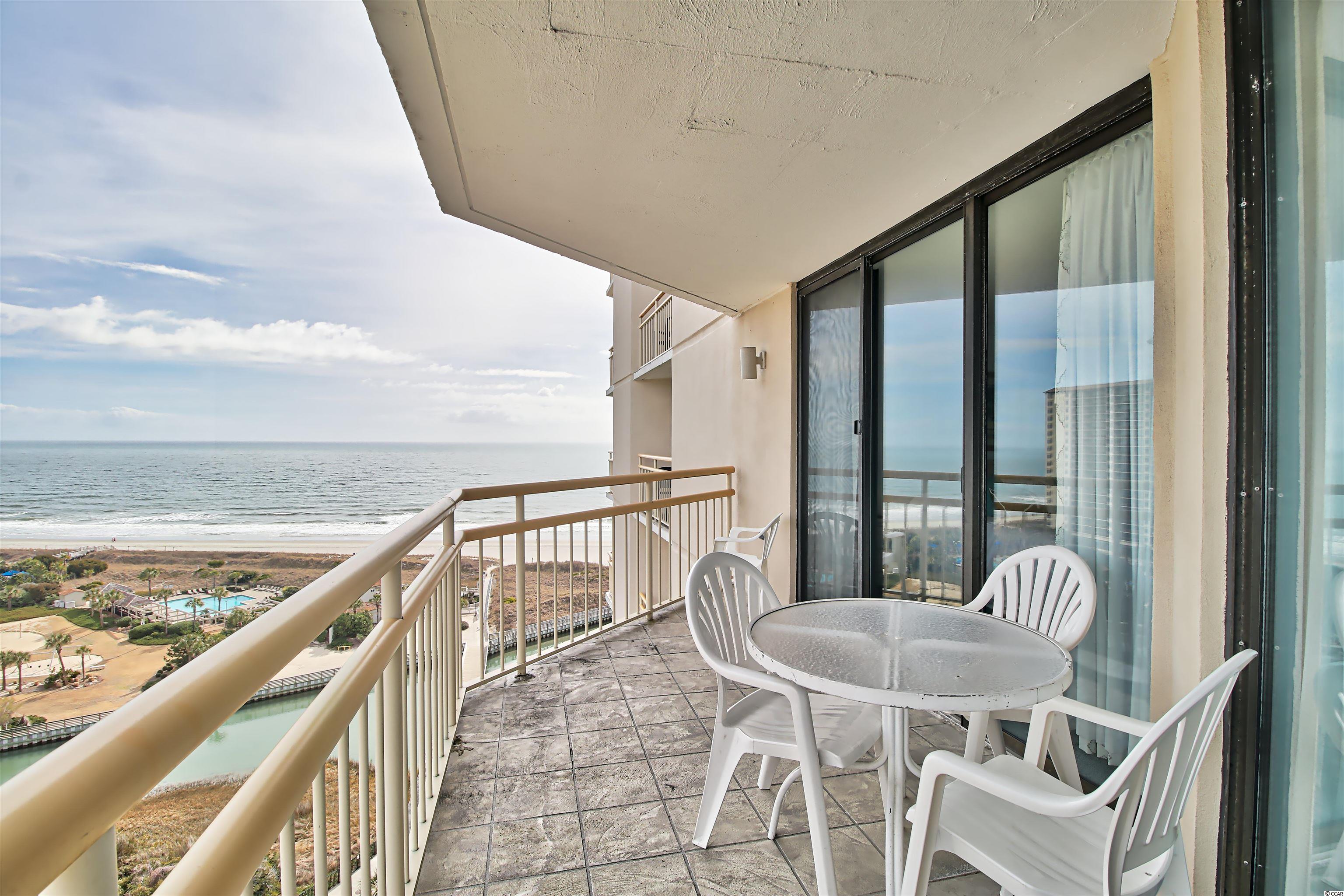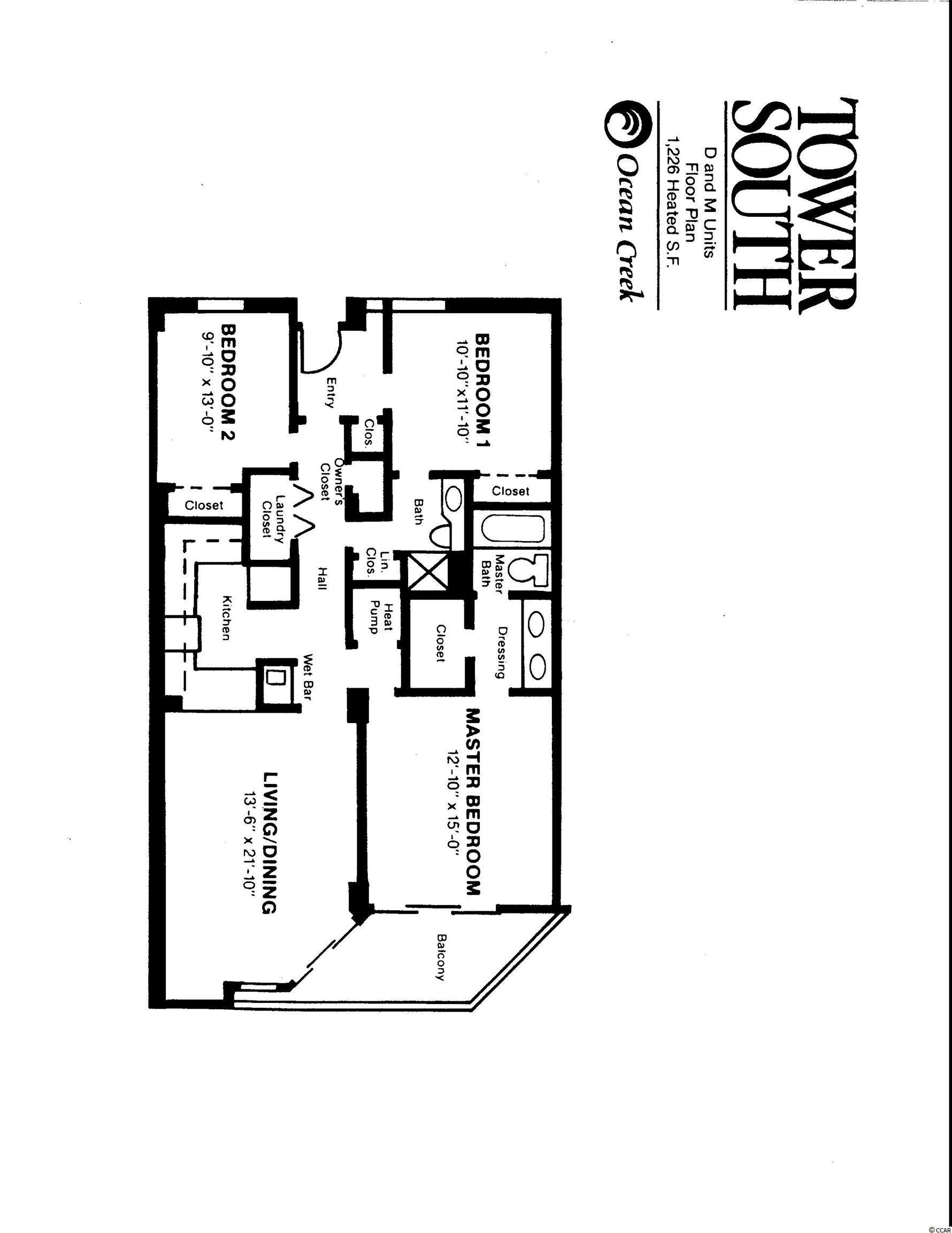This bright and spacious condo is a corner unit and offers additional floor space in the dining area as well as an additional balcony. Balconies offer panoramic views that include; the beach, Beach Club, coastline and Barefoot Landing. It has been the current owner's second home and has been immaculately maintained. Tower South owners have storage lockers under the building and a private indoor/outdoor pool and whirlpool. Ocean Creek has 57-acres of park-like grounds. 24-hour gated security, tennis center, pickleball court, putting green, multiple outdoor pools, and an indoor pool with whirlpool. The community boasts a wonderful oceanfront beach club with a snack bar and grill open in season, sand volleyball court, outdoor pool, playground, lockers, and restrooms. All figs. & sq. ft. approximate.