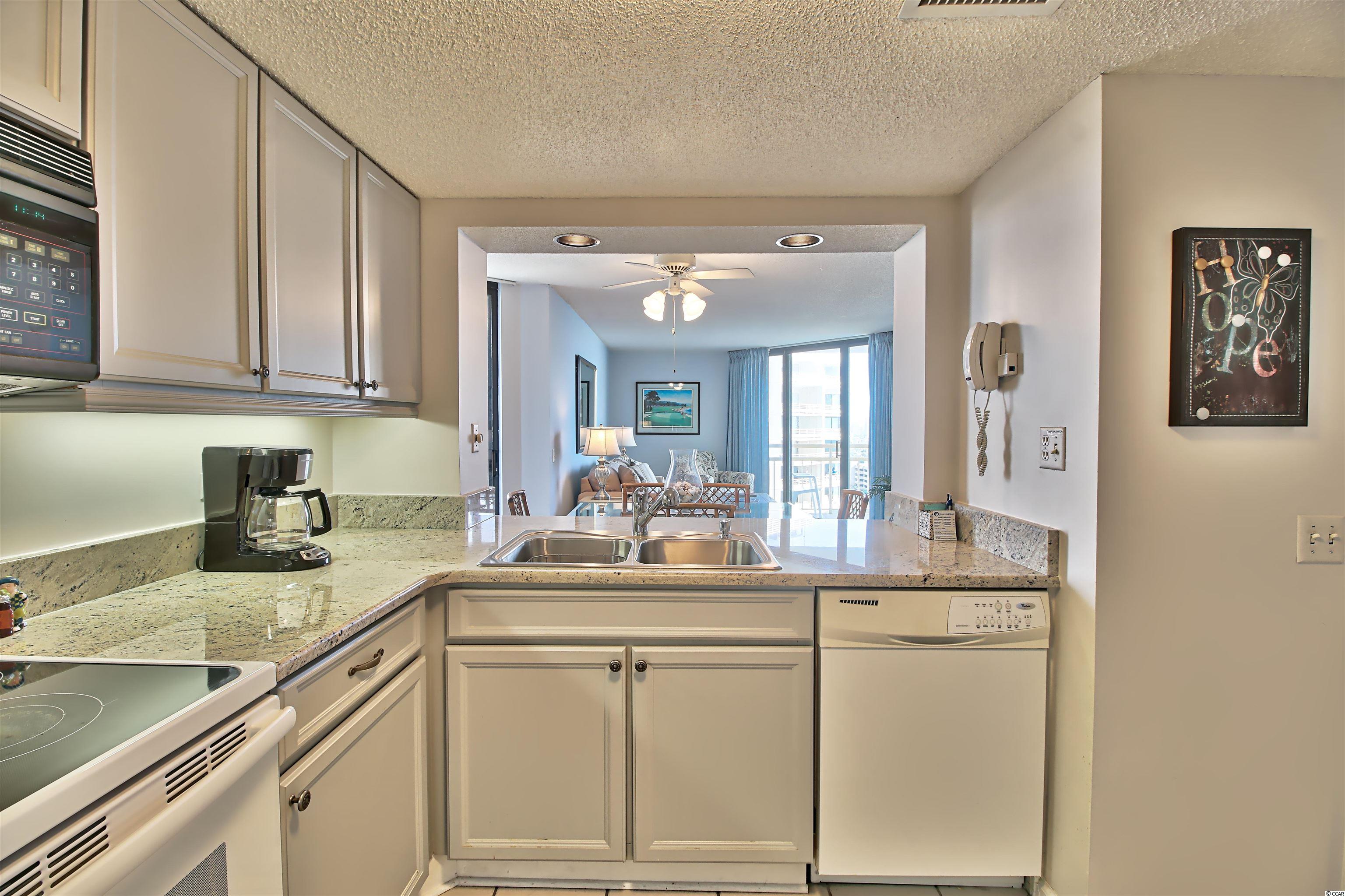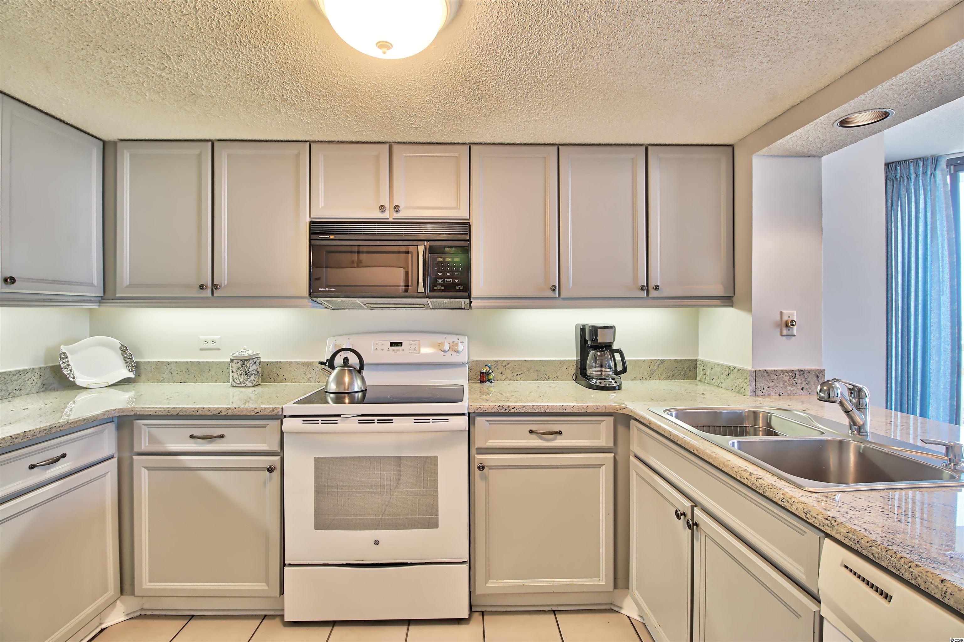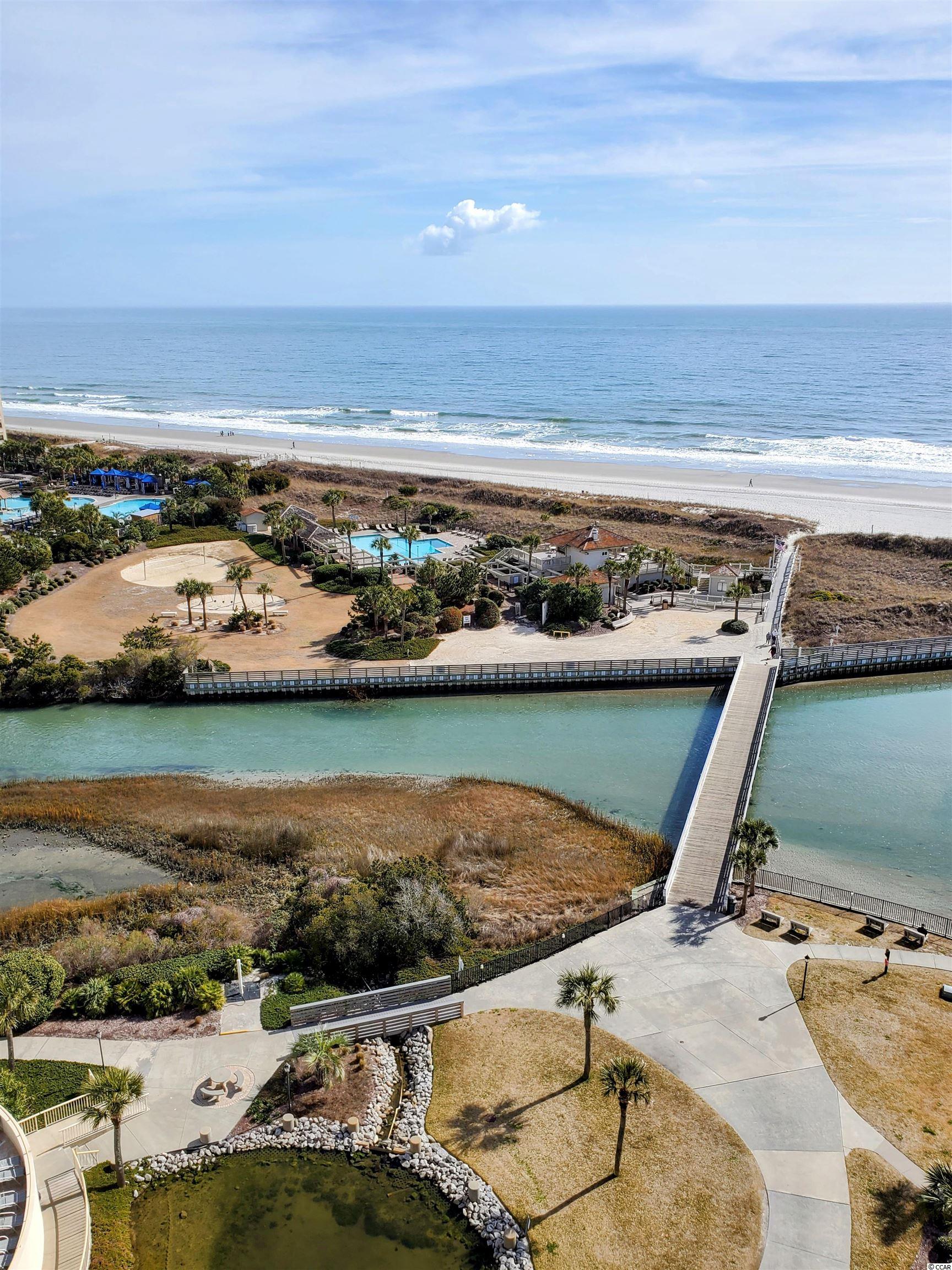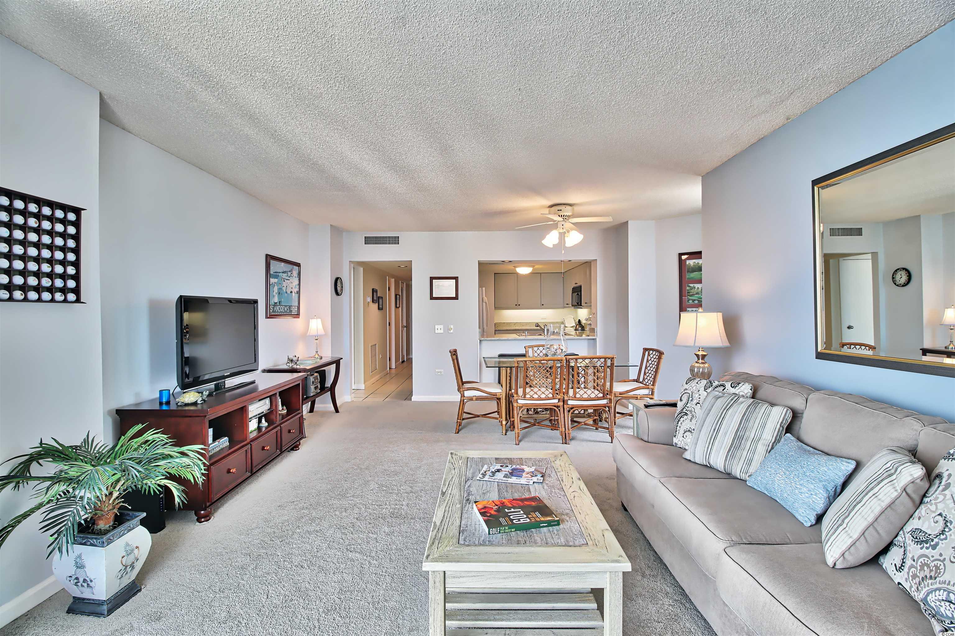 This bright and spacious condo is a corner unit and offers additional floor space in the dining area as well as an additional balcony. Balconies offer panoramic views that include; the beach, Beach Club, coastline and Barefoot Landing. It has been the current owner's second home and has been immaculately maintained. Tower South owners have storage lockers under the building and a private indoor/outdoor pool and whirlpool. Ocean Creek has 57-acres of park-like grounds. 24-hour gated security, tennis center, pickleball court, putting green, multiple outdoor pools, and an indoor pool with whirlpool. The community boasts a wonderful oceanfront beach club with a snack bar and grill open in season, sand volleyball court, outdoor pool, playground, lockers, and restrooms. All figs. & sq. ft. approximate.
