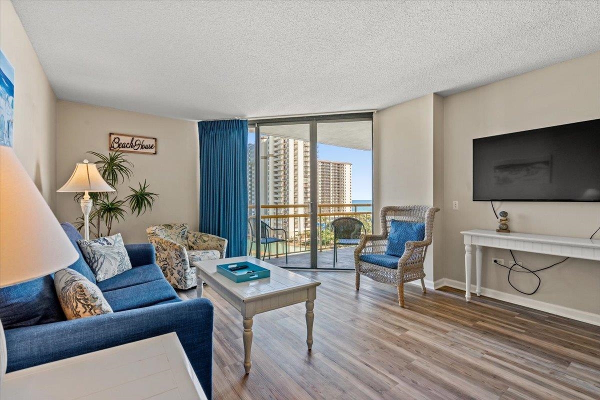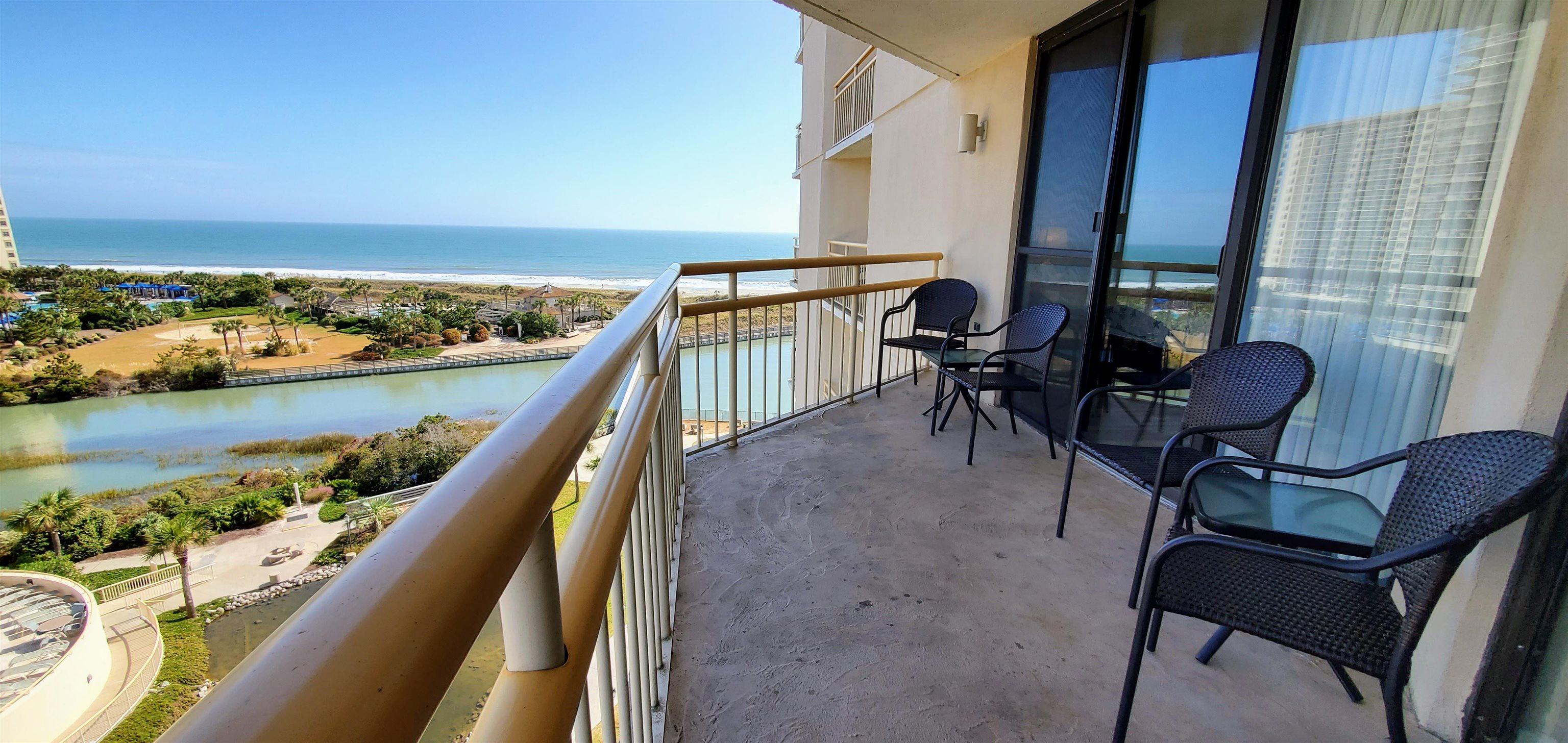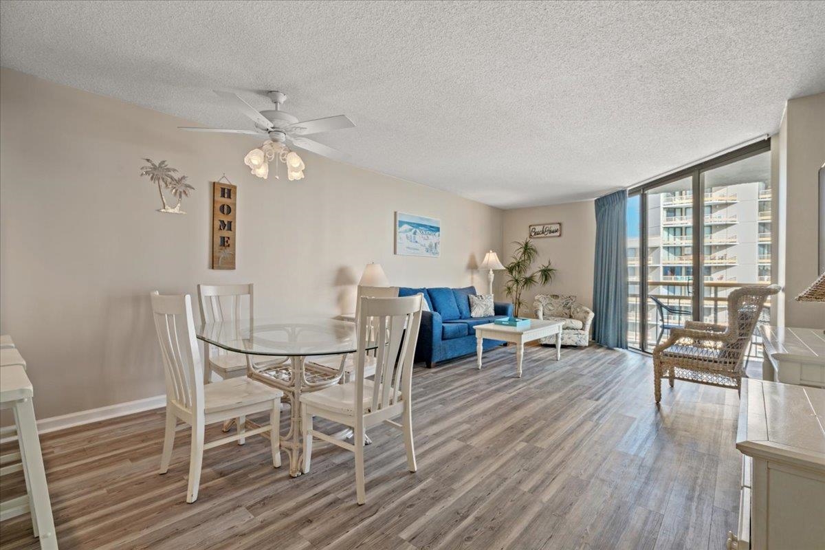 This three bedroom two bath condo on the 7th floor gets great morning sun and offers views of the ocean, surf, beach, Creek and Beach Club. Beautiful views, lots of interest, lovely during the day as well as at night. Always changing wildlife and Creek. During the summer enjoy the Barefoot Landing fireworks from your balcony. The kitchen is large and has an additional bar area, the living room is spacious as is the primary bedroom. This condo comes with a storage locker on the ground level. Ocean Creek has 57-acres of park-like grounds. 24-hour gated security, tennis center, pickleball court, putting green, multiple outdoor pools, and an indoor pool with whirlpool. The community boasts a wonderful oceanfront beach club with a snack bar and grill open in season, sand volleyball court, outdoor pool, playground, lockers, and restrooms. All figs. & sq. ft. approximate.