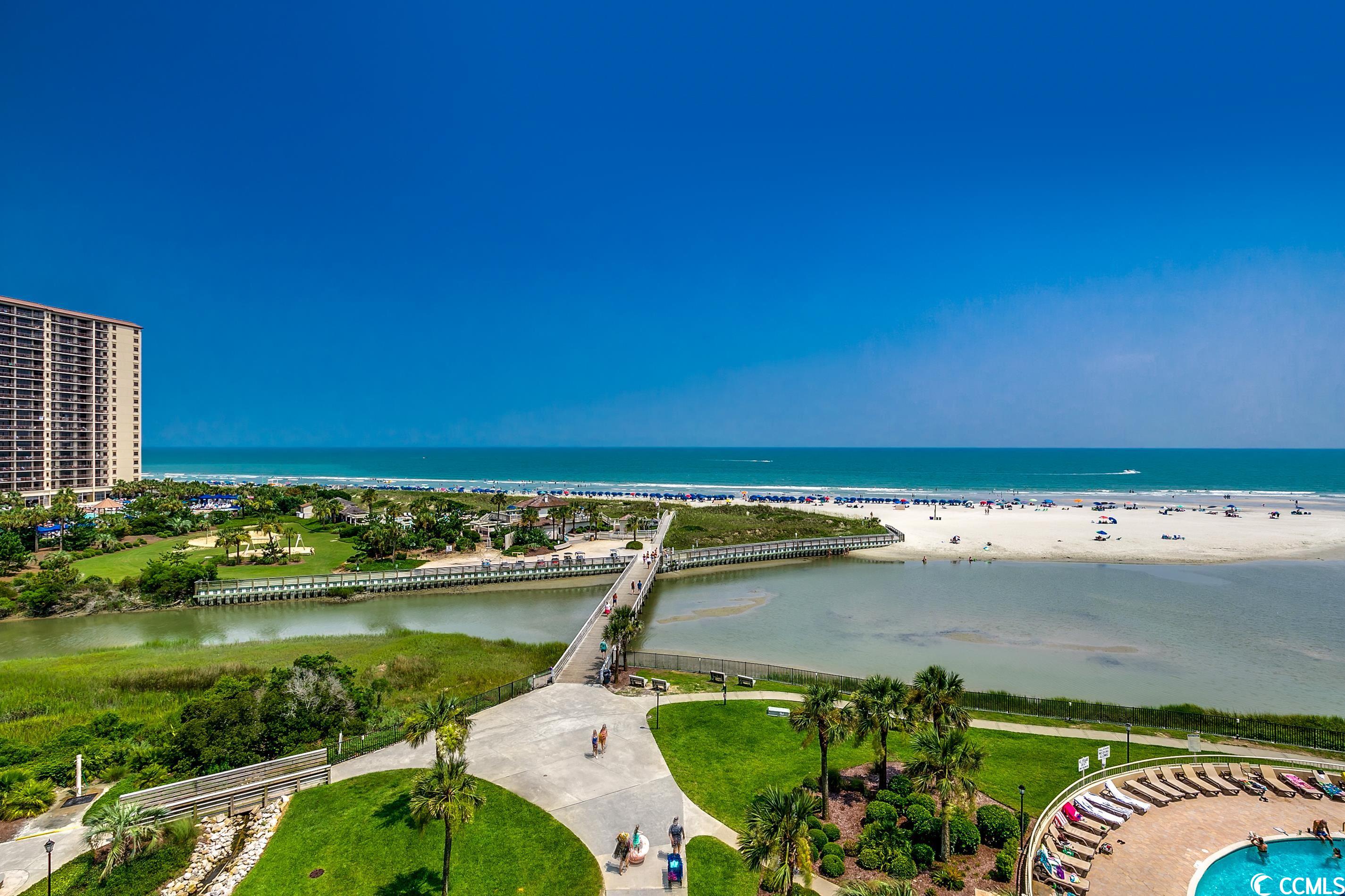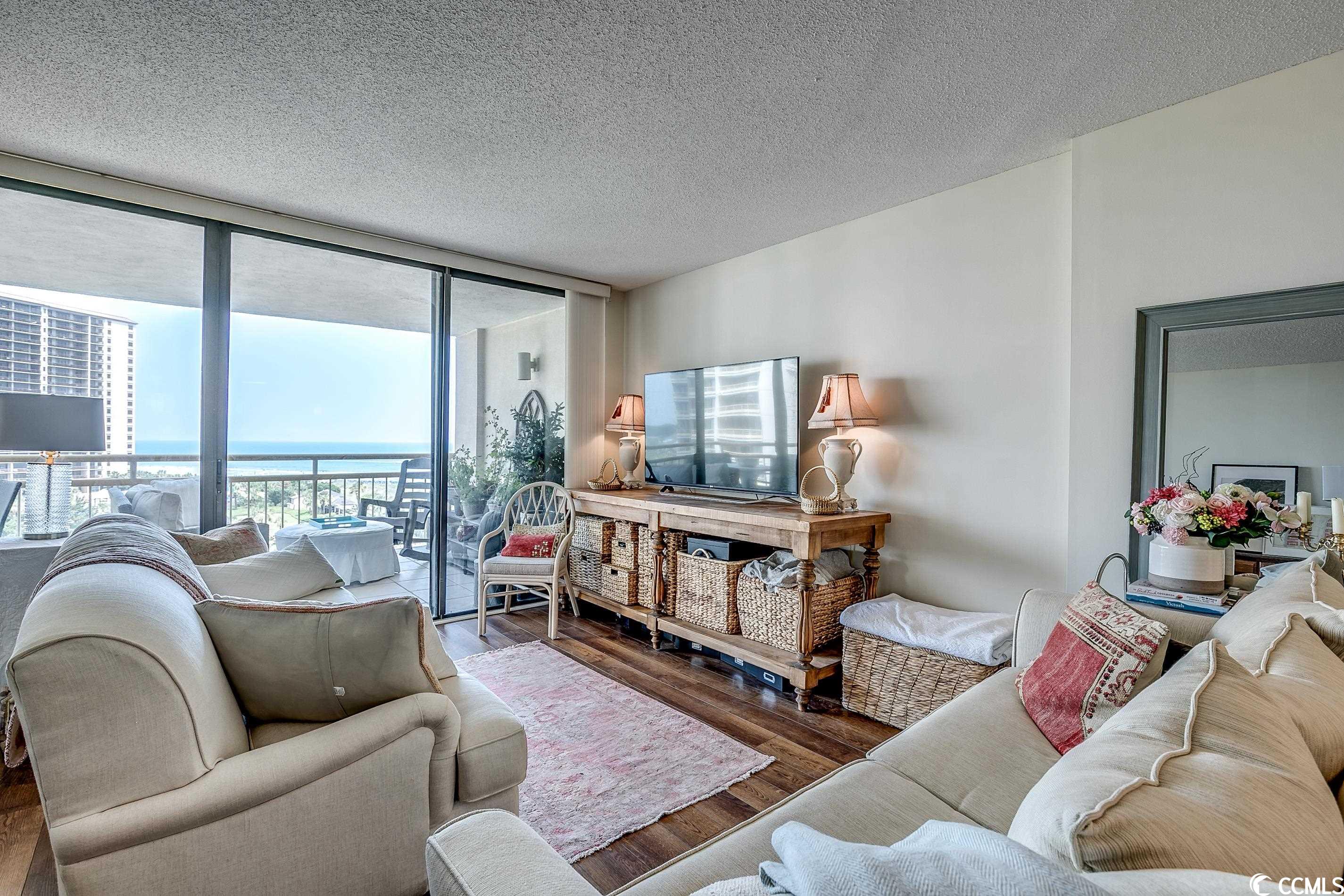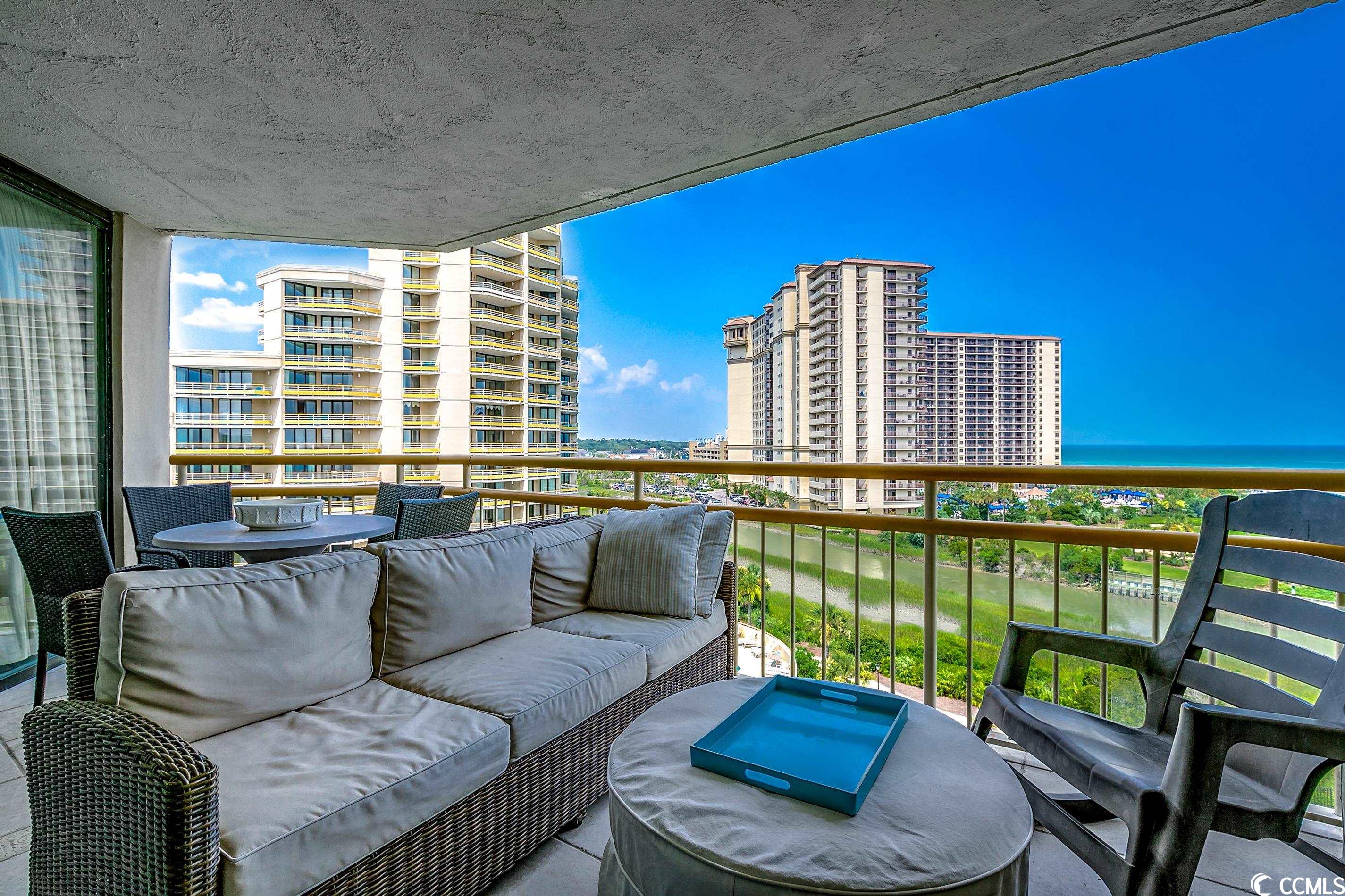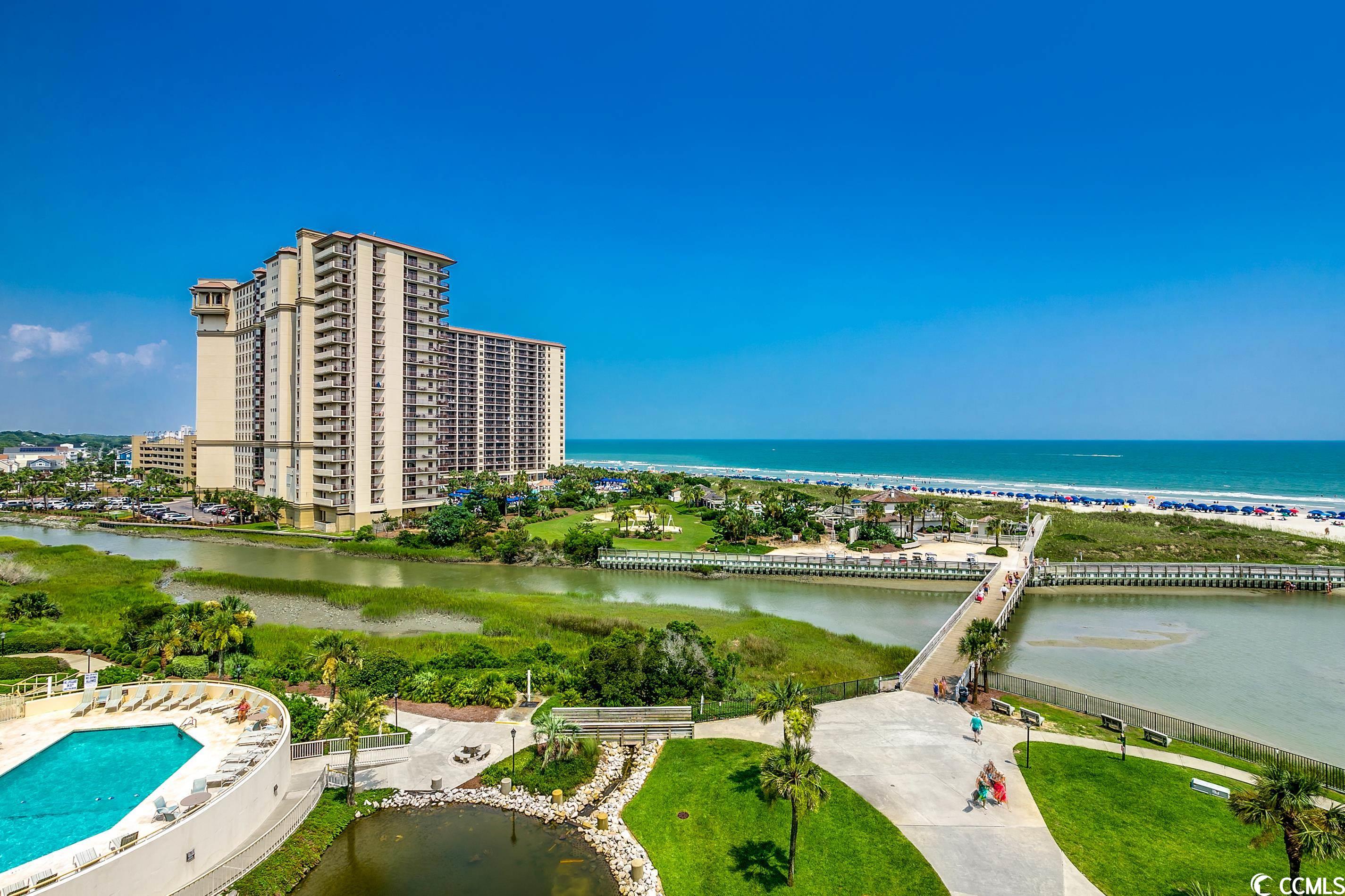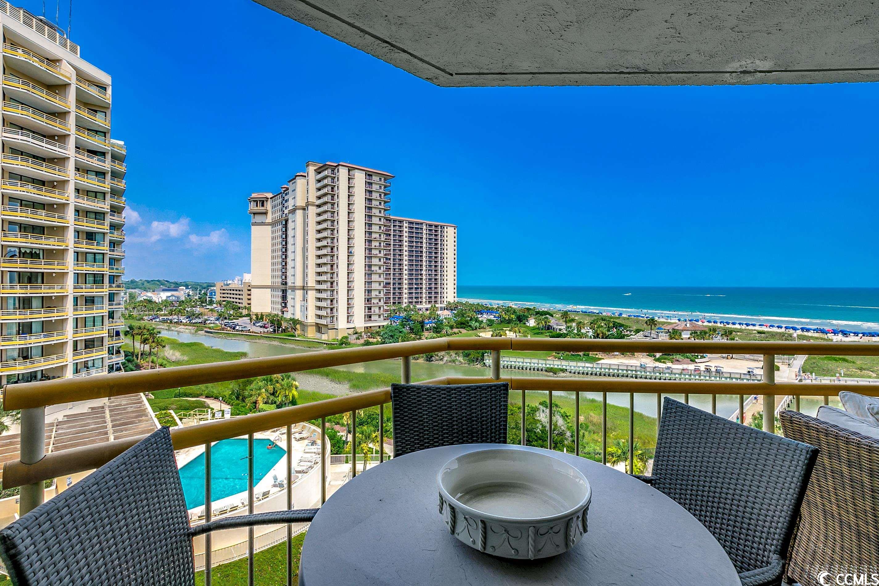 So many amazing upgrades with spectacular views from this completely renovated and updated two bedroom, two bathroom spacious condo in the wonderful Ocean Creek Resort. New cabinets and vanities, quartz countertops in kitchen and bathrooms, stainless steel appliances, Carrara Marble tile backsplash, wine cooler, wet bar, two balconies, luxury vinyl plank flooring throughout, beautifully furnished and decorated, updated fixtures, pantry, full size washer and dryer with cabinets, master closet custom shelving, updated toilets, and a large tiled balcony overlooking the ocean. Ocean Creek in an amazing resort with incredible amenities including pools (indoor and outdoor), 24-hr gated security, tennis center, and a beach club.