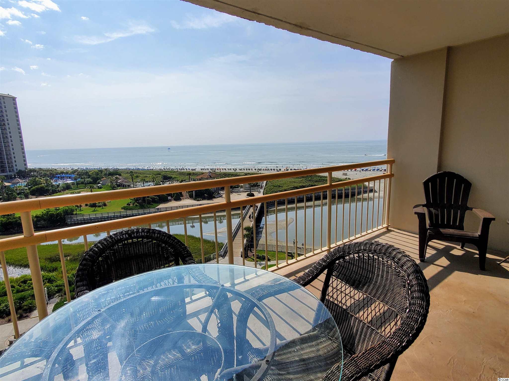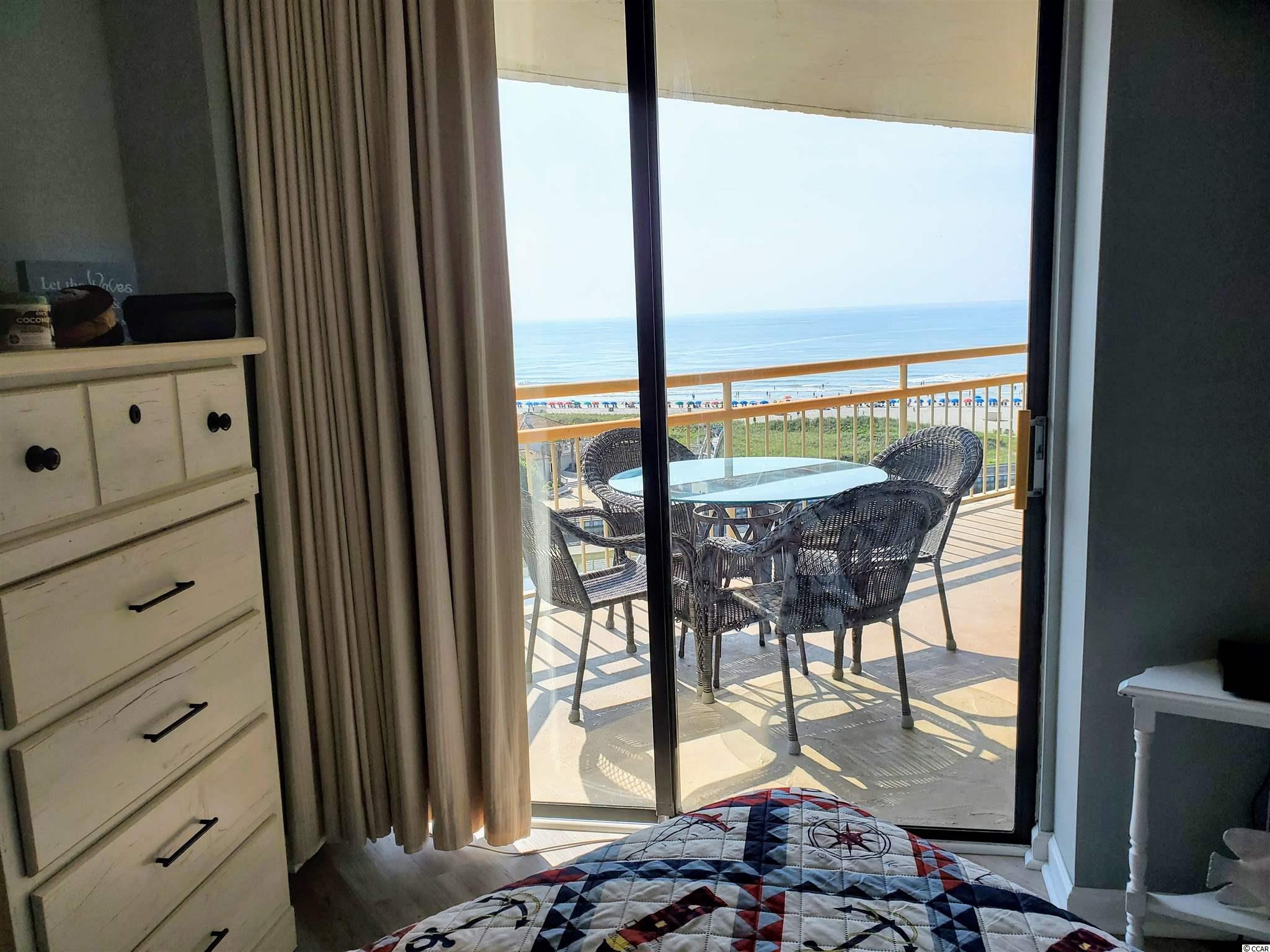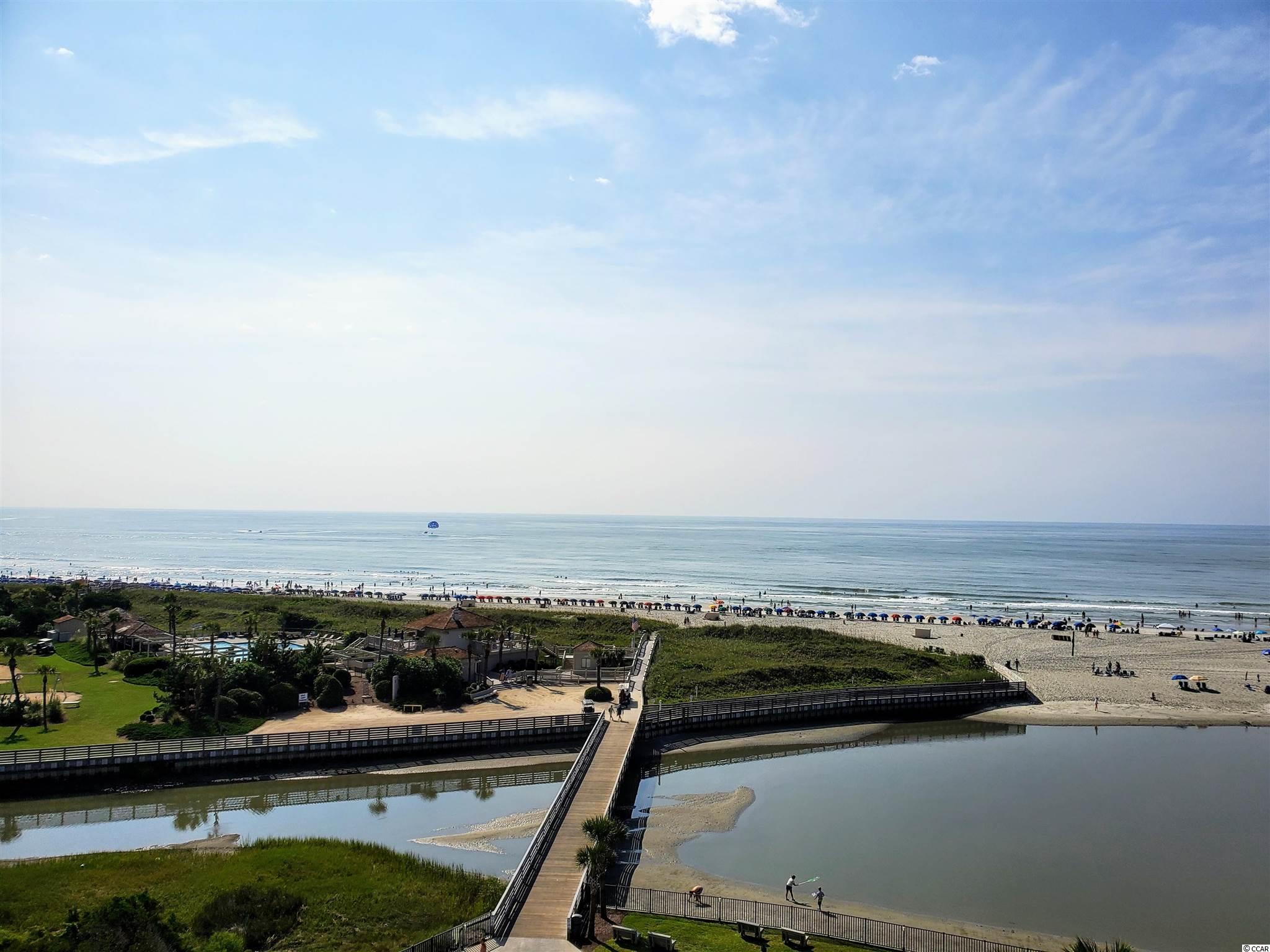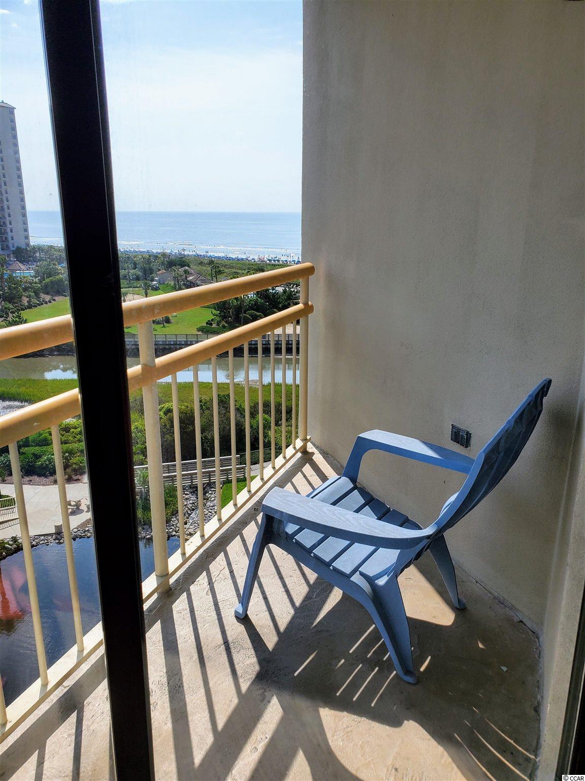 Great ocean views from every room of this 7th floor 2 BR/ 2 BA condo. Two balconies offer access to the outdoor living space from both bedrooms & the living area. Interiors have been updated. Ocean Creek has 57-acres of park-like grounds. 24-hour gated security, tennis center, pickleball court, putting green, multiple outdoor pools, and an indoor pool with whirlpool. The community boasts a wonderful oceanfront beach club with a snack bar and grill open in season, sand volleyball court, outdoor pool, playground, lockers, and restrooms. It's an easy walk to Barefoot Landing and other restaurants and attractions. All figs. & sq. ft. approximate.