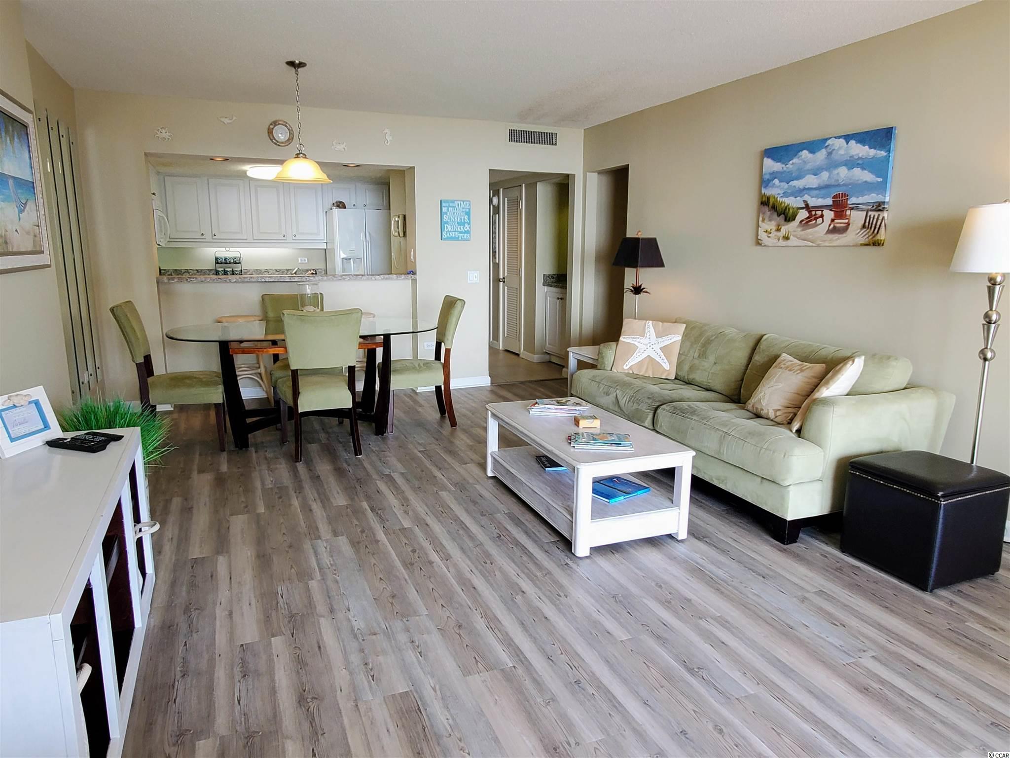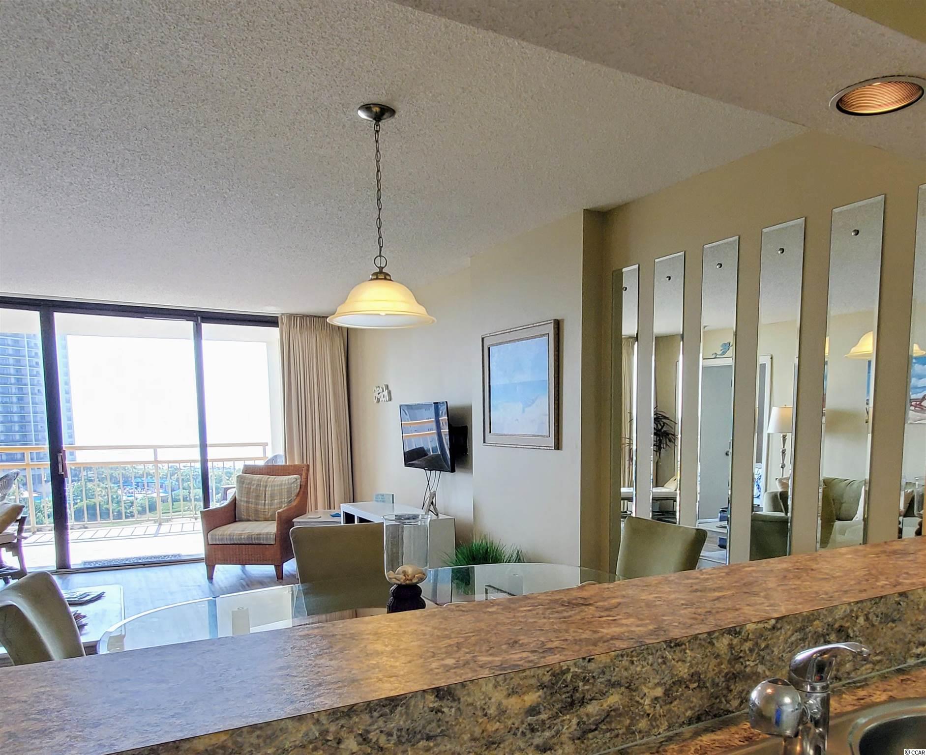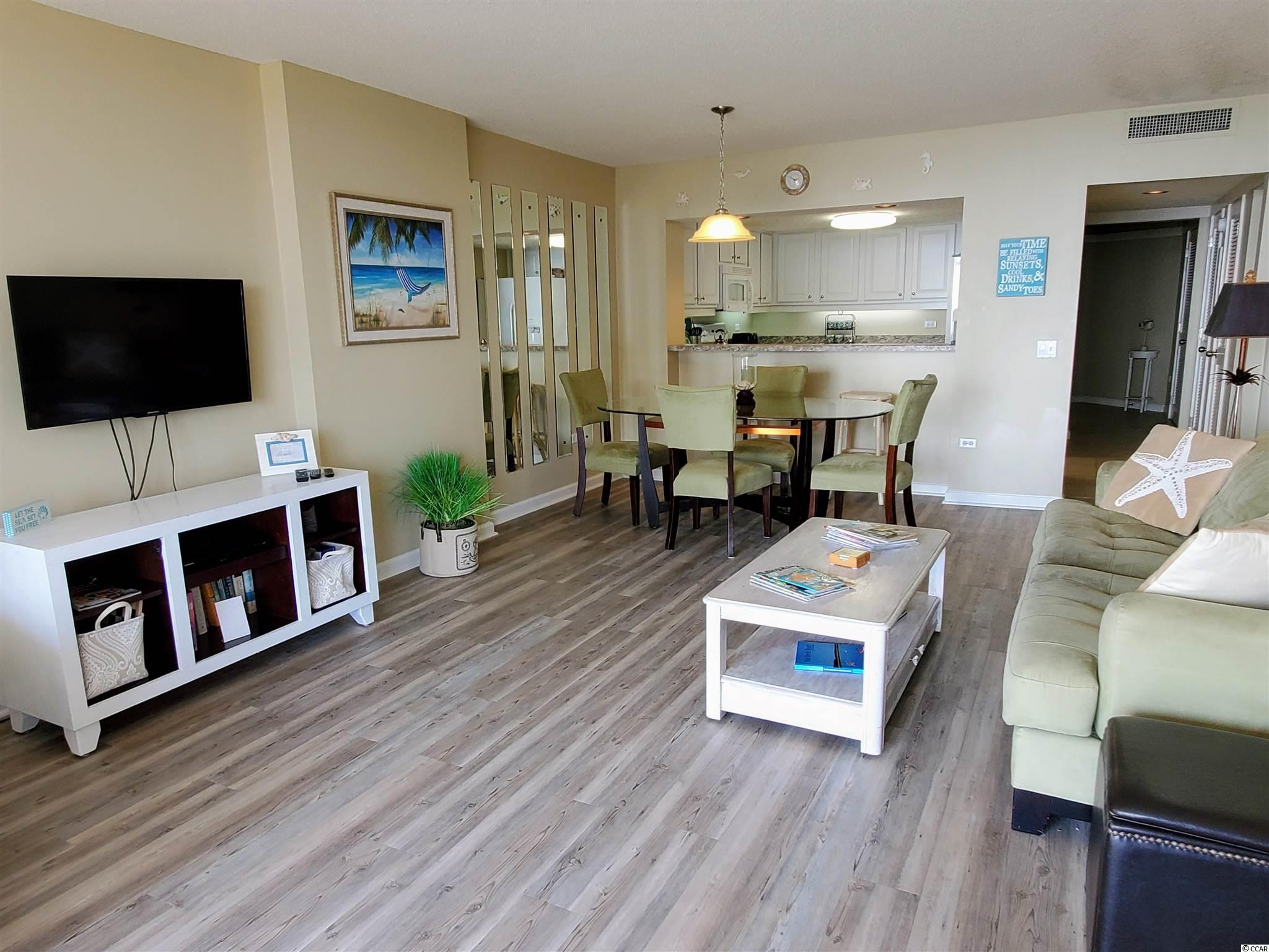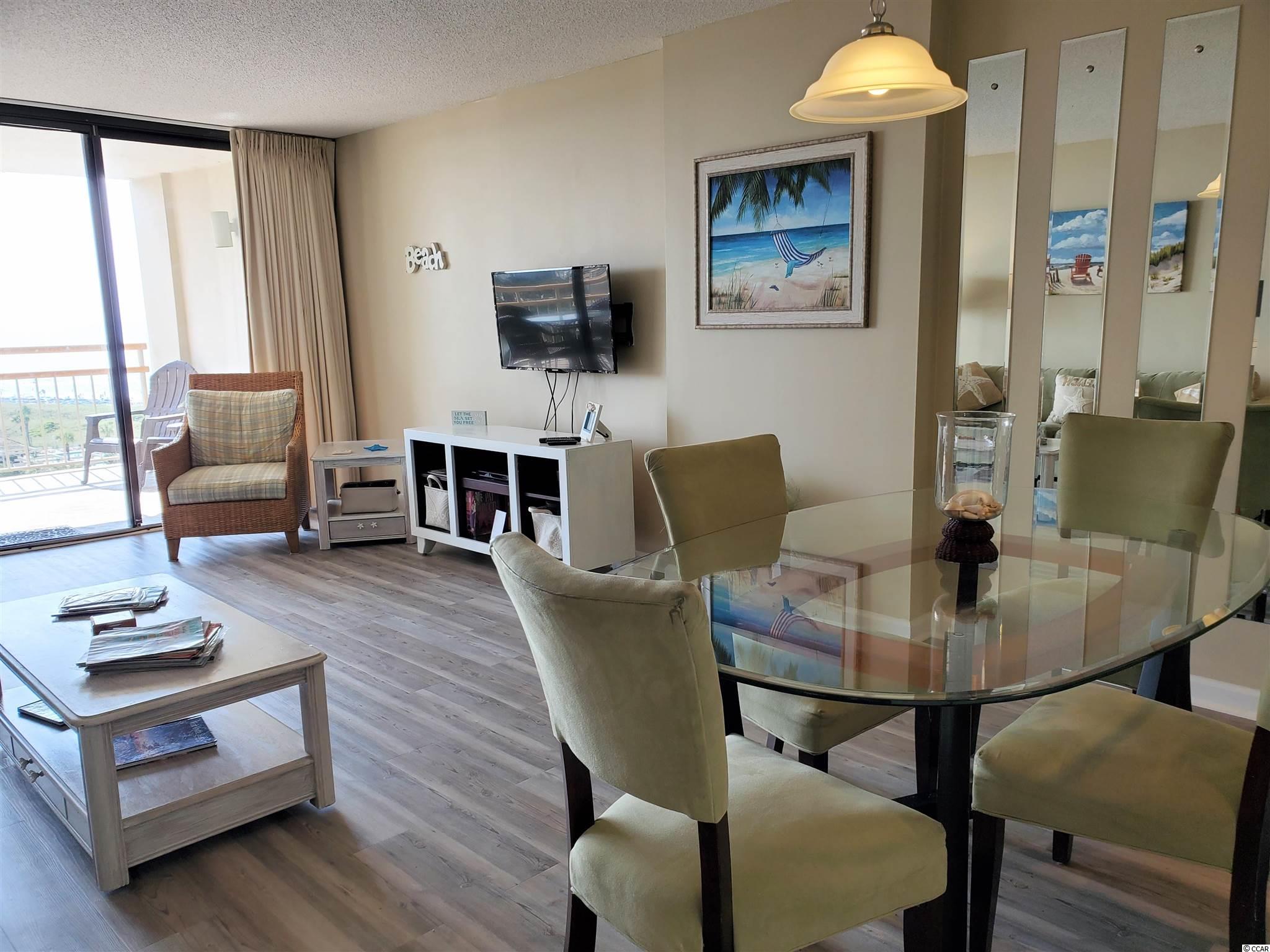 Great ocean views from every room of this 7th floor 2 BR/ 2 BA condo. Two balconies offer access to the outdoor living space from both bedrooms & the living area. Interiors have been updated. Ocean Creek has 57-acres of park-like grounds. 24-hour gated security, tennis center, pickleball court, putting green, multiple outdoor pools, and an indoor pool with whirlpool. The community boasts a wonderful oceanfront beach club with a snack bar and grill open in season, sand volleyball court, outdoor pool, playground, lockers, and restrooms. It's an easy walk to Barefoot Landing and other restaurants and attractions. All figs. & sq. ft. approximate.