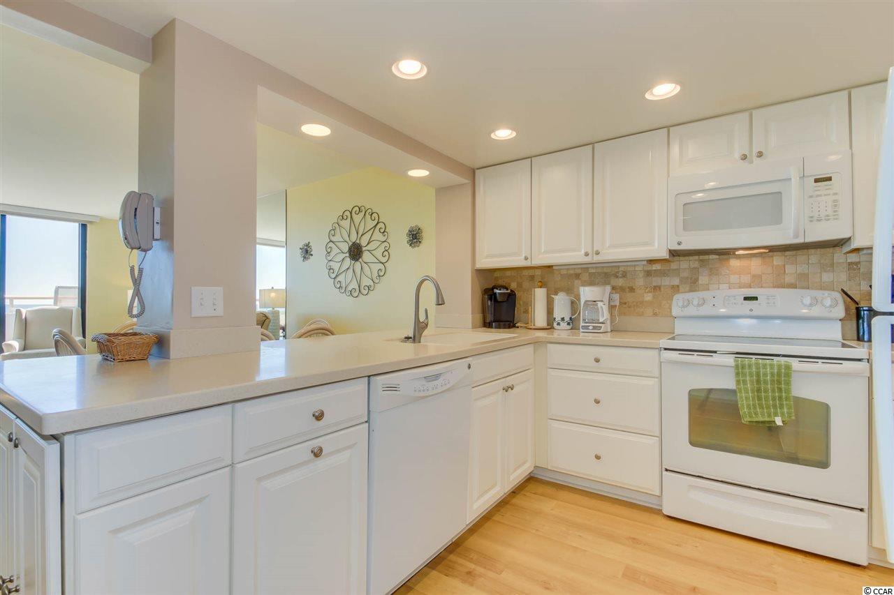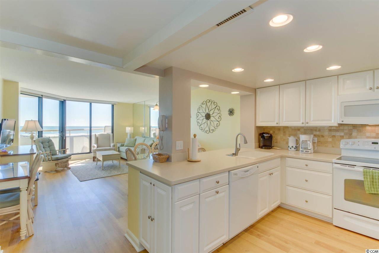 Ocean Creek S Twr 3BR/2BA oceanfront condo. Beautifully decorated & recently upgrades, tile backsplash, sold surface counter tops, tiled shower & more! Large open floor plan, large balcony w/beautiful views! Ocean Creek is a 24 hr gated community and offers: tennis, indoor/outdoor pools, walking trails & much more!