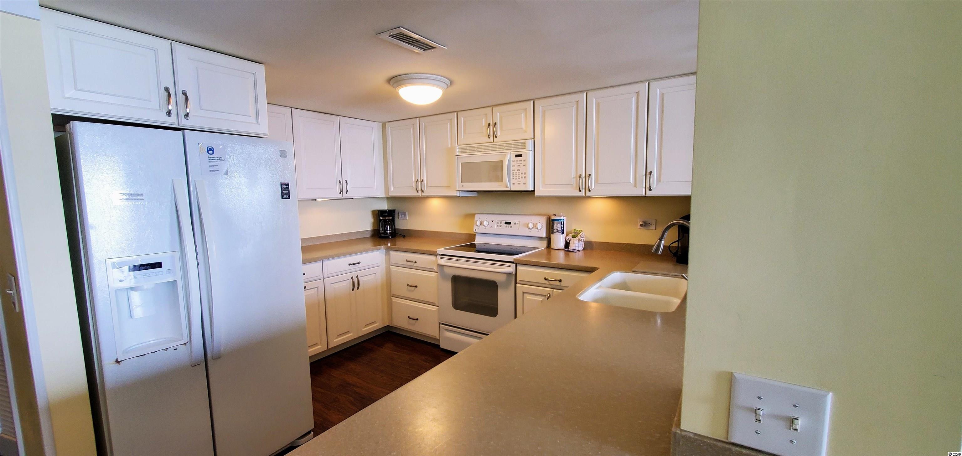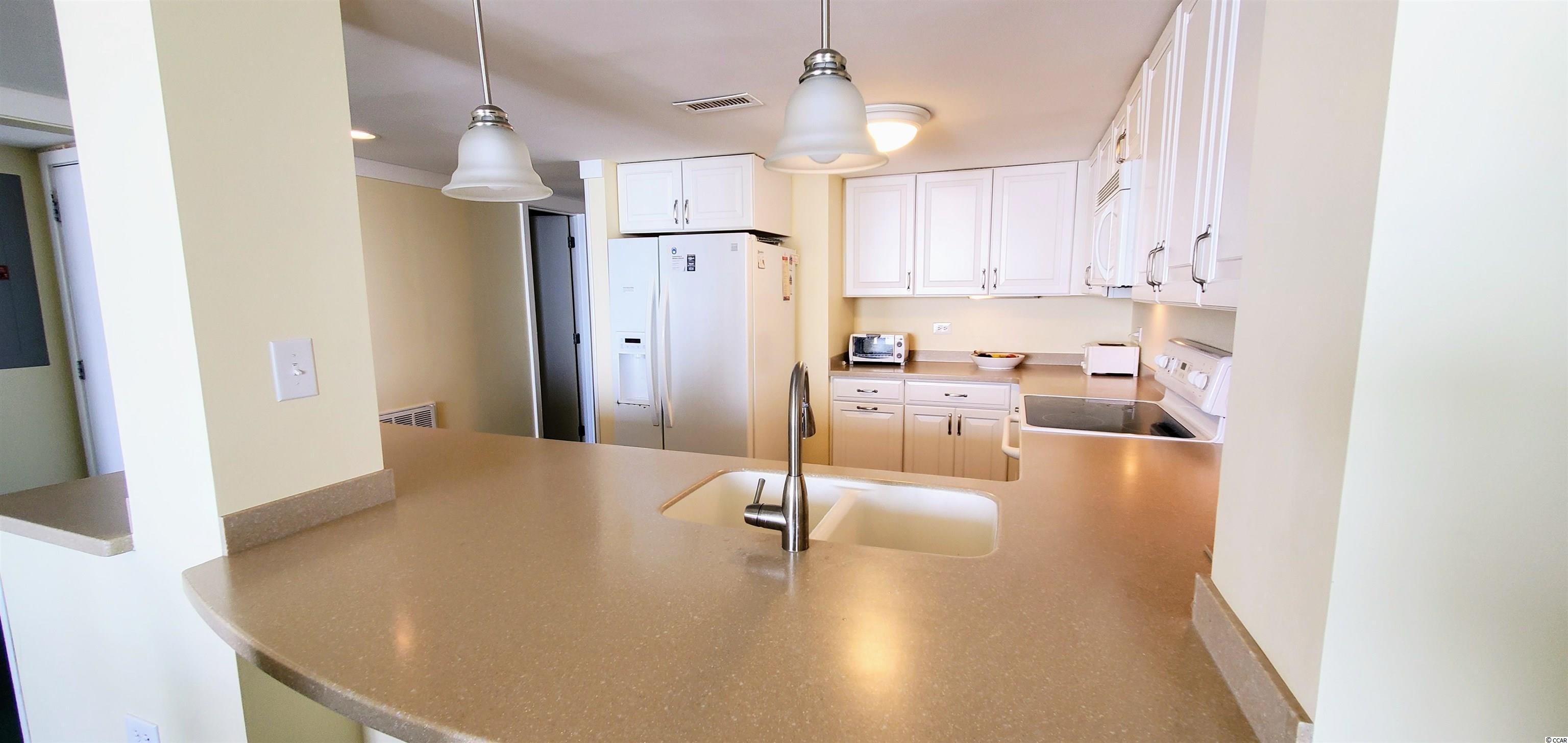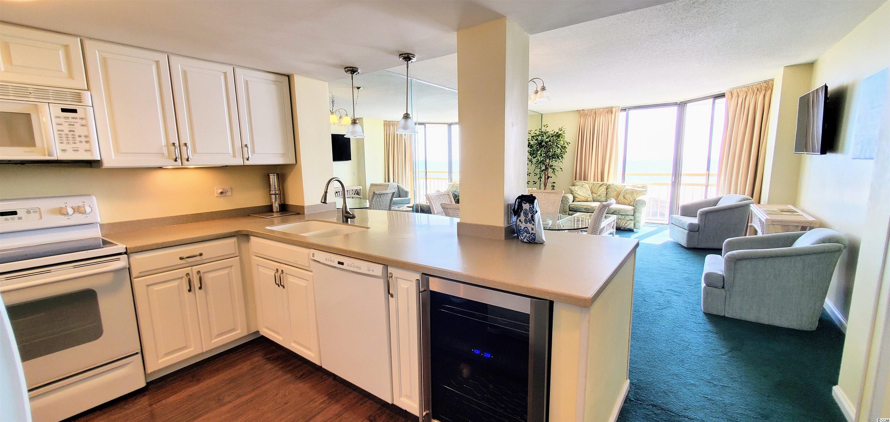 Now available for showings. Long term tenant has left. Amazing views from the expanded oceanfront balcony featuring the Beach Club, Creek, Tower South pool, coastline, ocean and surf. Watch unbranded video 2 to see the views. This condo faces the ocean and is on the 6th floor of Tower South. Ocean Creek has 57-acres of park-like grounds. 24-hour gated security, tennis center, pickleball court, putting green, multiple outdoor pools, and an indoor pool with whirlpool. The community boasts a wonderful oceanfront beach club with a snack bar and grill open in season, sand volleyball court, outdoor pool, playground, lockers, and restrooms. All figs. & sq. ft. approximate.