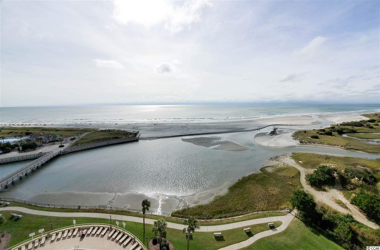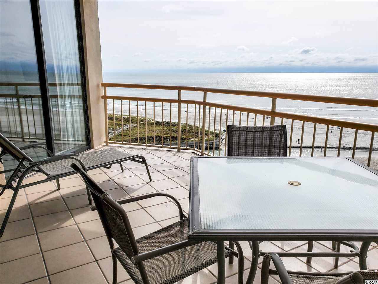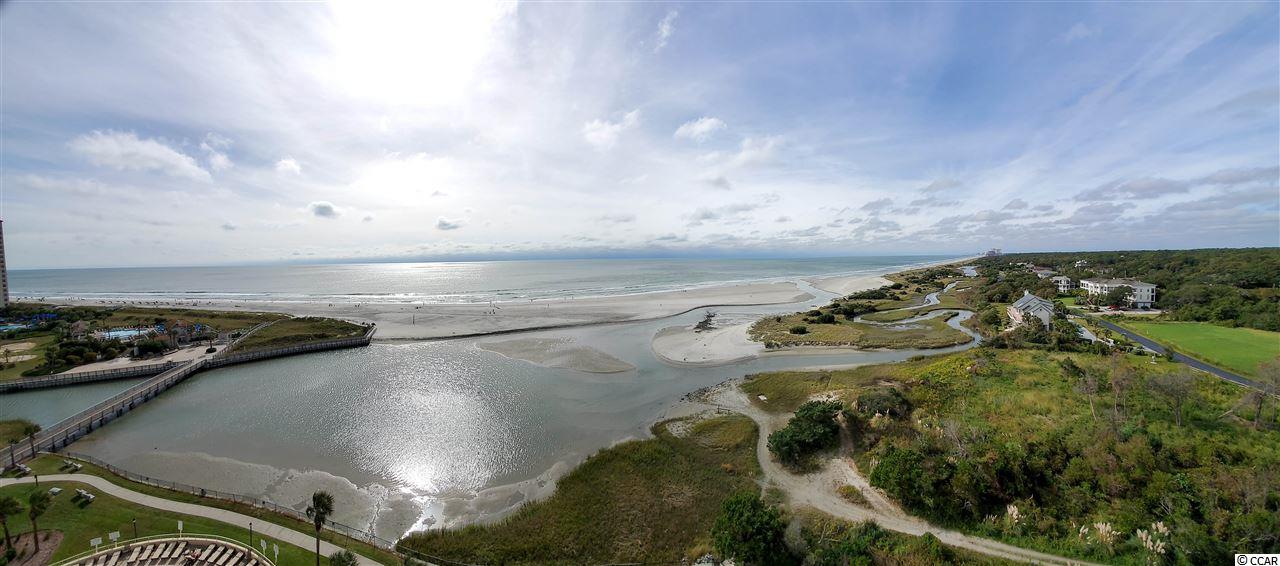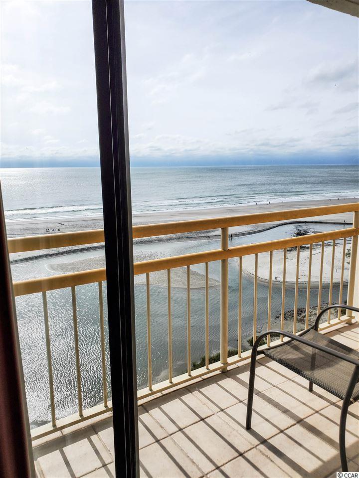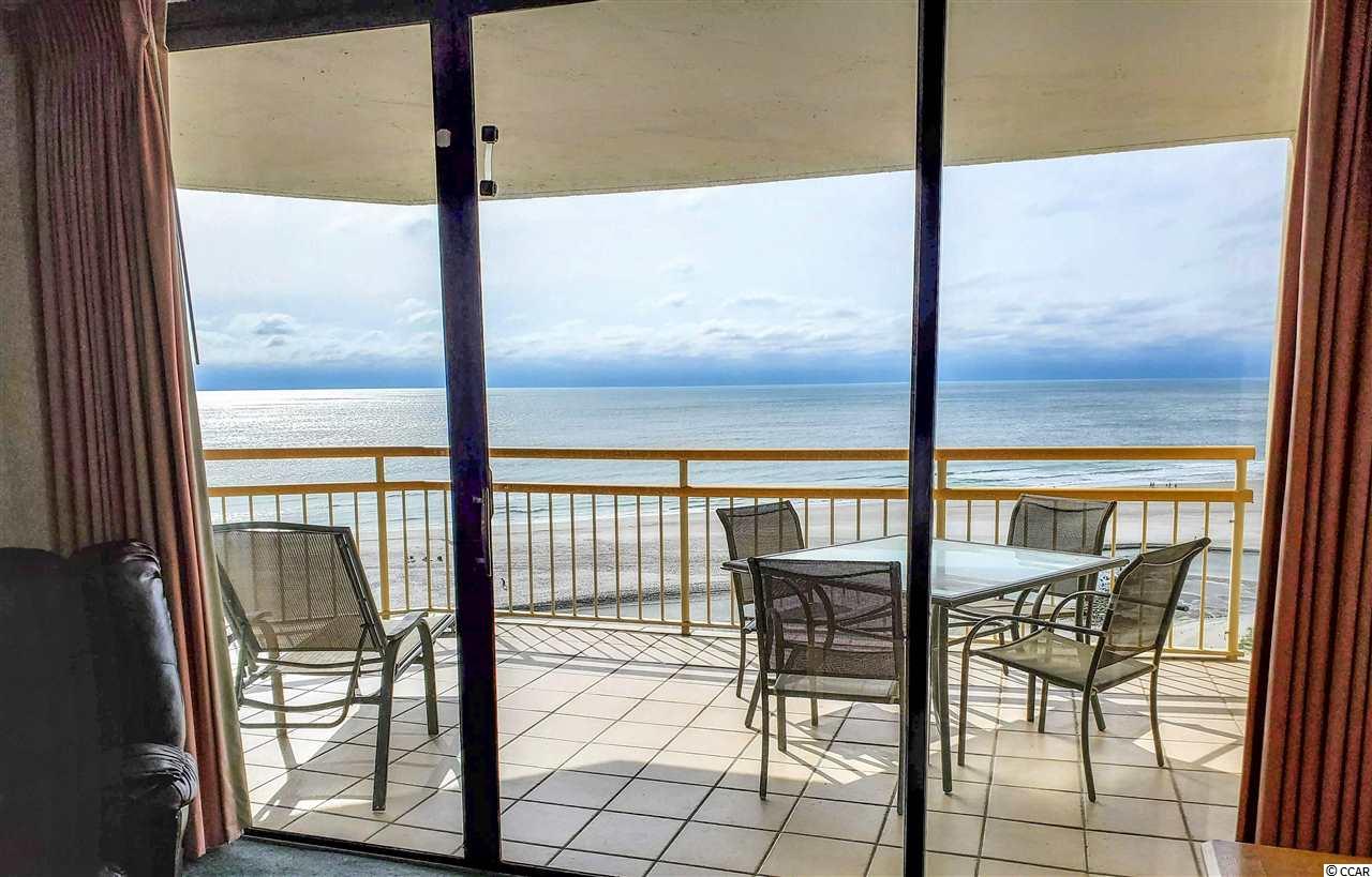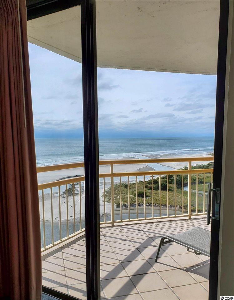 Views, views views from every room! This is a direct oceanfront condo with views of 30 miles of the southern coastline overlooking the land conservation area of Briarcliffe Acres and a spiritual center. Large main balcony is accessible from the living area and guest room. The master bedroom has a private balcony. This property has a wonderful southeastern exposure so there is great natural light in the winter. The floor-plan is open and spacious. Ocean Creek is a 57 acre gated community right across from Barefoot Landing offering shopping, restaurants and world class shows and entertainment. This lovely community has park-like grounds with huge live oak trees, multiple indoor and outdoor pools, tennis, pickleball and putting green. All figs. & sq. ft. approximate.