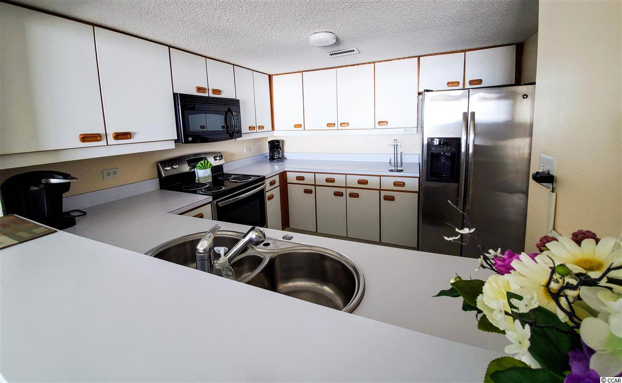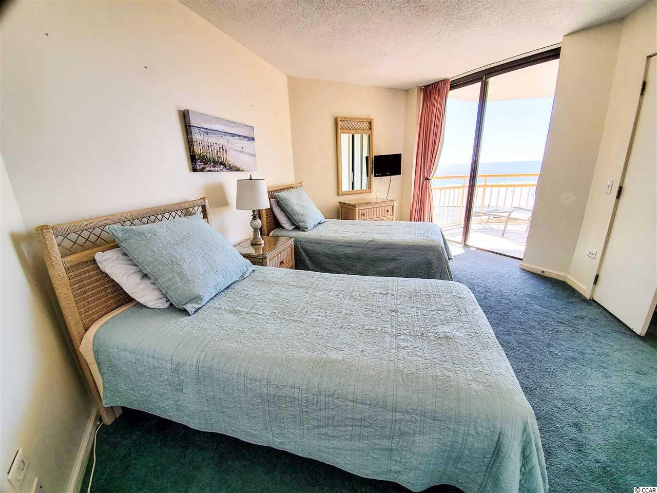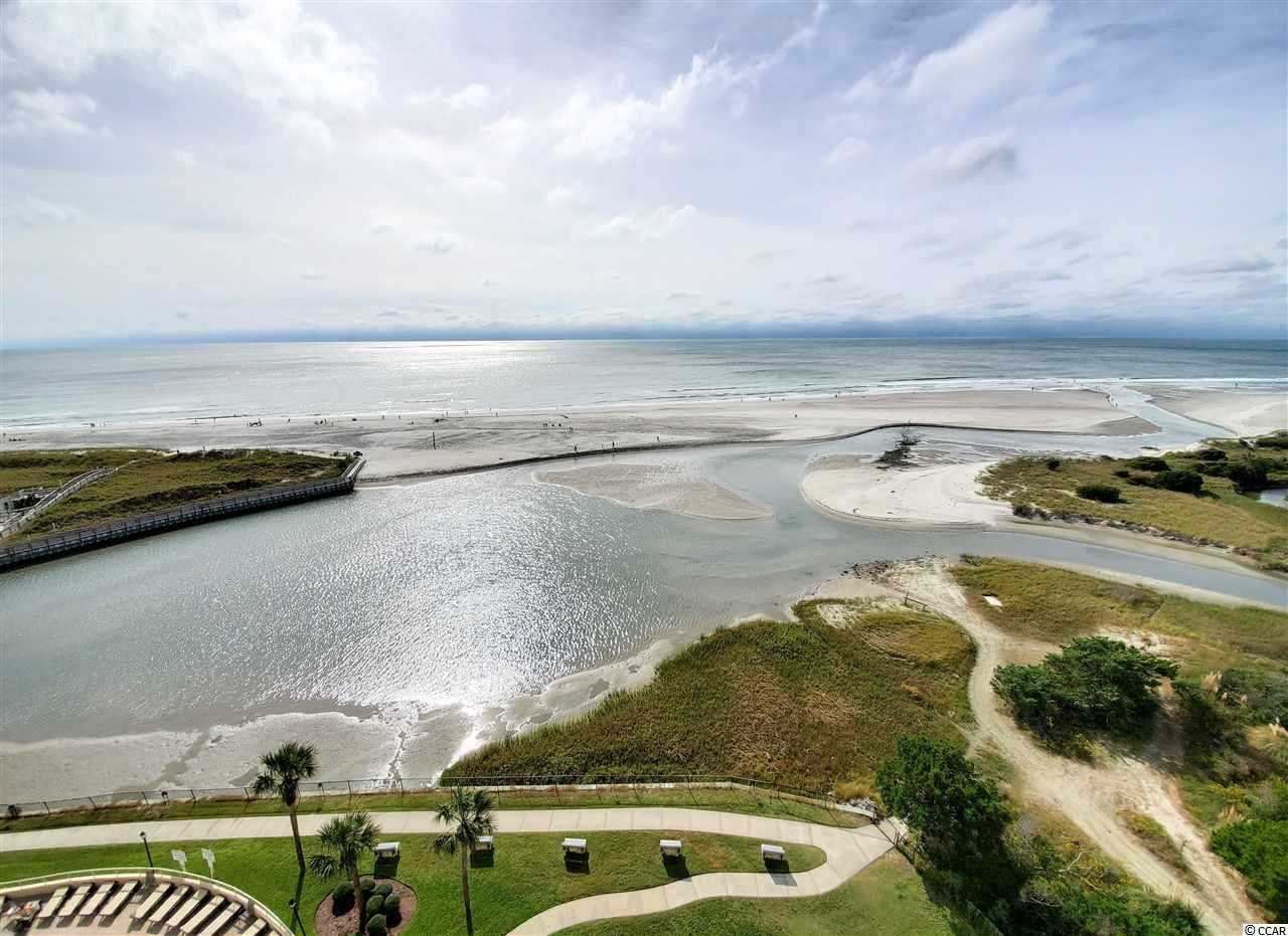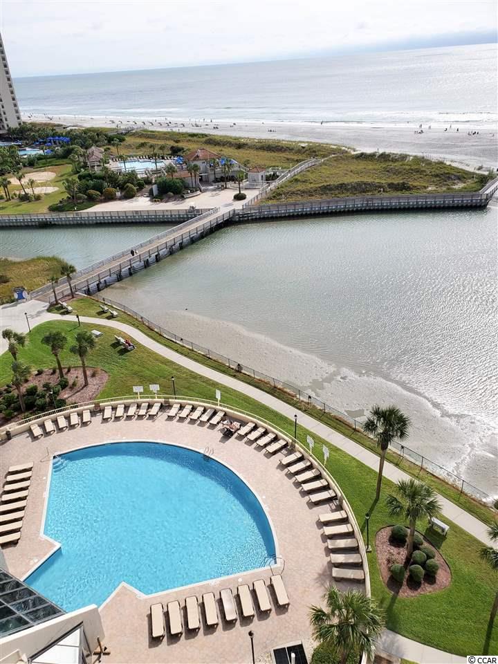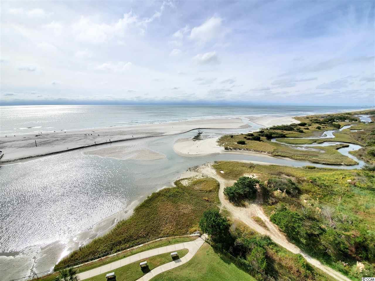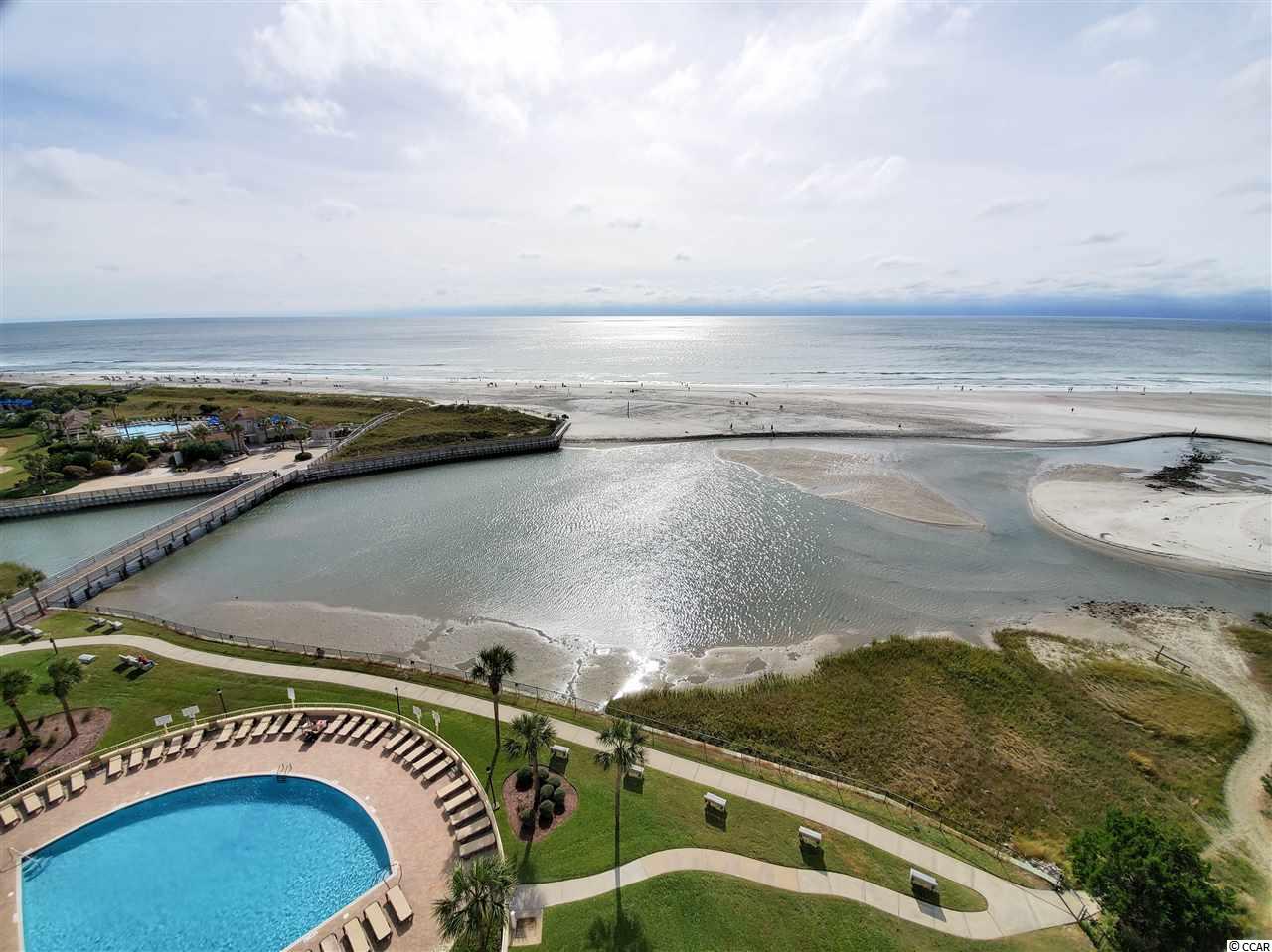 Views, views views from every room! This is a direct oceanfront condo with views of 30 miles of the southern coastline overlooking the land conservation area of Briarcliffe Acres and a spiritual center. Large main balcony is accessible from the living area and guest room. The master bedroom has a private balcony. This property has a wonderful southeastern exposure so there is great natural light in the winter. The floor-plan is open and spacious. Ocean Creek is a 57 acre gated community right across from Barefoot Landing offering shopping, restaurants and world class shows and entertainment. This lovely community has park-like grounds with huge live oak trees, multiple indoor and outdoor pools, tennis, pickleball and putting green. All figs. & sq. ft. approximate.