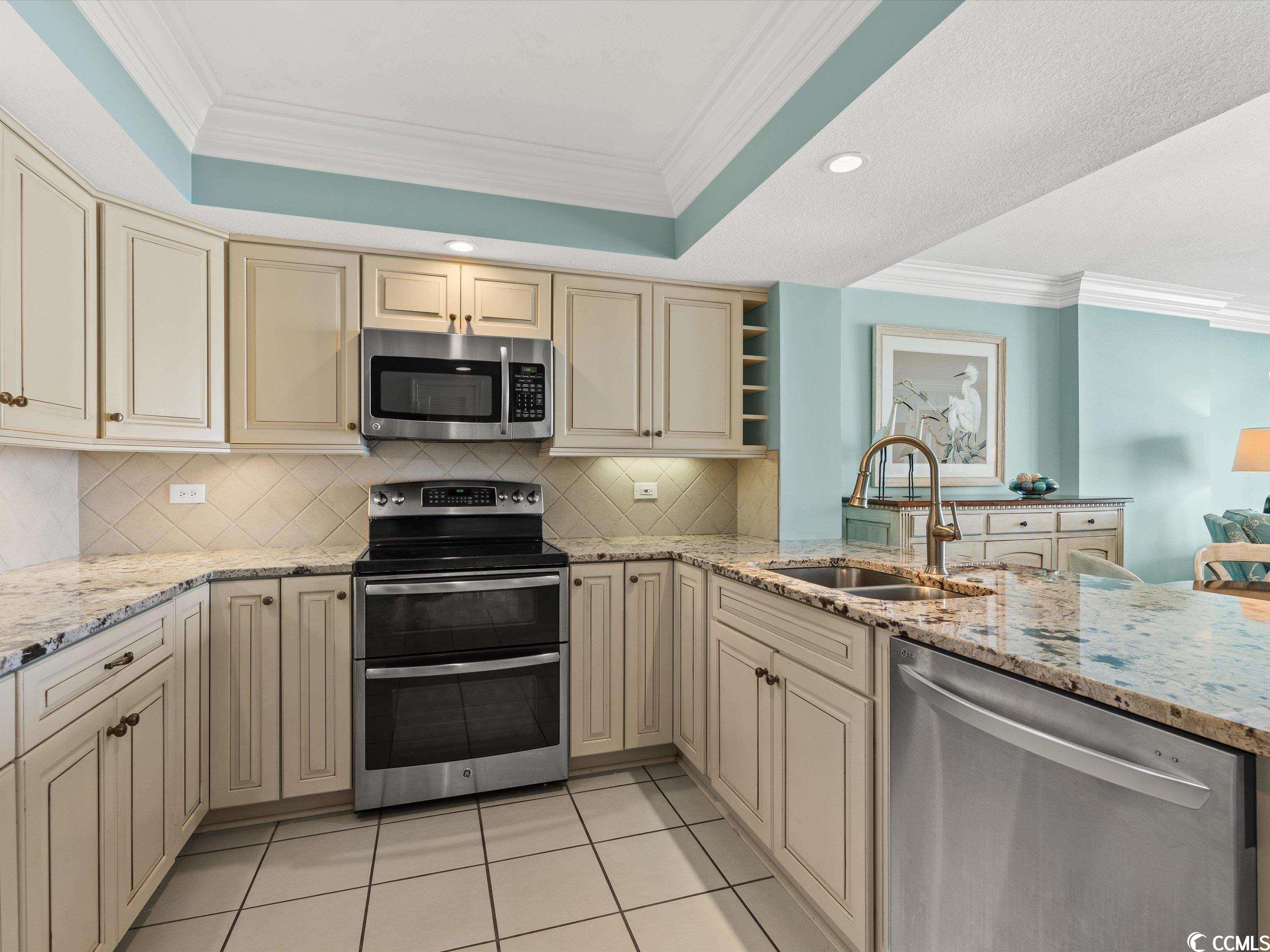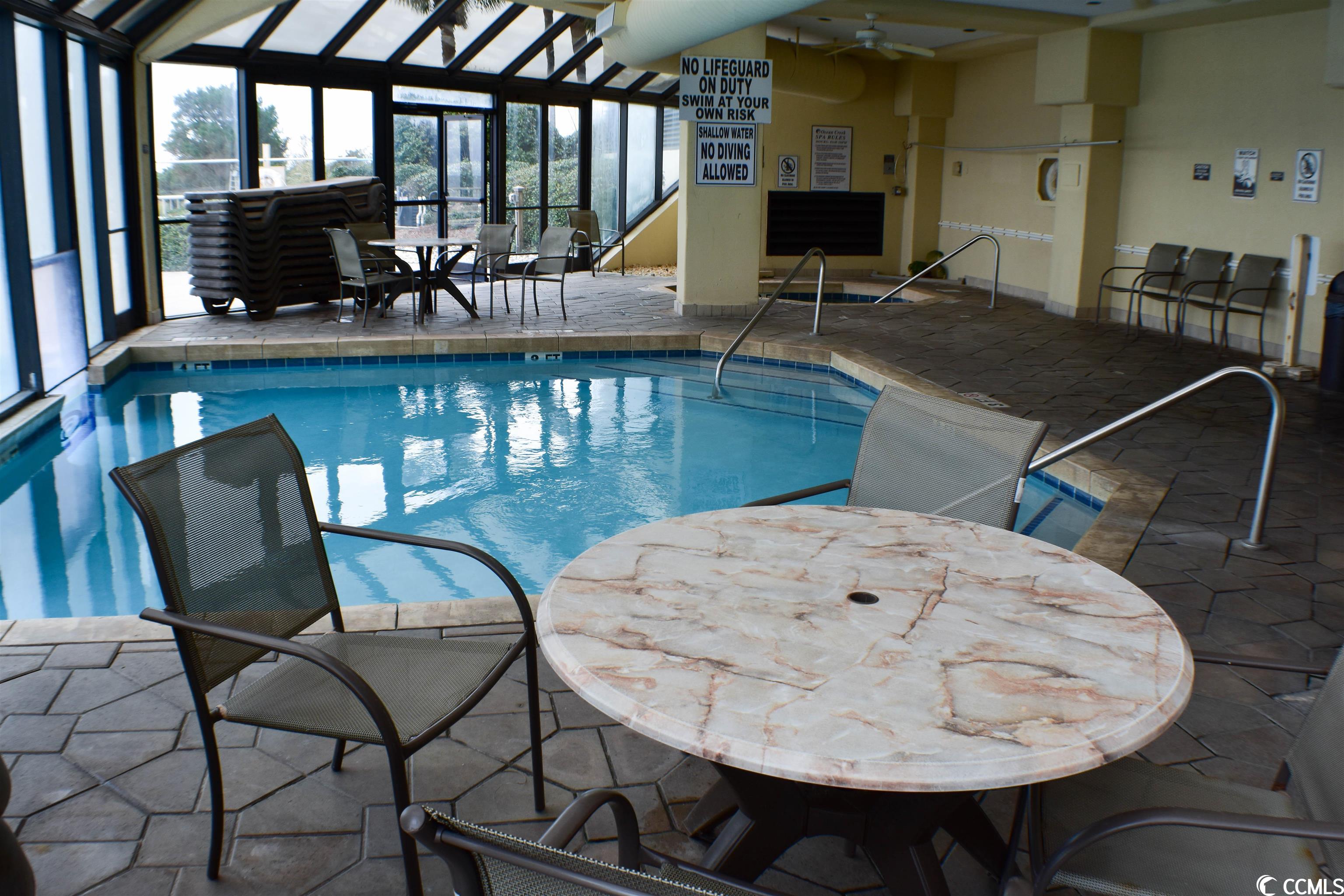 Spectacular views of 30 miles of southern coastline overlooking Briarcliffe Acres and the Spiritual Center from every room. Lovely renovations include: replacement of sliding glass doors, new interior doors and hardware throughout, kitchen opened to living area, custom cabinets and vanities, granite counters, recessed lighting, tray ceilings in kitchen and foyer, baths updated and more. Two balconies take advantage of the wonderful southern exposure and winter sunsets. Watch unbranded narrated video tour. 57-acre property of lush greenery and park-like grounds. Tower South has a private indoor/outdoor pool. Ocean Creek features 24-hour gated security, a tennis center, a putting green, onsite restaurant, multiple outdoor pools and an indoor pool with whirlpool. The community offers a wonderful oceanfront beach club with a snack bar and grill open in season, outdoor pool, sand volleyball court, playground, storage lockers and restrooms.