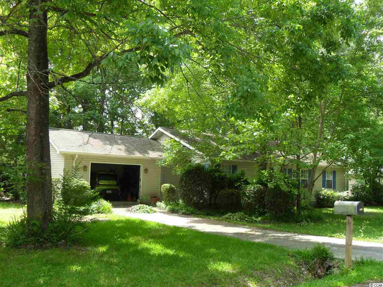 Looking for a home without HOA's ? This could be it. Beautiful corner lot with several shade trees surrounding a 3 bedroom, 2 bath ranch home. Large living area with fireplace and vaulted ceiling, kitchen with breakfast area, oversized garage and fenced yard. This quiet waterway community of Harbour Towne is convienent to US17 Bypass and located only a few miles from the Market Commons which has many restaurants and shops, movie theatre, grocery store and beautiful walking trails. This house is being sold AS-IS , but with some TLC would be a great home.