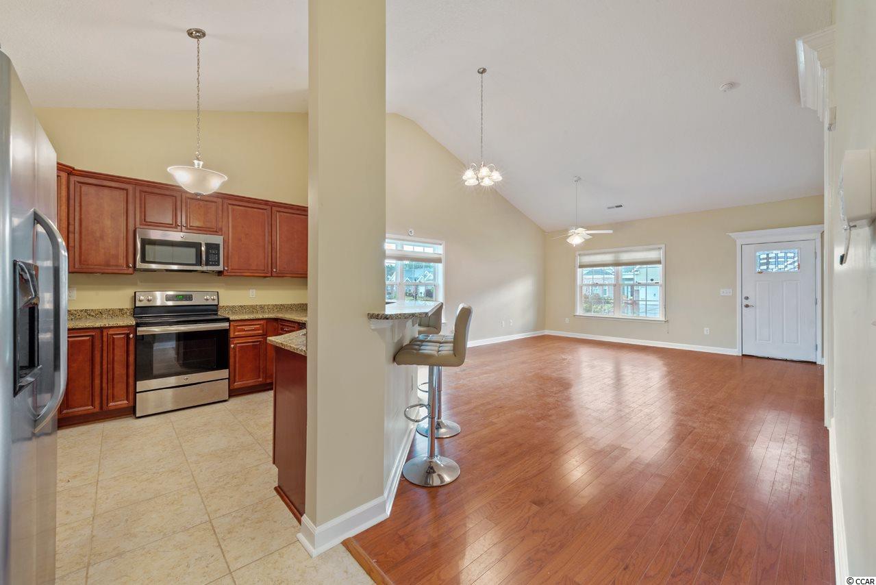 As you enter into the property you will find a welcoming living room with vaulted ceilings, a ceiling fan, wood floors, warm crisp colors, and custom crown molding accents. The open floor plan concept flows into a dining room/ kitchen combo. The sleek kitchen design features stainless steel appliances, soft close cabinet drawers, granite counter tops, tile flooring, and upgraded cabinetry. This cozy home encompasses a single level with three spacious bedrooms and a split floor plan that offers more privacy for both guests and the master suite. The master suite boasts a tray ceiling, ceiling fan, spacious closet, and an en-suite with a double sink vanity and stand up shower. Enjoy the sweet summer breeze on the screened back porch or entertain your guests with a neighborly barbecue on the back patio. This home has a one car rear loading attached garage that backs up to a private road for discrete owner access. This lovely property is located near all of the shopping, dinning and entertainment that the quaint town of Conway has to offer.