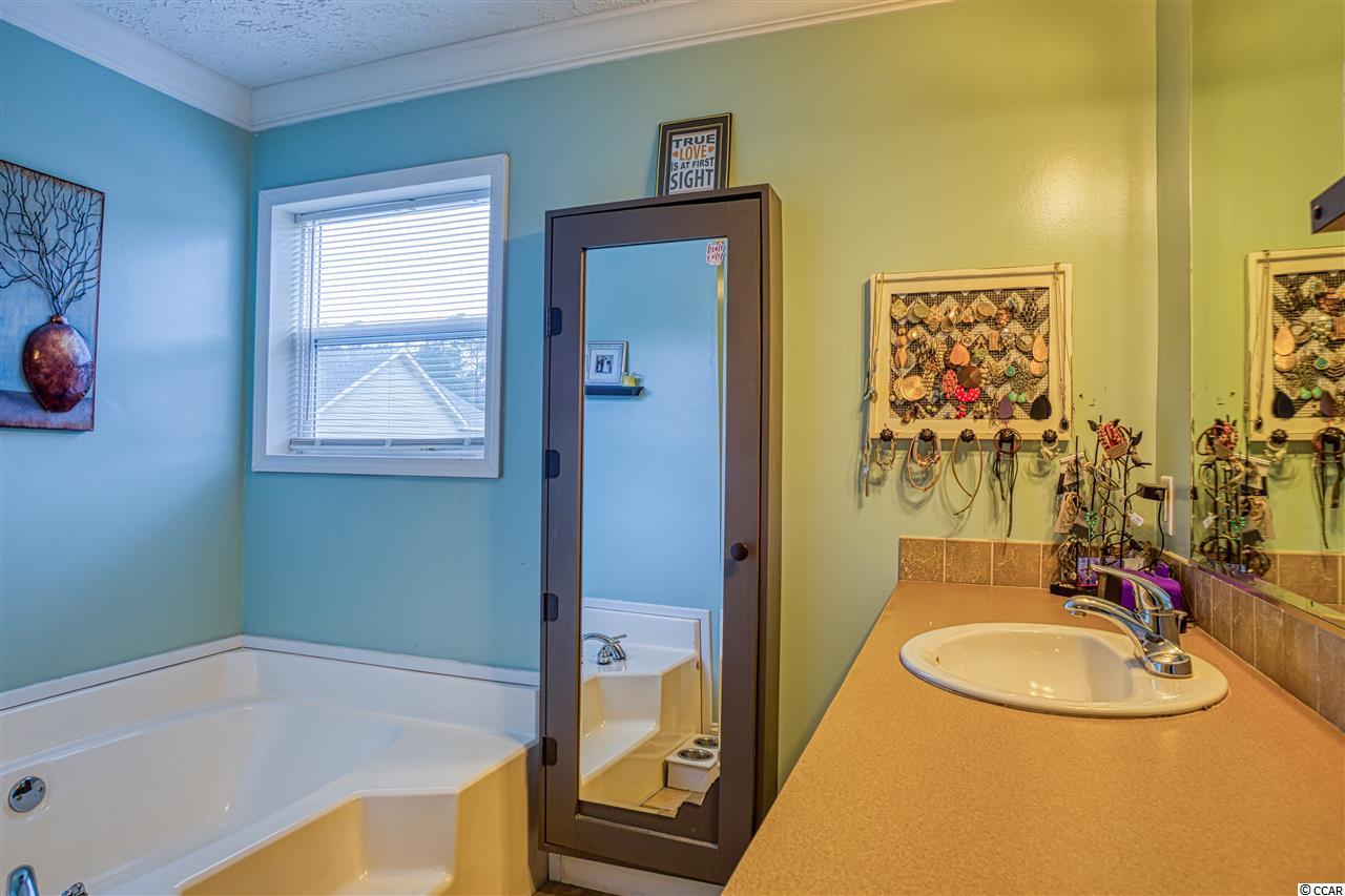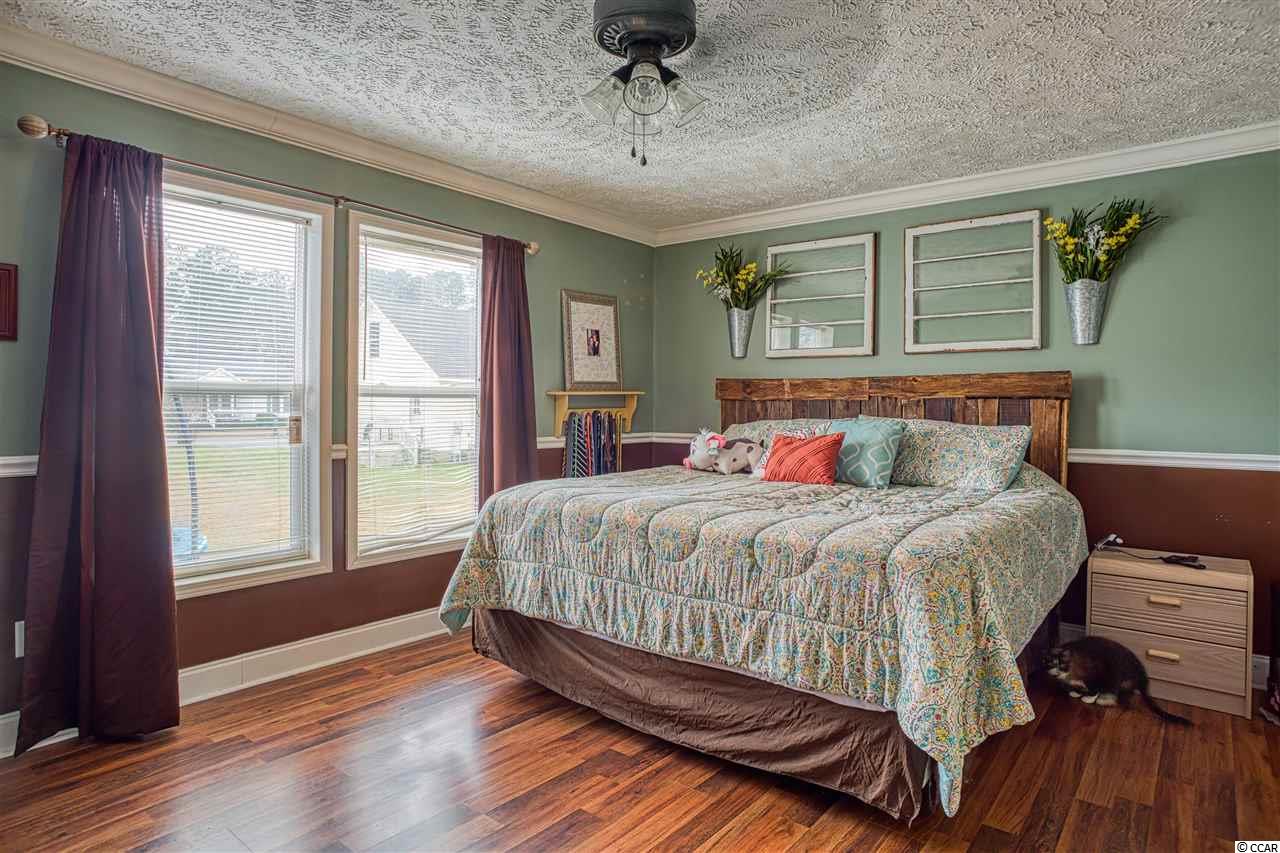 Country charm abounds inside this spacious 3 bedroom, 3 full bath home just minutes from Coastal Carolina University. Enjoy summer evenings relaxing on your front porch or swimming in your sparkling pool with decking. Upgrades inside like crown molding throughout the home, updated flooring and a barn door give this special home a custom feel. Finished bonus room over the garage with a full bathroom could be used as an office or extra sleeping space. There's a large eat in kitchen that leads outside to the custom back deck. The master bedroom is large enough for a king sized bed and features a spacious walk-in closet. The en suite master bath has a garden tub and separate shower. Schedule your showing today!