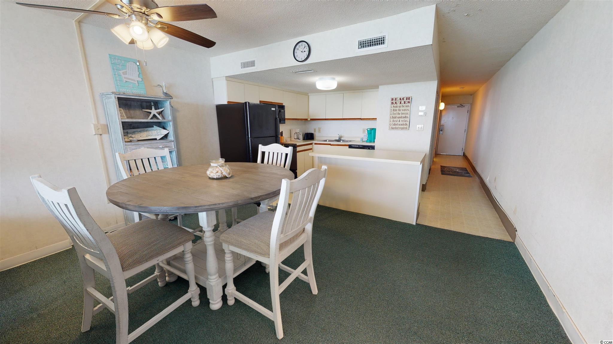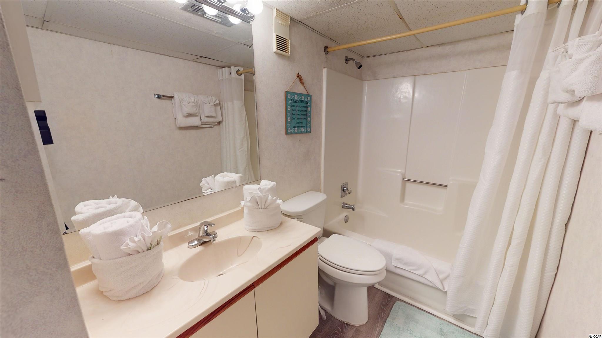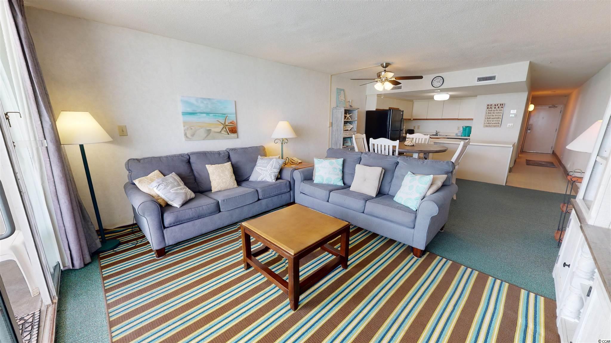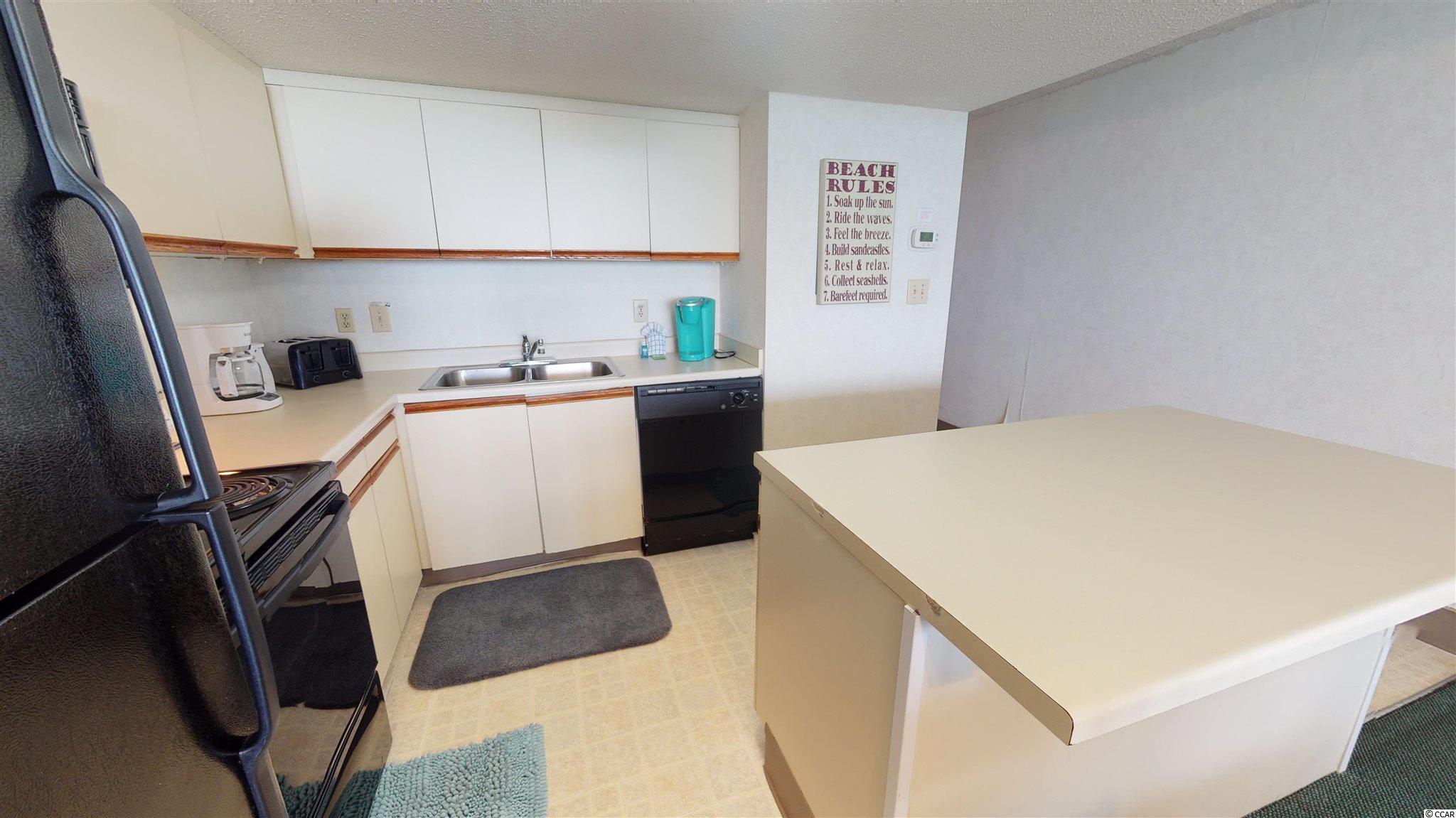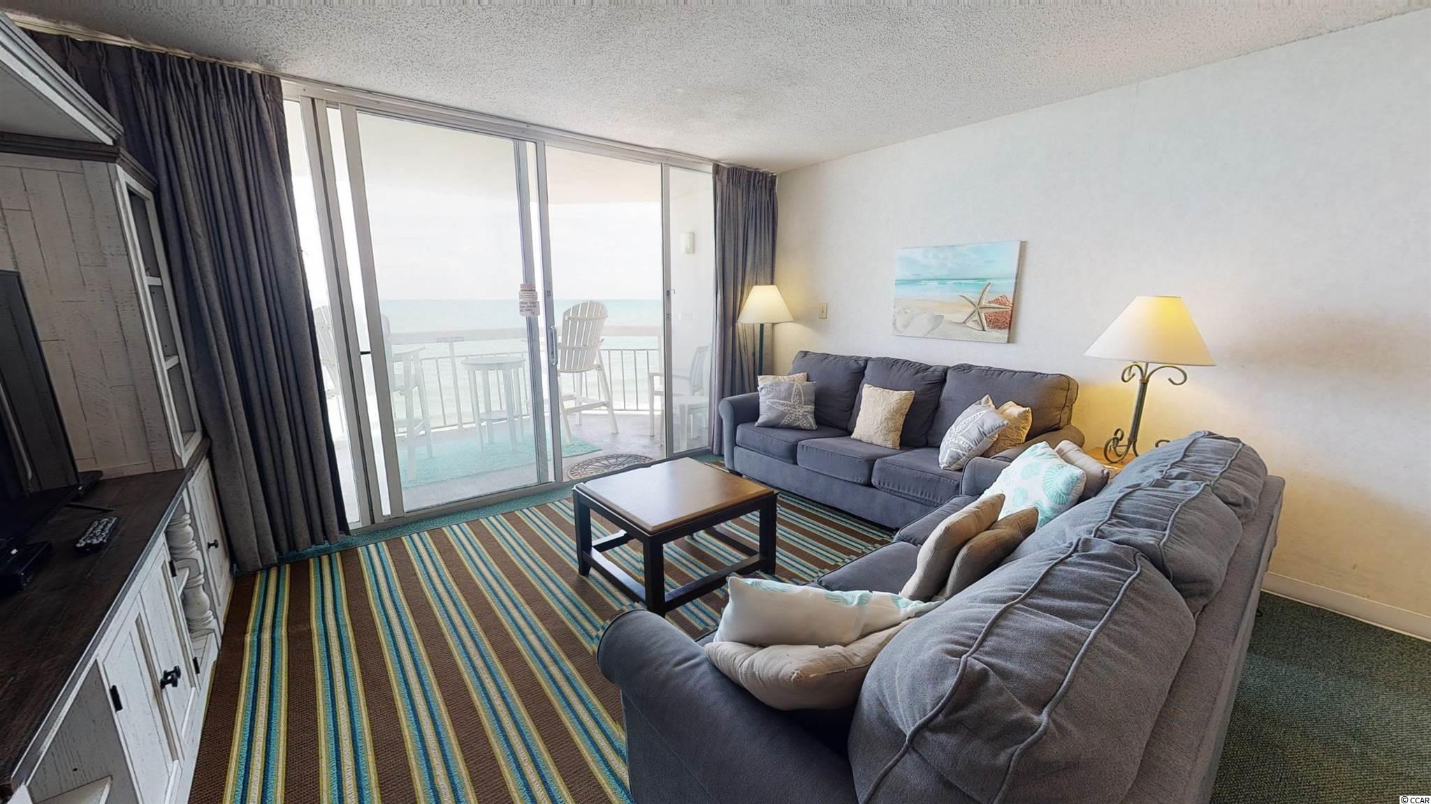 Sit on your private balcony and enjoy the ocean waves as they roll on to the shore. This fully furnished piece of paradise has one bedroom, two full baths, carpet & wood look vinyl flooring, and a classic living/dining room combo with a sliding glass door that opens up to the balcony over looking the white sandy beach. The fully equipped kitchen has black on black appliances, range, built-in microwave, dishwasher, refrigerator, and includes an abundance of counter & cabinet space. The master bedroom offers private access to the master bath that includes a vanity with a single basin along with a shower/tub combo. This condo is completed with a full guest bath and a practical laundry closet. Water's Edge Resort features wonderful amenities which include a sparkling oceanfront pool, oceanfront hot tub, indoor heated pool, fitness center, on-site dining, and a lazy river. This condo affords you easy access to the beach and golfing along with all of the other activities and happenings in Garden City Beach, Myrtle Beach, and Murrells Inlet including fun eateries, award winning off-Broadway shows, public fishing piers, Marsh Walk, and intriguing shopping adventures along the Grand Strand. Conveniently located to your everyday needs, including grocery stores, banks, post offices, medical centers, doctors offices, and pharmacies. Check out our state of the art 3-D Virtual Tour.