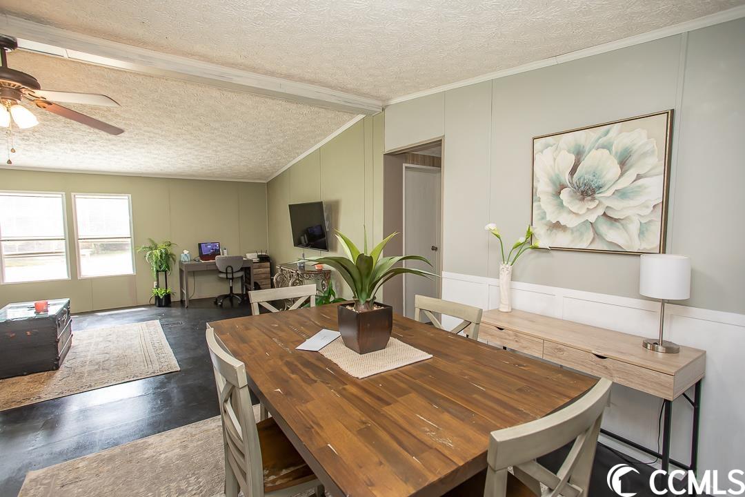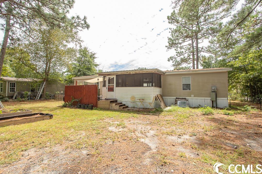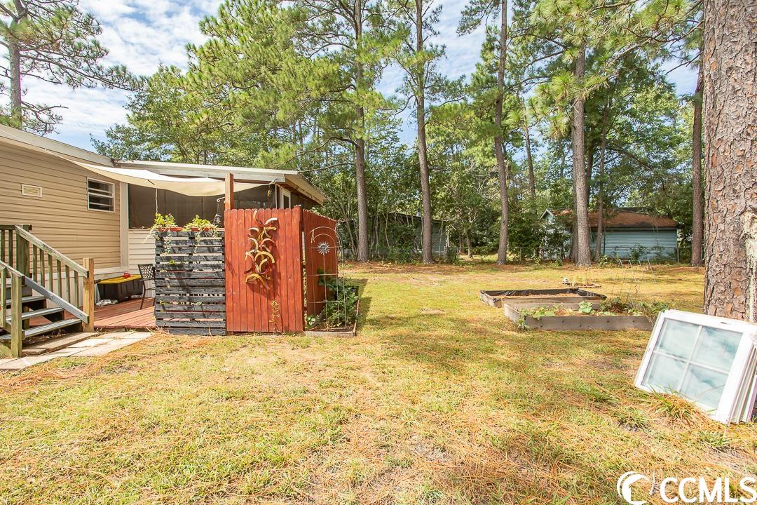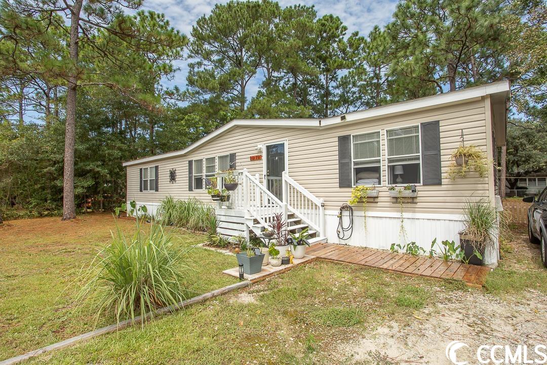 Great Location - 3 Bed/ 2 Bath manufactured home with land - NO HOA !. Easy access to Conway, Myrtle Beach, Surfside Beach and surrounding beaches. Just minutes from CCU , HGTC, Conway Hospital, downtown Conway, Riverwalk, grocery stores, shopping, restaurants and area beaches. This home has a split floor plan with spacious bedrooms, nice size closets providing you with lots of storage space. Large screened porch off the back of home overlooking backyard, detached storage building, front deck porch, plenty of yard space, mature landscape, and fenced backyard. This split floor plan offers you a spacious sized Great/Family room area with vaulted ceiling and ceiling fan. Eat in Kitchen with plenty of cabinet storage and a formal dining room. Large master bedroom suite with walk-in closet, master bath has walk-in shower, garden tub and double sink vanity. Second bathroom has a tub/shower combination and vanity. Separate laundry room, ceiling fans in all the bedrooms and eat in kitchen. Give your Realtor a call today to schedule a Showing on this home! Square footage is approximate and not guaranteed. Buyer is responsible for verification.