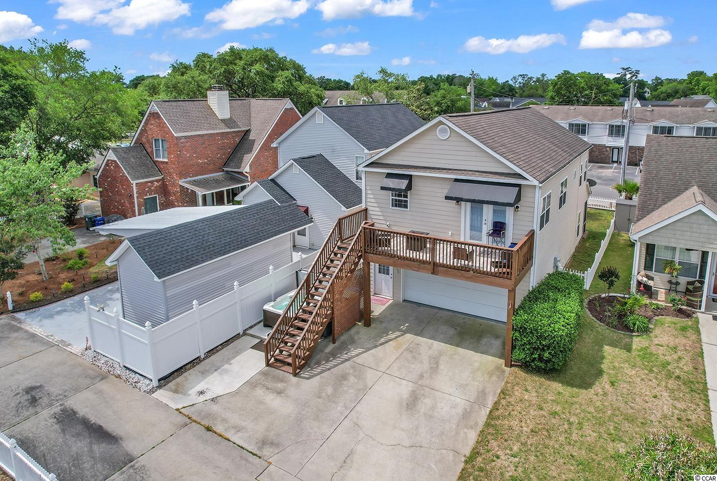 AMAZING LOCATION! Come see this beautiful two-story 3 bed 3 full bath home, LESS THAN A MILE TO THE BEACH! This home features a two-car garage, a hot tub, a back deck, front screened porch, and fenced yard. Brand new laminate flooring throughout the upstairs living area and kitchen--NO CARPET! Centrally located to the beach, shopping, golfing, restaurants, and live entertainment on Main Street. All appliances and blinds convey. NO HOA!