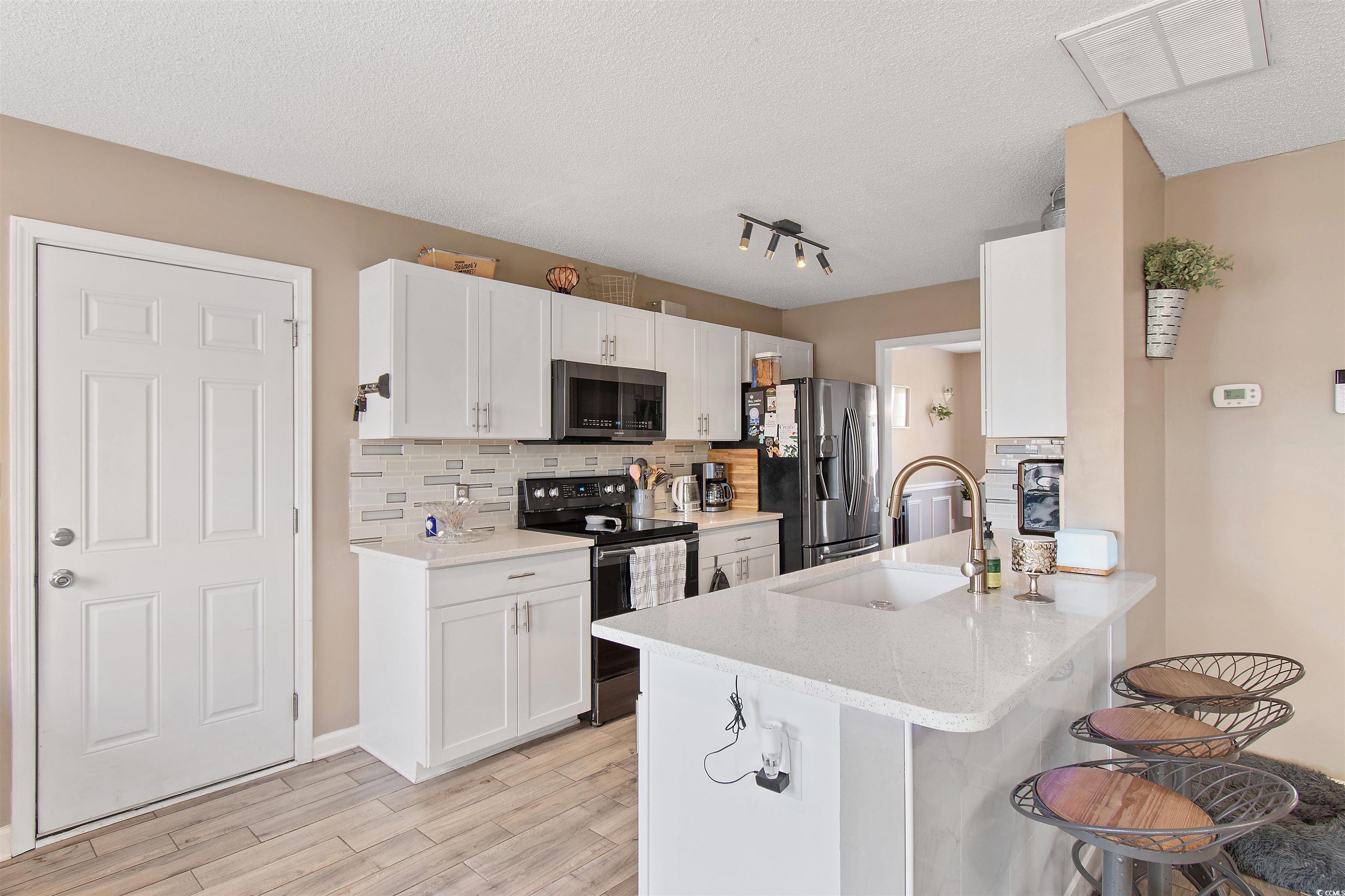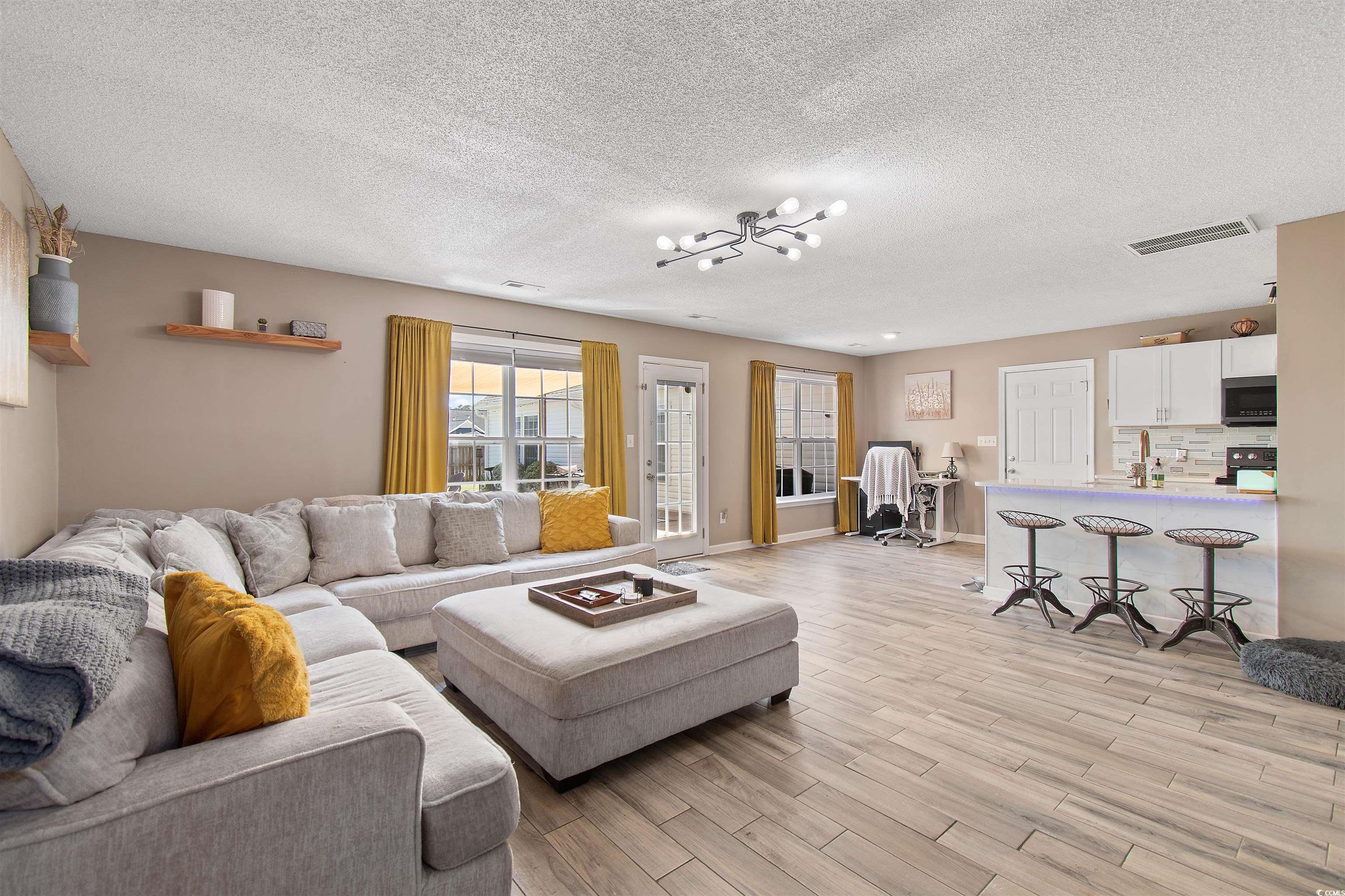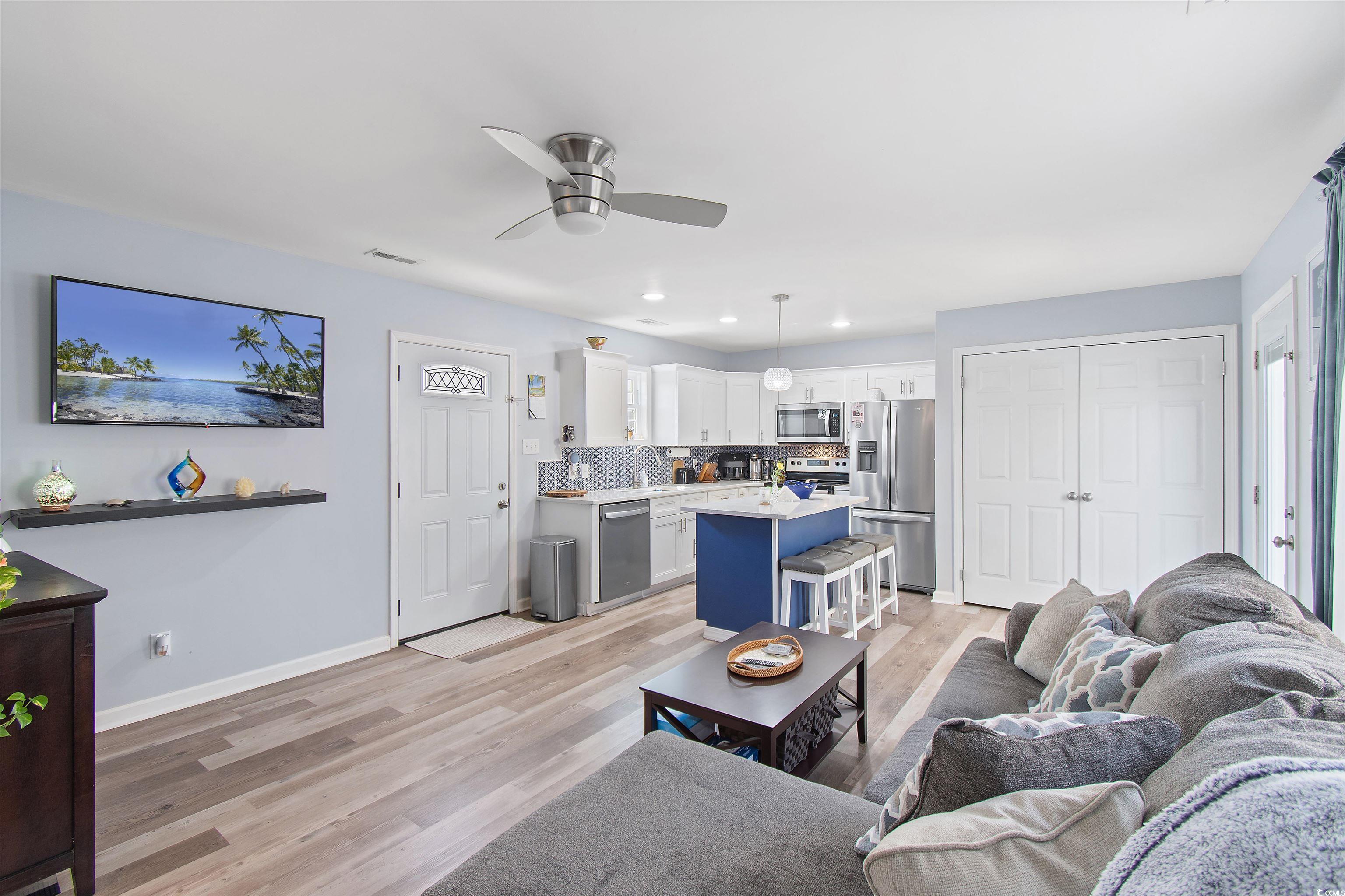 Welcome to 104 Clovis Circlea beautifully updated 5-bedroom, 3.5-bath home located in the Hammerstone Landing neighborhood of Myrtle Beach. Just a short 4-mile drive to the beach, this home offers the perfect balance of peaceful living and easy access to shopping, dining, the Intracoastal Waterway, and more. Step inside to an inviting open floor plan featuring wood-look tile flooring, a formal dining area, and a bright, spacious living space. The kitchen is both stylish and functional with sleek quartz countertops and plenty of room for meal prep and entertaining. The master suite is a private retreat with a fully updated bathroom that includes a dual sink vanity, a walk-in shower, a garden tub, and beautiful tilework. Upstairs features bamboo flooring and large bedrooms with generous closet space throughout the home, offering great storage. The garage has been thoughtfully converted into a versatile flex spaceideal for a home office, gym, playroom, or creative studio. Outside, enjoy a large, fully fenced backyard with a custom deck and cozy fire pit areaperfect for relaxing or entertaining friends and family. A standout feature of this home is the private MOTHER-IN-LAW SUITE, offering its own entrance, a full kitchen with stainless steel appliances and tiled backsplash, spacious living room, bedroom and bathroom. Whether for extended family, guests, or rental income potential, this space adds incredible value and flexibility. Dont miss your chance to own this unique property with room to grow, live, and entertainschedule your private showing today!