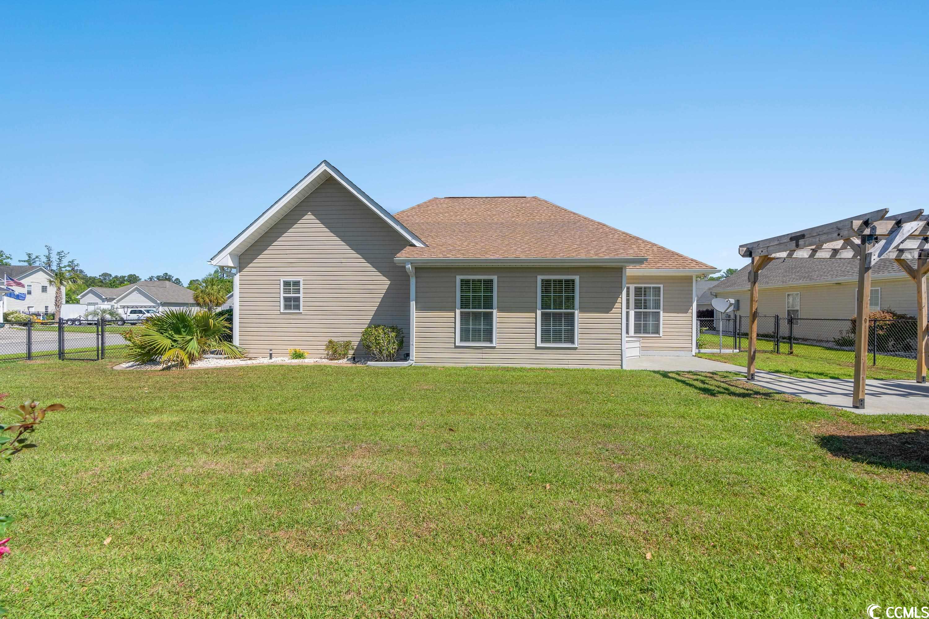 This immaculate, corner lot home exudes curb appeal and is one of the largest in the neighborhood. This beautiful home features 4 bedrooms, 2 baths, and a four-session Carolina room. The master and two other bedrooms are on the first floor and the fourth is upstairs or can be used as a bonus room. This open floor plan is ideal for entertaining and includes a kitchen with granite countertops, a breakfast bar, stainless steel appliances, and 2 large pantries. Beautiful master bed has tray ceiling, walk-in closet, and garden tub. Beautiful landscaping features, azaleas, palm trees, crepe myrtles, knockout roses, and tea olives. Did I mention the patio and outdoor shed? Also, garage storage and gutters all the way around with a fenced-in yard. Minutes to historic downtown Conway and the Riverwalk yet close to the beach, shopping, medical, and all Myrtle Beach attractions. Why are you still sitting there?? Write your offer now!!! Square footage is approximate and not guaranteed. Buyer is responsible for verification.