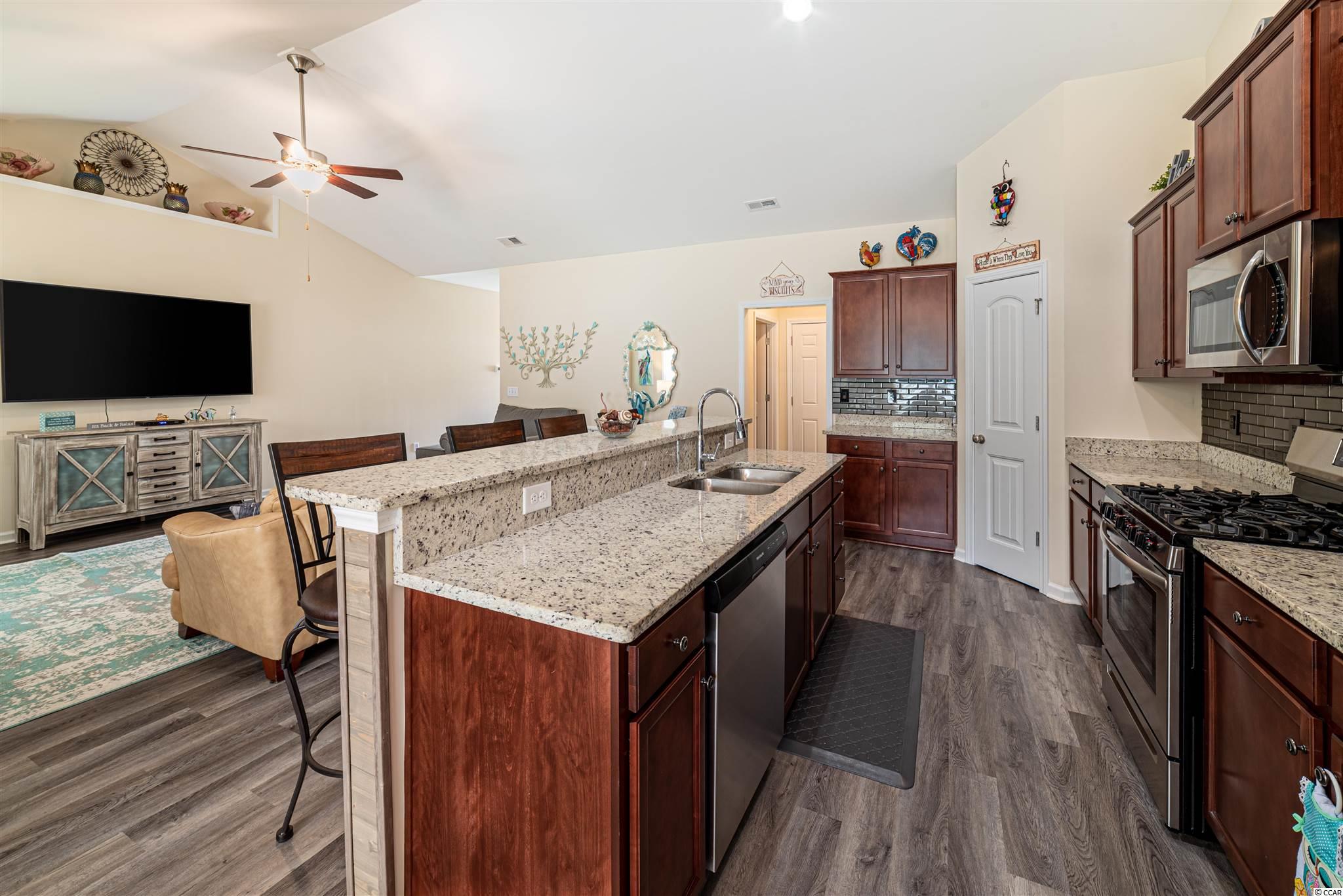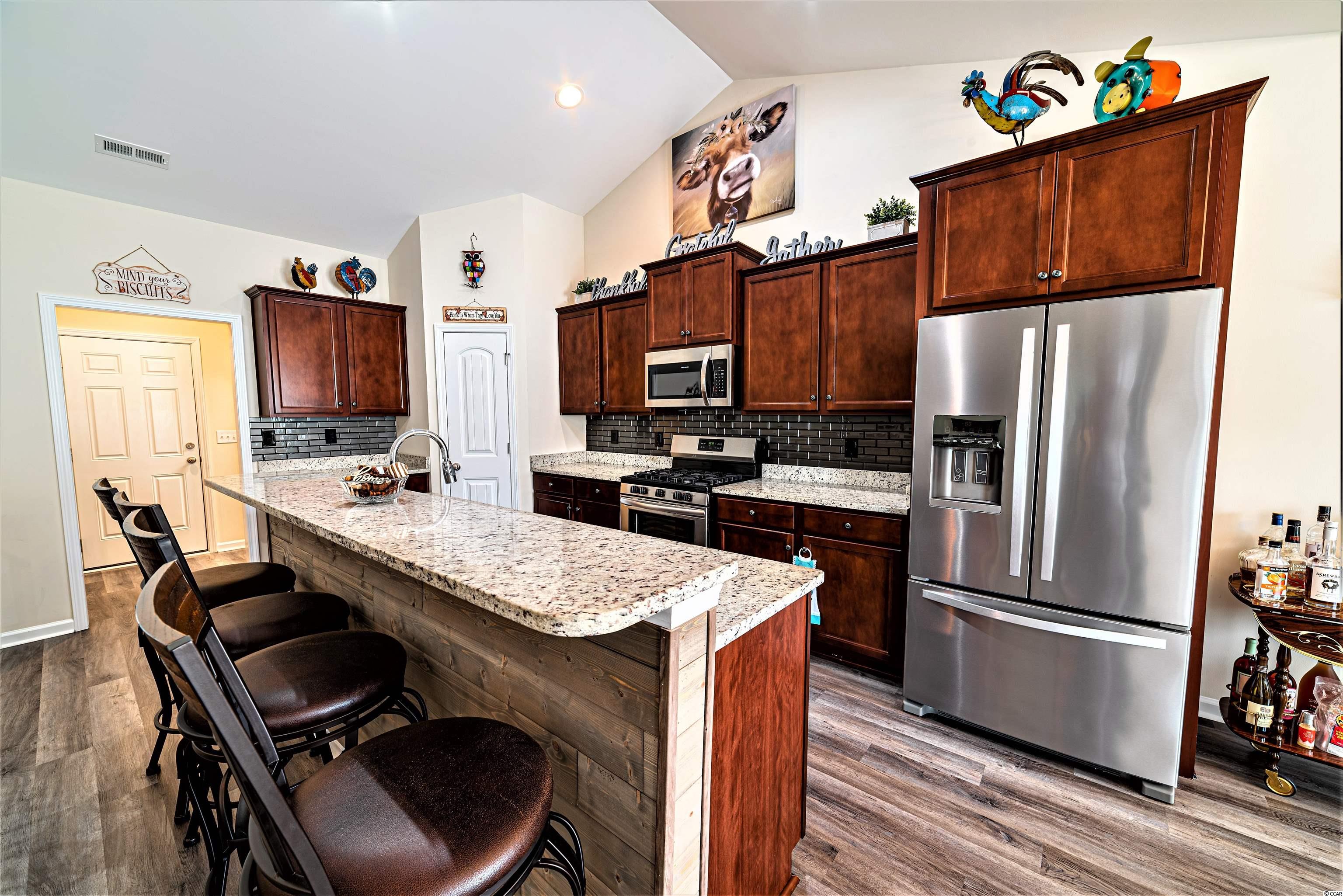 Welcome to 1042 Kennington Ct, a beautifully maintained 3 bedroom 2 bath home that shows like a model and is ready for a new owner! Built in 2019, home features luxury vinyl floors, vaulted ceilings in the living room and tray ceiling in the master bedroom. This Natural Gas home features a tankless water heater, FULL house gas generator, Gas line to the grill and a fire pit (no gas line currently)on the over sized concrete patio which is perfect for making s'mores. Large yard with privacy fencing and irrigation features a covered rear porch that is cable ready, and the firepit makes this home perfect for entertainment and relaxing! Barons Bluff North is a beautiful community with Lakes, Street Lighting, Sidewalks, Pool, and Cabana Area. Home is conveniently located near HWY 22, International Drive, Carolina Forest, and all while being only 20 minutes from the beach and all that Myrtle Beach has to offer!