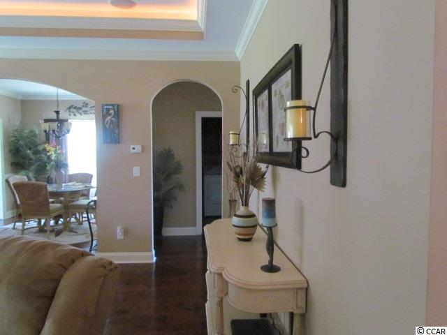 This wonderful home was not built by the onsite builder and offers a ton of upgrades and details that set it apart and makes it an outstanding value. The outside of the home is a full brick front with a brick trimmed driveway with a pair of palm trees out front in view of the Tennessee River Rocks in the flowerbeds and irrigation system surrounding the home. Enjoy the roomy rear porch with tranquil views of your private yard and pond. Professionally landscaped front, rear and side yards encompassing excellent curb scaping that adds to the curb appeal with a second pair of palm trees beautifying the back of the home with a extra large brick trimmed patio with screened in portion for beautiful Myrtle Beach days. As you open the Celass Inlay decorative front door of this lovely home you notice the outside (even though elegantly landscaped) cannot do justice for the beautiful elegance and craftsmanship of the interior of this home. Styled hardwood flooring from the entry foyer throughout the Living and Dining room with crown molding, unique double step tray ceilings with recessed and accent lighting in the Living and Master bedroom. As you walk from room to room you notice the upgraded carpet with windows that abound having had custom window treatments as the natural light flows through the custom sized Fauxwood blinds. With surround sound in the Living room and a nice screened in back porch entertainment is taken to a whole new level. Your dream kitchen has Granite countertops, solid maple wood cabinets and smooth closing dovetail drawers, backsplash, Mosaic tile and stainless steel appliances including a Refrigerator! An upgraded light and appliance package was added and all kitchen appliances are in included! 18"" tile flooring flowing into the adjoining breakfast room. Spacious and private Master bedroom suite has two walk in closets, double granite countertop sinks, a soaking tub plus a walk in shower having 3x5 tile and full glass door. Oversized garage. This whole house is wired for sound and security and offers many features not found in the original plans at The Gates. Minutes from the mall, airport, The Market Common, Broadway at the beach, the convention center and the Atlantic Ocean. You're close enough to get there fast, but just far enough away that you don't have to pay the higher insurance. Keep in mind the awesome tax savings you will realize here too! Schedule a visit to this wonderful home today and start planning your future right here on the Grand Strand! Square footage is approximate and not guaranteed. Buyer is responsible for verification.