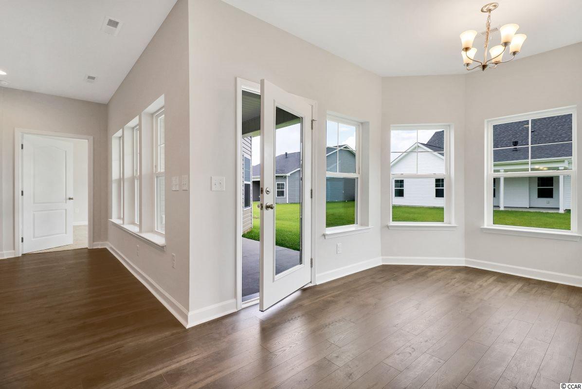 River Haven is a master planned community that offers a luxurious entrance with extensive landscaping, large oak trees, beautiful monuments and pocket parks throughout. This Natural Gas Community will provide many amenities for leisure and relaxation such as a pool and cabana to name a few. River Haven has a 1 mile scenic nature trail that winds through the neighborhood and around a large lake near the Waccamaw River. Our homeowners will have access to the lake and river for canoeing, kayaking and paddle boarding. This Belair by H&H Homes is a single level floor plan with 2 bedrooms, 2 full bathrooms, Study/Office, 2 car garage, and is 1905 sq. ft. The covered entry way opens up to the foyer and through to the open concept living area. a bedroom, Study and full bath with double vanity and linen closet located off foyer. The opposite side of the home contains the kitchen and family room space. The kitchen features an counter height island/breakfast bar and casual dining area that opens up to the spacious family room with back patio access. The master suite with bay window is located in the back of the home and master bath features dual vanity, tiled shower, linen closet and a spacious walk-in closet. Pictures shown are for representative purposes only, and not of the actual home. Home, community information, including pricing, features, terms, availability, and amenities are subject to change prior to sale at any time without notice or obligation. Square footages are approximate.