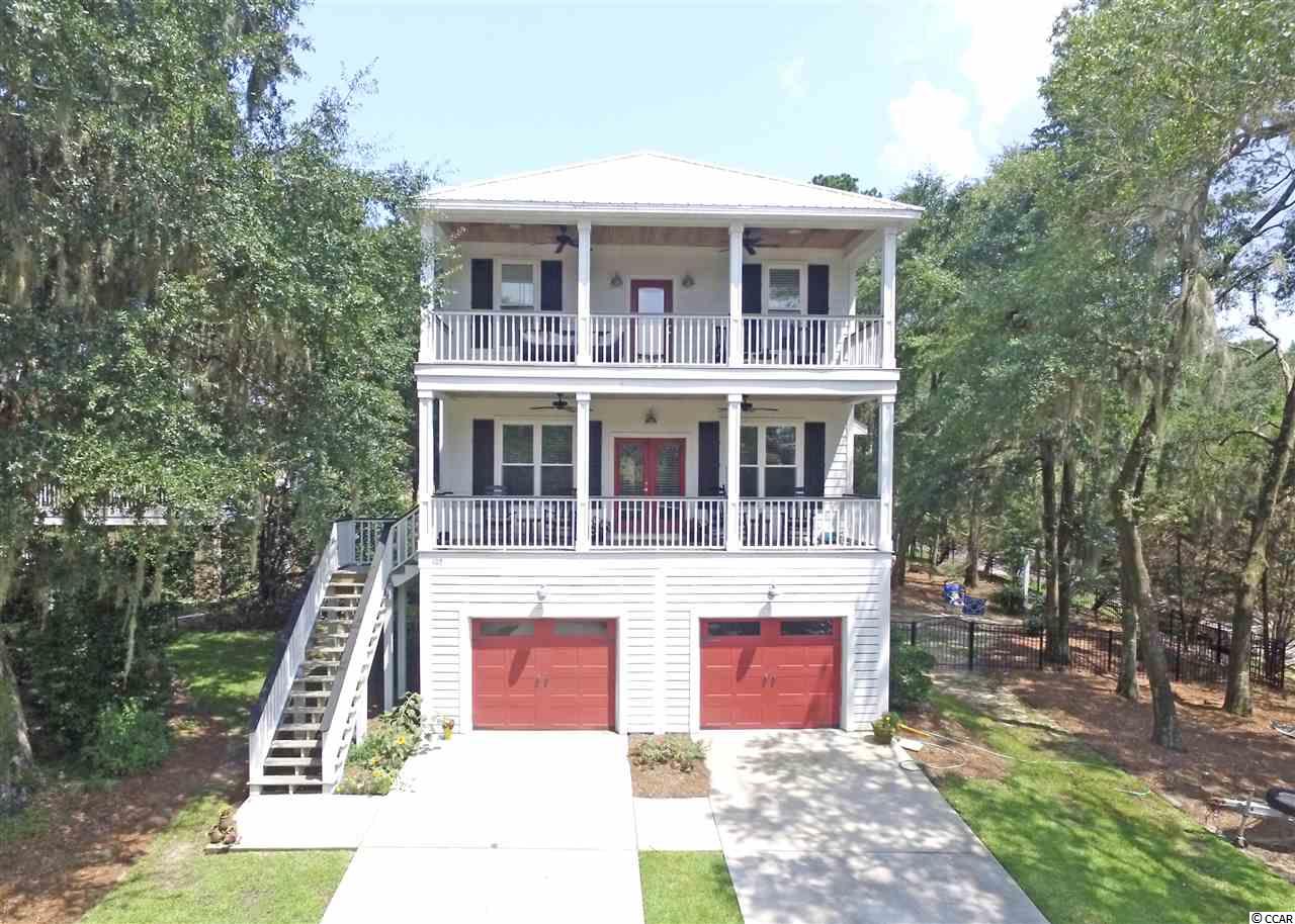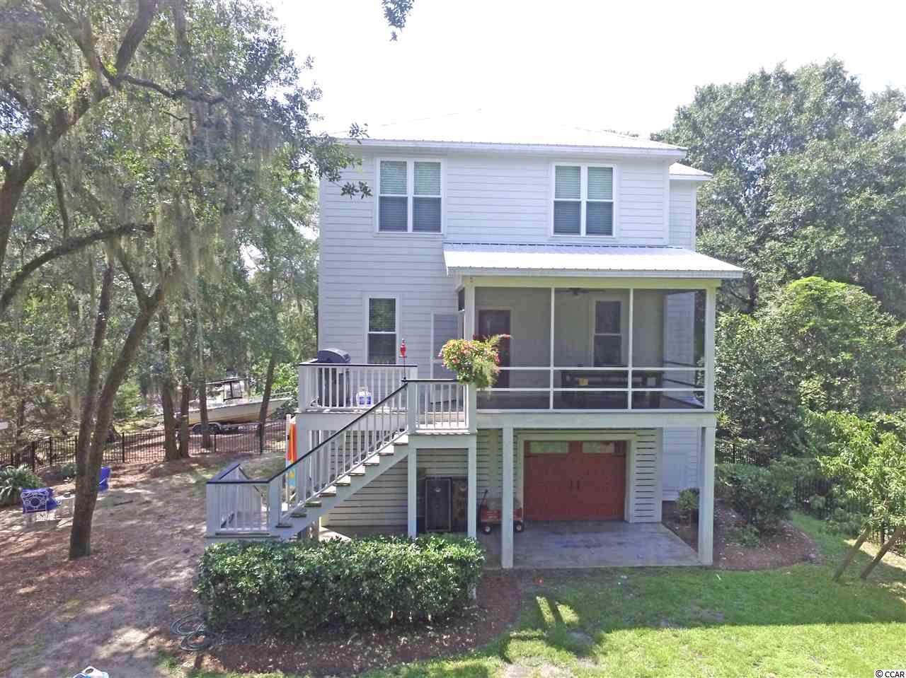 Welcome to 105 Old Waccamaw Drive, just steps to the shores of the beautiful Waccamaw River/Intracoastal Waterway and the Hagley boat landing. Sunset river views! 4 beds, 2 full baths, 2 half baths and an elevator! A recently constructed home with modern design, Hardie siding, a metal roof and tasteful paint colors. The open-kitchen and living room are together the focal point of the first level, with barstool seating, granite counters, a gas range and a layout thats perfect for cooking and hosting family and friends. The living room also has a gas fireplace for those cooler fall evenings and surround sound for enjoying music and movies. The first level also boasts a guest bedroom and a bonus second living room with a screened porch overlooking the back yard. Upstairs is the large master bedroom with a private balcony for reading and enjoying the river breezes before bedtime. The master also features a large closet with built-ins and master bathroom with a tub and tiled shower. The home also has a Rinnai tankless water heater for endless warm water. Finishing off the second level are the 2 additional bedrooms and another full bath. Each bedroom has a large closet with built in storage. The home has two automatic garage doors, leading to plenty of protected parking and storage space. Conveniently, the homes elevator can be accessed from the garage, providing access to any level of the house. The garage also has a climate-controlled half-bath along with a sink to clean your catch after a day of fishing or prepare for outdoor cooking and entertaining. The huge backyard with irrigations system has plenty of space for children to play and for outdoor gatherings. Wash off from a day at the beach or on the river in the outdoor shower. A generous amount of side-yard will accommodate boats and trailers. Hagley Estates is a desirable community on the south end of Pawleys Island located along the Waccamaw River.
