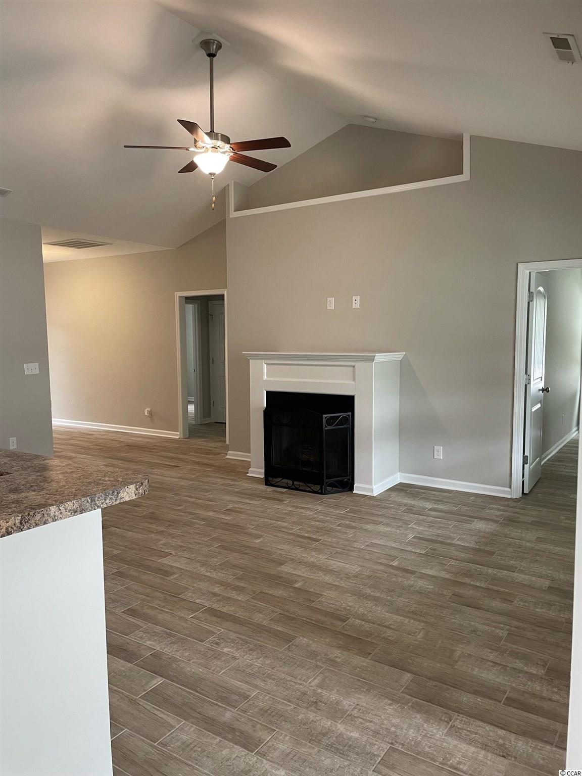 New tile flooring and paint throughout. Natural Gas community Rinnai tankless water heater Alarm system and fiber internet in house. Situated on a large privacy fenced .50 acre cul-de-sac lot, this 3 bedroom 2 bath home features a spacious family room with vaulted ceilings, fireplace and built in display shelf , kitchen with stainless appliances, gas stove, breakfast bar and plenty of cabinet and counter space. The master suite boasts a tray ceiling , walk in closet and bath with vanity and walk in shower. There are also two additional bedrooms with ample closet space and a second bath with vanity and tubshower and a separate laundry room . The Carolina room and patio area are perfect for outside entertaining and the expansive fenced yard is great for kids and pets. Amenities at Barons Bluff North include a community pool with cabana and sidewalks throughout.