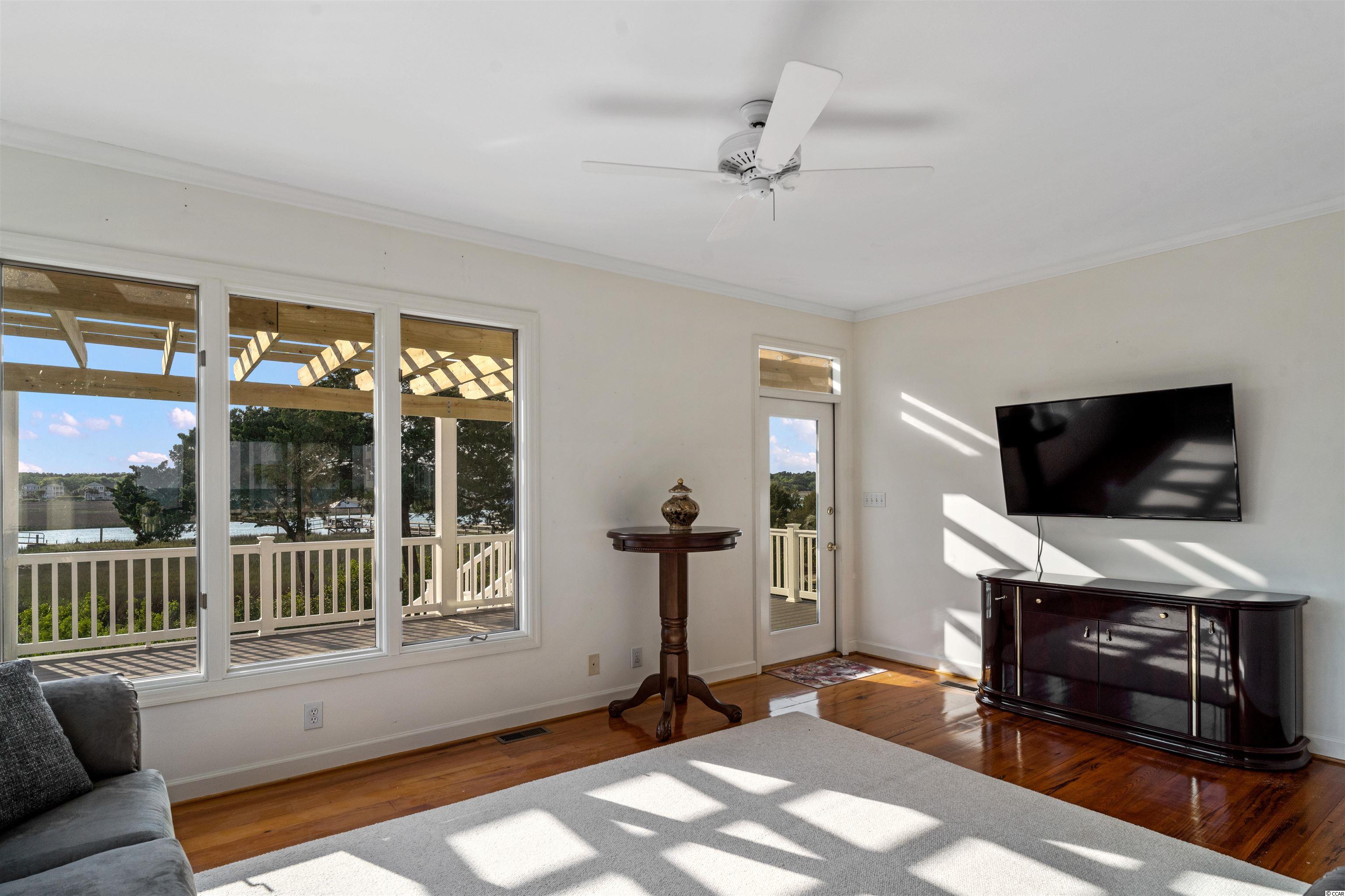 This is the perfect place to call paradise at the end of the Island of Pawley's overlooking the Atlantic Ocean. The beautiful Inlet leading into the Ocean and a gated community for your privacy. The seller has just built a beautiful deck overlooking the peaceful Inlet that you can enjoy the cool breeze coming off the Ocean and those Sunsets. This is the perfect vacation home for the family to enjoy the lifestyle in Pawley's Island during the Spring Summer and Fall. As the climb the Crow's Nest on top of the home the view of the Atlantic Ocean is breathless. The home features 3 bedrooms, 3 full baths, family room, living room, large kitchen and formal dining room. There is a walkway leading to dock on the Inlet for your boating and fishing pleasure. Please come see this piece of paradise before it gets away.