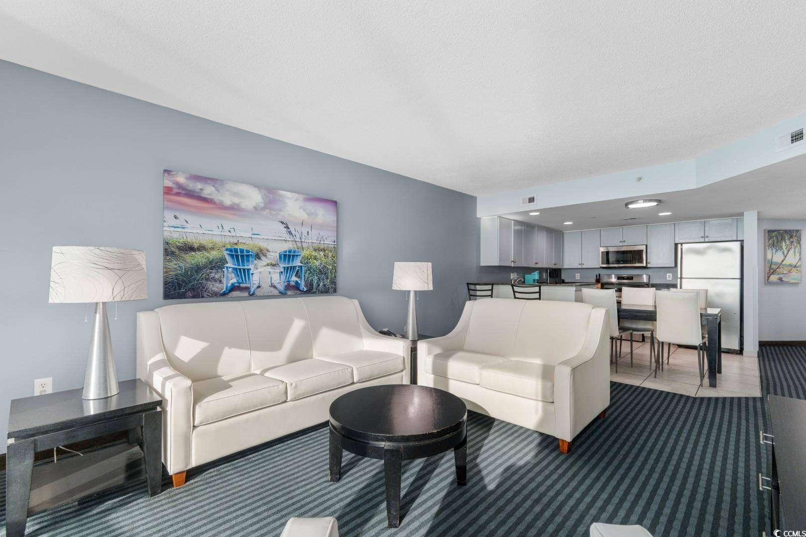 This stunning 3-bedroom, 3-bathroom condo is sold fully furnished and offers breathtaking ocean views from your private balcony. Perfect for a vacation getaway or an income-generating rental, this unit provides the ideal blend of comfort and convenience. The open-concept living area is bright and inviting, featuring updated light fixtures and a new AC unit in 2023. The modern kitchen boasts stainless steel appliances, a dishwasher, brand new range, and a breakfast bar, brand new washer and dryer. Each bedroom is spacious and features access to its own bathroom, while the master also includes access to the oceanfront balcony. Additional features include an in-unit washer, new couches and chairs in 2024, Nearly all light fixtures were upgraded in late 2024, and all light switches were changed to modern rocker switches. To enhance the coastal feel, new pictures and lamps were added throughout the unit, and an owner's box with a few power tools will remain with the property. Enjoy resort-style living with easy access to the beach, dining, shopping, and entertainment. Don't miss this incredible opportunity. Schedule your showing today!
