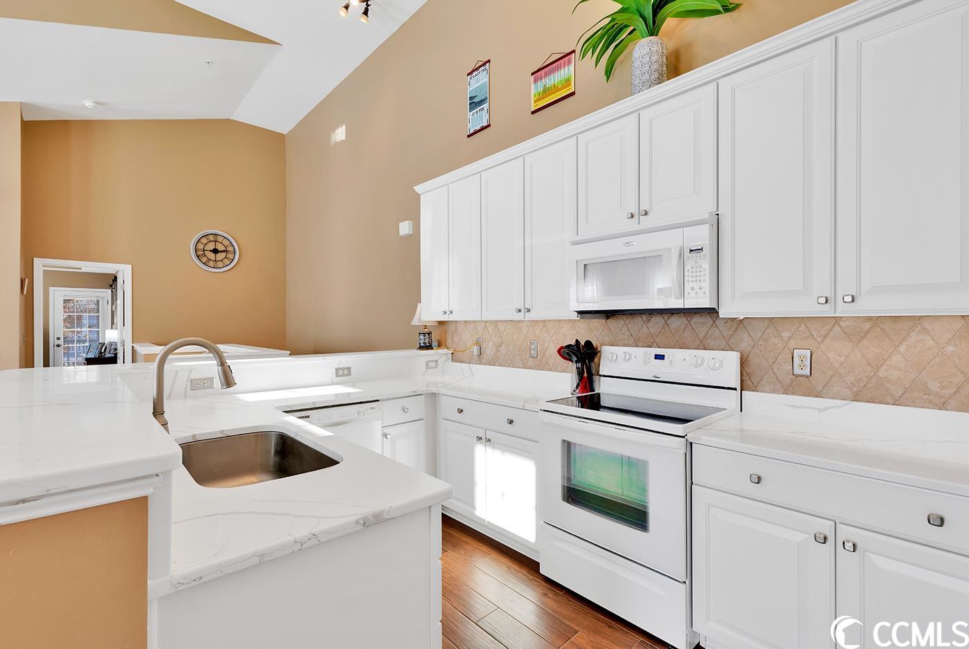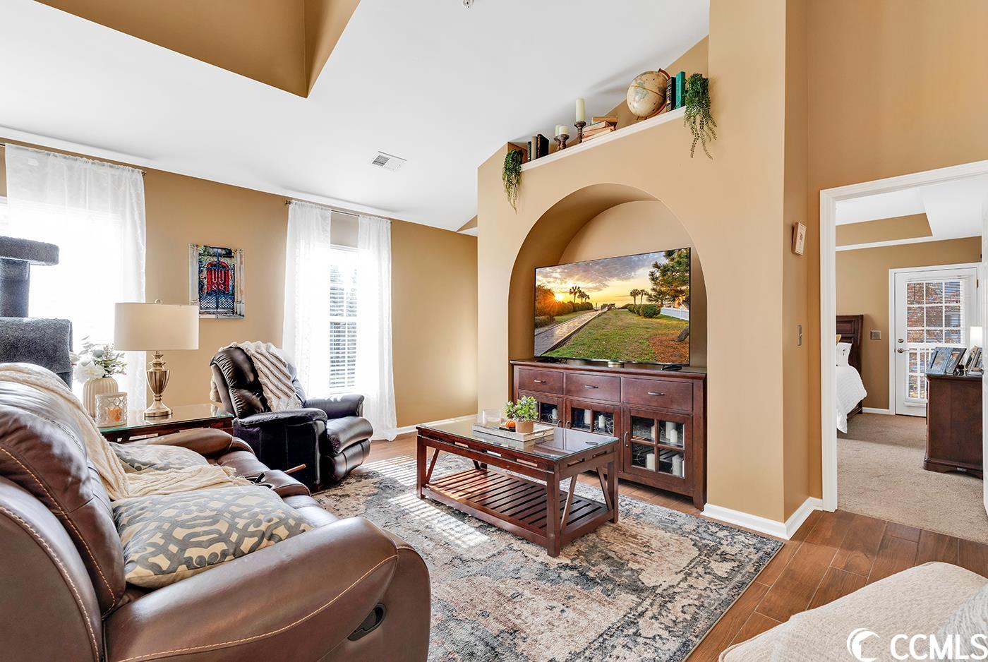 Step into this generously proportioned two-bedroom, two-bath unit situated in Cambridge at The International Club. Upon entry, a welcoming spacious foyer sets the tone for a warm reception of guests. Ascending the stairs, you'll be greeted by soaring ceilings and an abundance of natural light that fills the space. The living room, dining room, and kitchen flow seamlessly, creating an open and inviting environment that's perfect for entertaining. The kitchen has recently undergone a stunning remodel, featuring elegant quartz countertops and tasteful cabinet lighting. The master bedroom is a tranquil retreat, complete with a ceiling fan, a walk-in closet, an ensuite bath, and convenient access to the covered balcony. In the master bath, you'll find a double vanity, a garden tub with a glass door enclosure, and a private water closet. The home's thoughtful split-floor plan provides privacy, with the second bedroom offering ample space and its own access to the full second bath located on the same hall. Additionally, a dedicated laundry room offers ample storage space for overflow items. Downstairs, you'll find a private garage with an impressive length of approximately 40 feet, providing ample room for a car and storage, or even potentially a golf cart for neighborhood exploration. This unit combines convenience, elegance, and a well-designed layout to create a comfortable and inviting living space. The International Club of Myrtle Beach stands as one of the most coveted tee times in the Grand Strand area, offering a harmonious blend of innovative design and breathtaking natural vistas. Nestled in the historic coastal enclave of Murrells Inlet, approximately 15 miles south of Myrtle Beach, the International Club transports you to a world apart from the vibrant city lights. Enveloped by maritime woodlands and wetlands, this masterful creation by Willard Byrd harmonizes with the Lowcountry terrain, presenting a course that is as striking as it is demanding. Spanning an impressive 6,790 yards from the back tees, the meticulously tended fairways and immaculate greens wind their way through sinuous live oaks and stately pines. Artfully constructed bunkers and traps further elevate the level of skill required. Golfers can relish in the modern amenities and conveniences of a world-class course, complete with GPS technology for precise distance measurements and contemporary on-site villas. Additionally, they have the opportunity to savor the essence of Lowcountry living, creating a truly unique and immersive golfing experience.