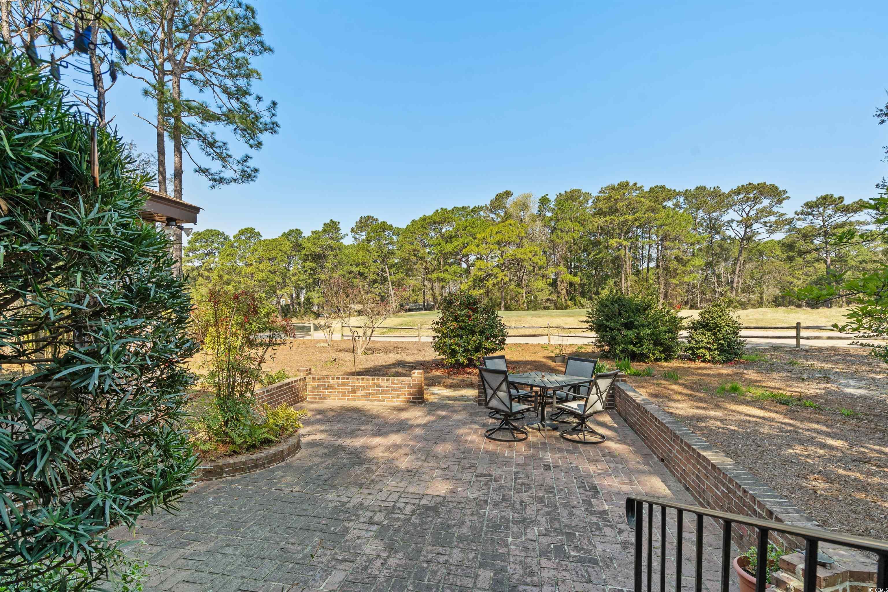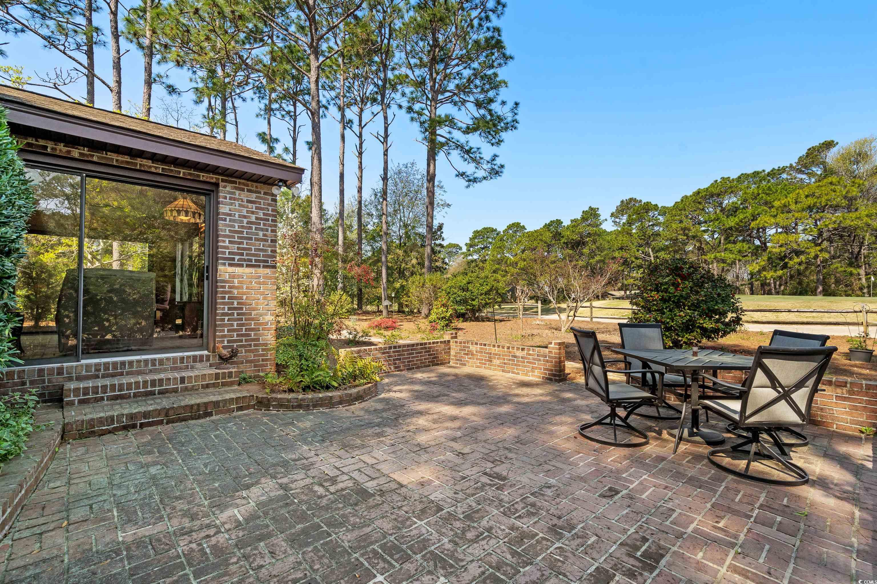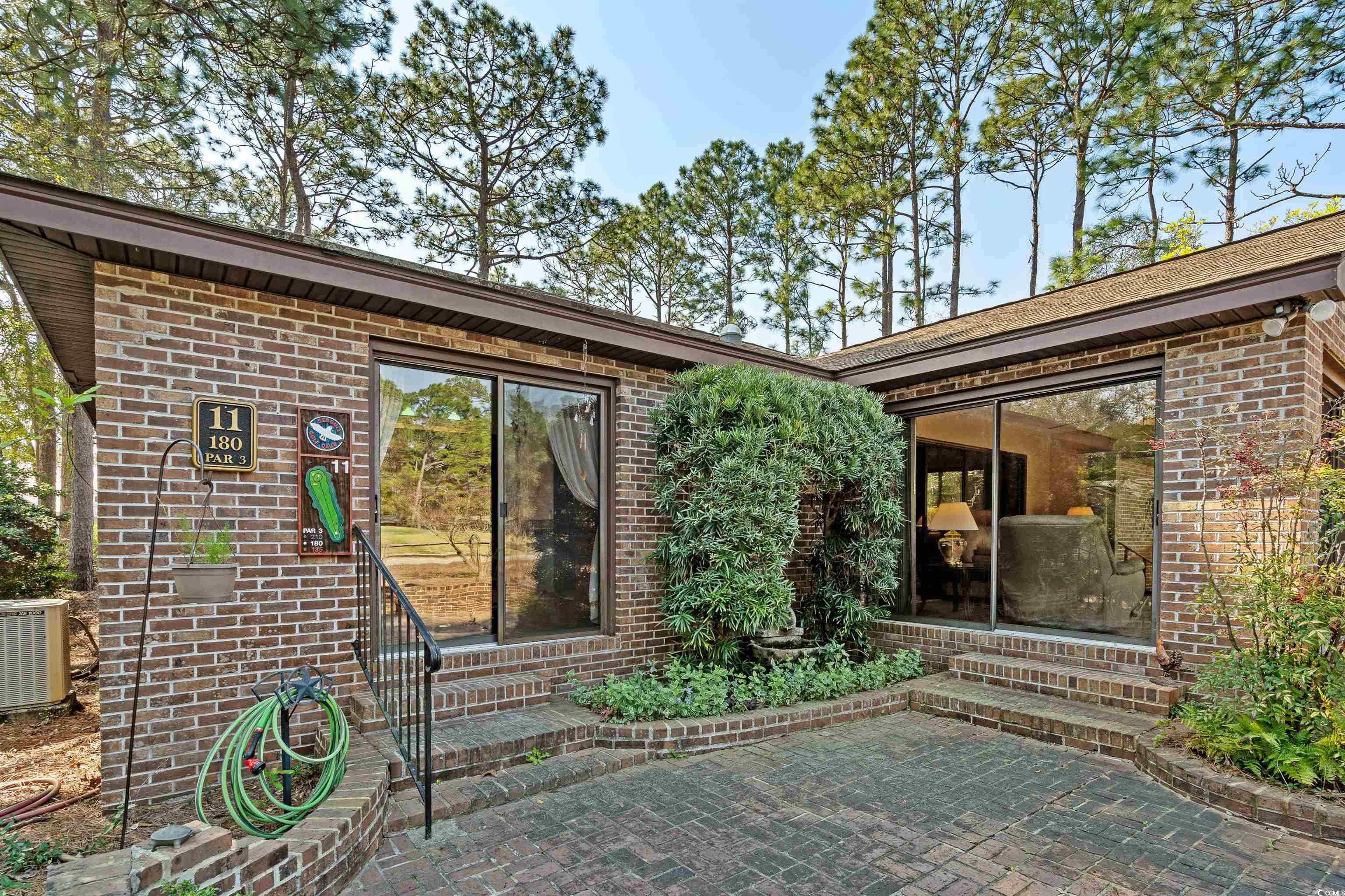 Discover this solid, well-built, all-brick home in Hagley Estates, just down the road from the Intercoastal Waterway Boat Landing! It's located on the 11th hole of the award-winning Founder's Club Golf Course, offering nicely landscaped views from your outdoor living space. This home is of exceptional value. Featuring ample parking with a circular driveway, a greenhouse, and an outdoor shed for added convenience. The attached oversized two-car garage connects to the home via a covered breezeway. Two generously sized bedrooms and a full bathroom with a walk-in shower, solar lights, and laundry hookups add to the home's appeal. The front room at the entrance, previously used as an office, offers flexibility and could be used as a small bedroom. The spacious living room splits into the Carolina room, offering panoramic views and brick flooring with sliding glass doors! The kitchen features quartz countertops, a matching backsplash, and plenty of cabinets, providing a stylish look and lots of storage for an easy cooking experience. Additionally, the dining area leads to a brick courtyard perfect for al fresco dining. Southern-style landscaping, highlighted by vibrant camellias and lush greenery, creates a serene outdoor oasis. Enjoy multiple outdoor sitting areas, including a quaint breezeway in the front and a charming boardwalk patio along the side a favorite spot for the owner to greet visiting family. Hagley Estates is a highly sought-after secluded community in Pawleys Island, South Carolina. Located off Highway 17 S, its less than a few miles from the Atlantic Ocean and has easy access to the Intracoastal Waterway. This fantastic location is tucked away at the south end of Pawleys Island, just a short drive to Georgetown, 45 Minutes or so to Myrtle Beach, and just over an hour to Charleston!