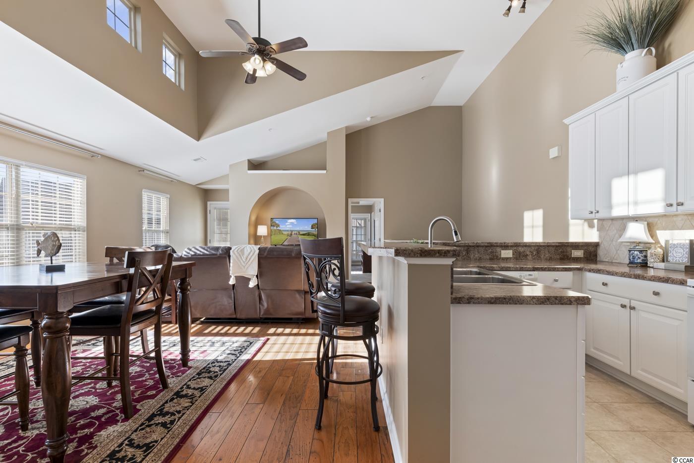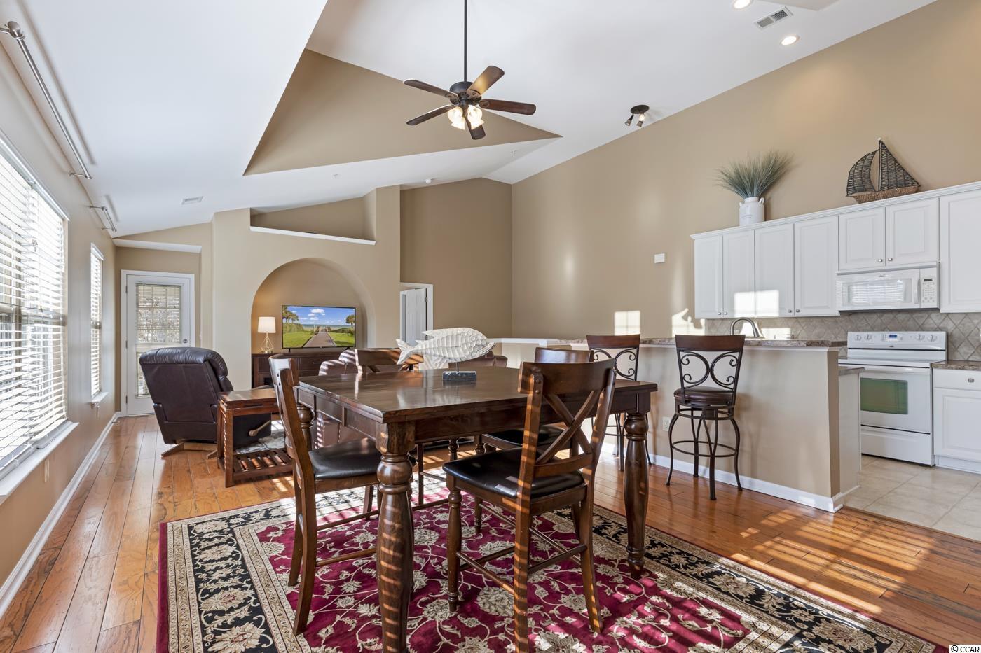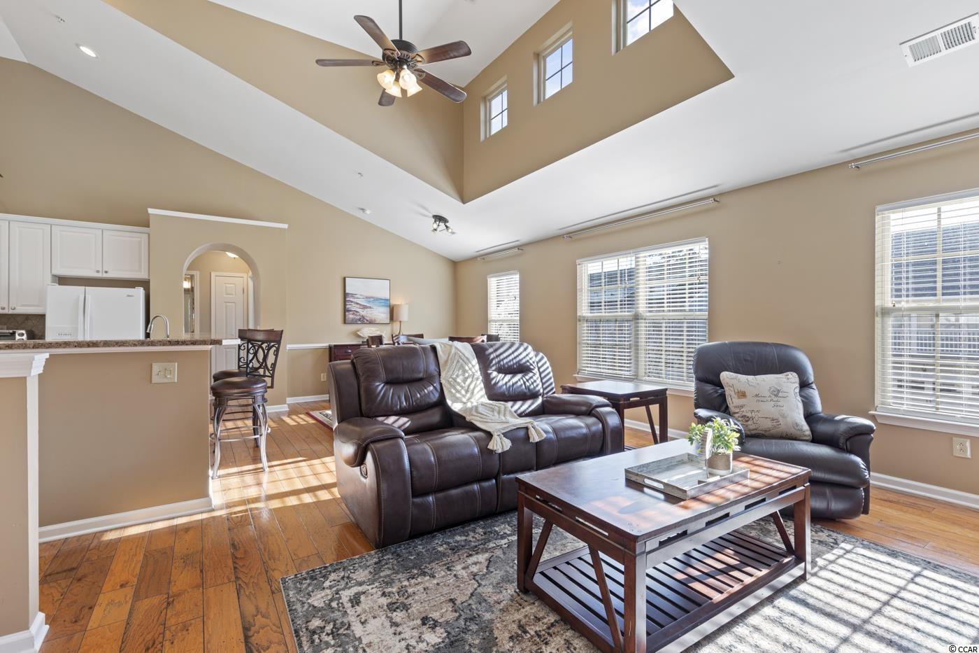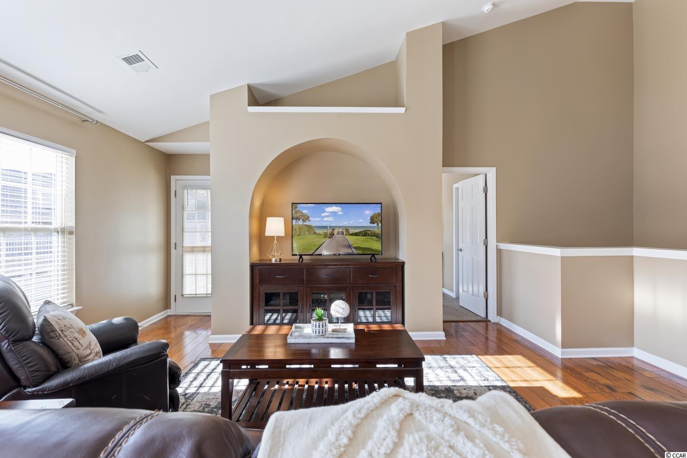 BRIGHT & VERSATILE OPEN CONCEPT CORNER UNIT, 2 BEDROOM 2 FULL BATH with ATTACHED EXTENDED 1 CAR GARAGE WITH 40FT LENGTH SPACE FOR TWO CARS and EXPANSIVE WRAP AROUND FRONT and SIDE BALCONY ! From the moment you arrive in the Prestigious International Club will you be taken back by the Level of QUALITY and MAINTENCE the Community Landscaping and GOLF COURSE BOASTS. When you arrive pull into the DRIVEWAY or the ATTACHED EXTENDED LENGTH DOUBLE CAR GARAGE for Easy Access. Upon entering the Home a Oversized FOYER Welcomes you, making daily comings and goings a breeze. As you travel upstairs, BEAUTIFUL HARDWOOD FLOORS greet you and SOARING VAULTED CEILINGS are framed with an ABUNDANCE of ENDLESS WINDOWS. The EXPANSIVE OPEN FLOOR PLAN provides endless options including a Dining Area and Well Appointed Kitchen that will meet all of your cooking needs. Perfect for Entertaining. Next, you'll find the spacious Master Bedroom with WALK-IN CLOSET and EN-SUITE boasting PRIVATE ACCESS to the BALCONY. On the opposite side of the townhome you will find a quaint 2nd Bedroom a FULL BATH and Large Laundry Room with Cabinets. Once you've taken in all this home has to offer head outdoors where HAPPINESS can be FOUND in the Historic Seaside town of Murrells Inlet and The International Club, located 15 minutes south of Myrtle Beach. ONLY 5 MILES TO THE ATLANTIC OCEAN and STEPS TO GOLF. OR enjoy a day at the neighborhood POOL @ Parmelee with friends and finish the day with FRESH SEAFOOD INLET SIDE at the FAMOUS MURRELLS INLET MARSHWALK. Friendly reminder Murrells Inlet is the SEAFOOD CAPITAL of SC* in case you also enjoy Fishing, Kayaking and Paddle Boarding. Endless options are at your fingertips... all 20 minutes to Myrtle Beach International Airport ! The only thing missing is you and the memories you'll create.