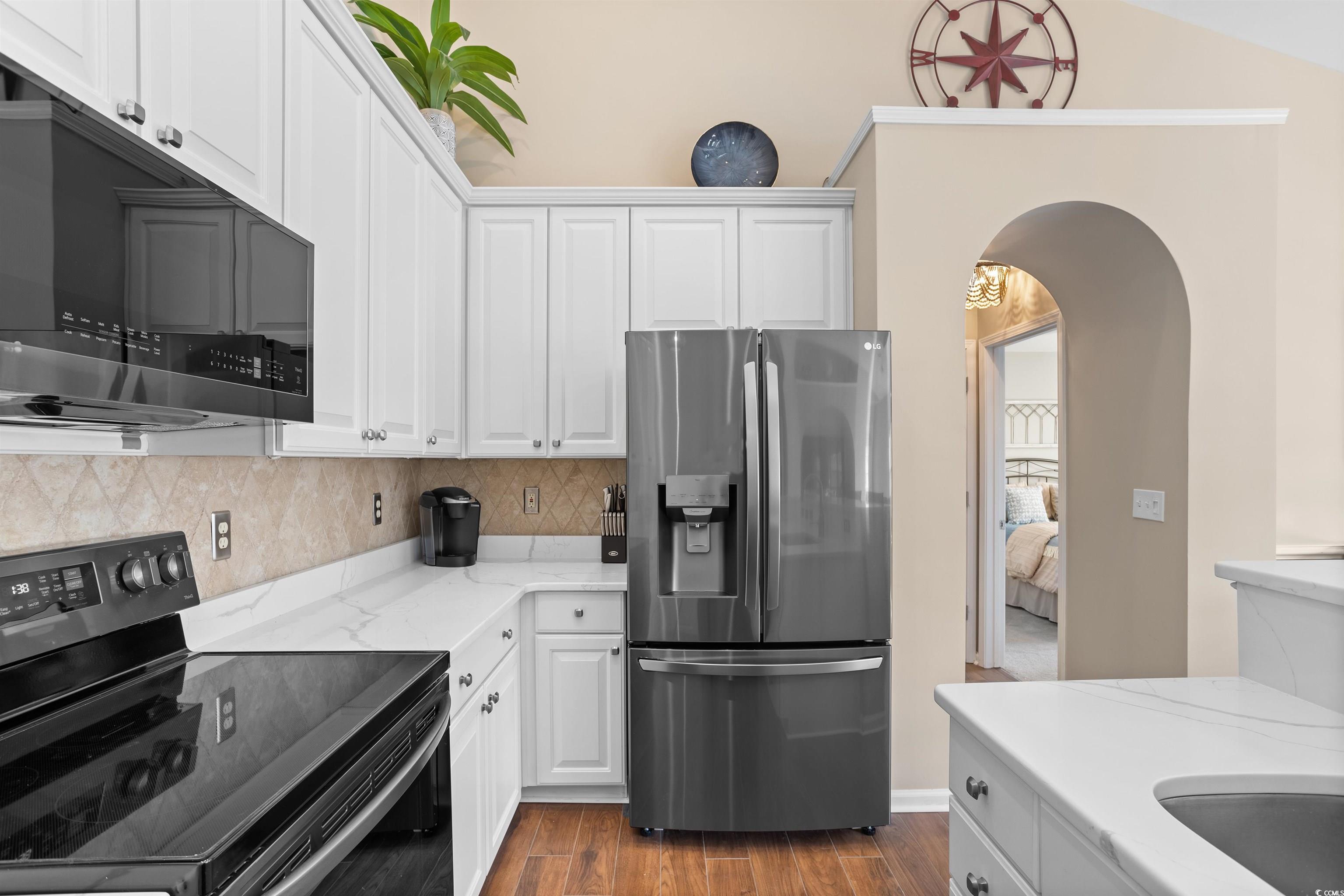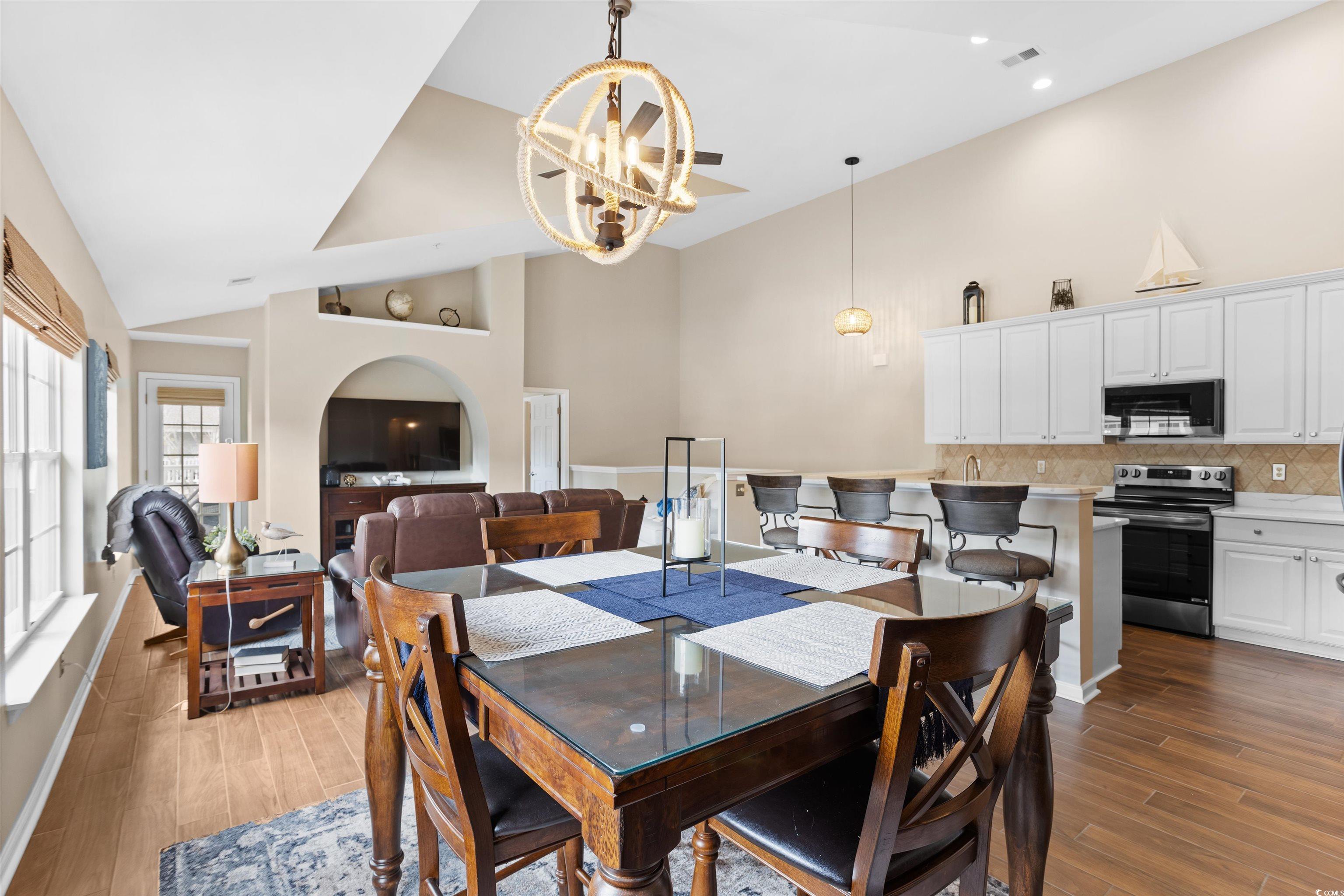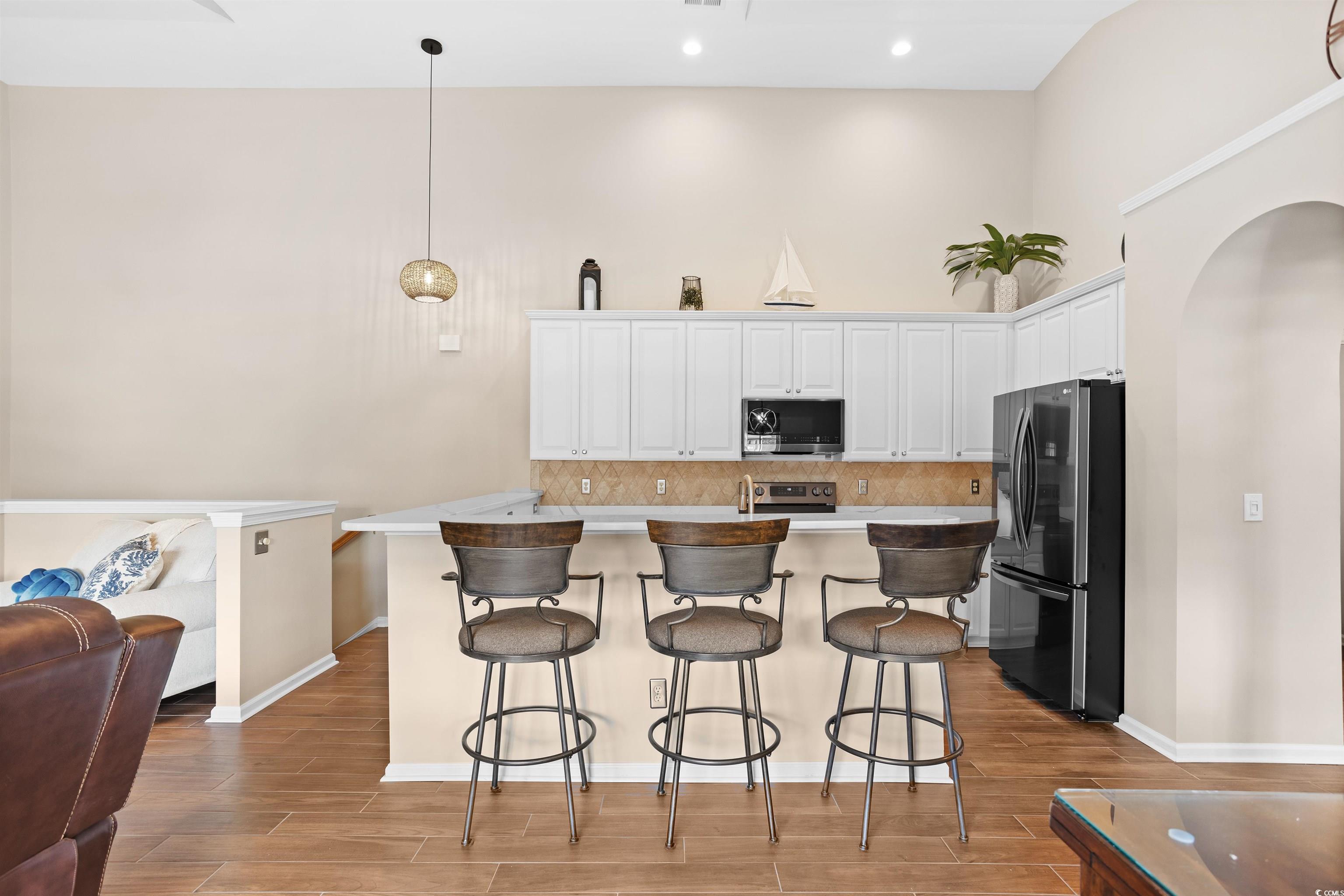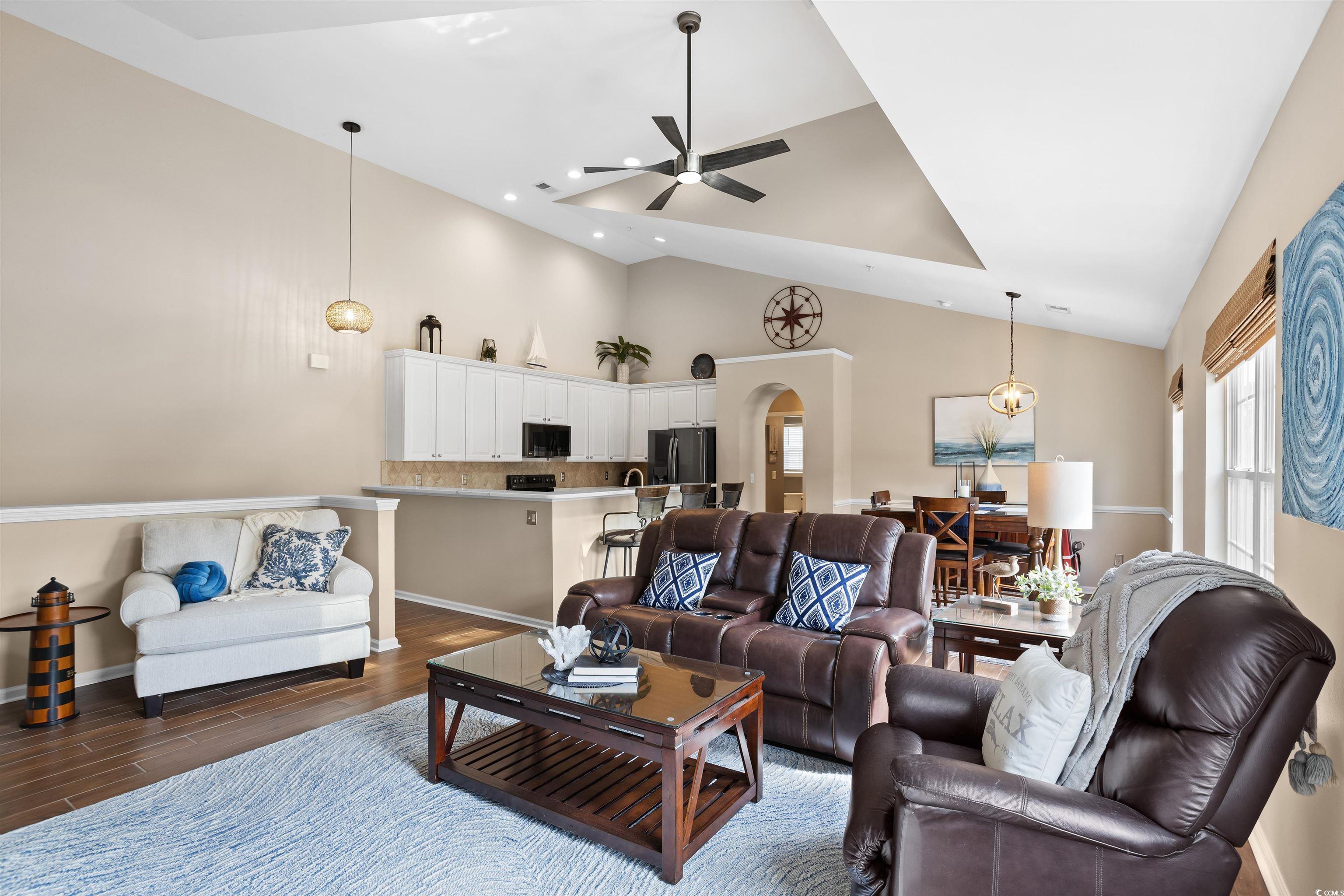 Fully Renovated, FURNISHED & in a Golf Course Community!!! This is a true turnkey property with 2 Bedrooms & 2 Full Bathrooms PLUS Private Garage. Sophisticated, sunny & spacious with vaulted ceilings and designer-chosen details. Brand New Smudge-Proof Black Stainless kitchen appliances (2024), new quartz kitchen counter and large stainless sink (2023), new lighting over dining area and at top of stairs (2024), and hallway fixture (2023). Fresh paint throughout (2024), new TVs (2024), new blinds (2024), large new chair with lighthouse side table (2024), new wood-like ceramic floors in living/kitchen/dining areas plus laundry and both bathrooms (2023). Primary suite upgrades include new barndoor between bedroom and bath (2023), shower glass (2023). Guest bath new shower glass (2023), guest room new ceiling fan (2023). Washer, dryer and refrigerator all convey. New rugs in living and dining areas (2024) PLUS tons more. Don't let this one get away!!! All measurements and square footage are approximate. It is the buyers' responsibility to confirm square footage and HOA information prior to closing.