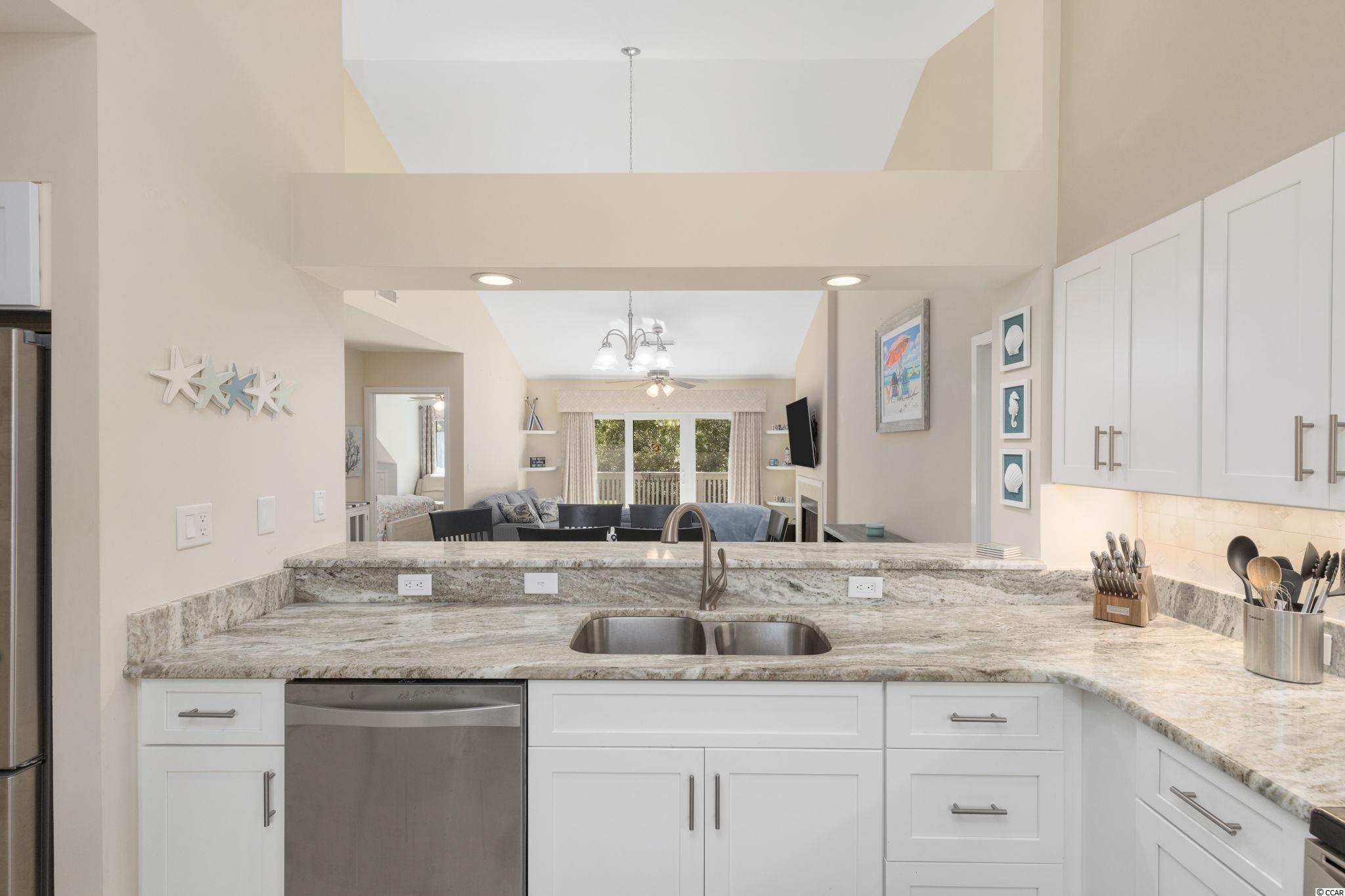 Introducing this spectacular 2nd floor 3 bedroom 3 bath end unit condo located in the exciting West Hyde Park section of Kingston Plantation. This piece of paradise comes tastefully furnished, wood look LVT & ceramic tile flooring, vaulted ceilings with fans, cozy wood burning fireplace, and a classic living/dining room combo showcasing a sliding glass door that opens up to the relaxing balcony overlooking a peaceful park setting. The fully equipped kitchen offers a stainless steel appliance package, a breakfast bar, granite counter tops, and includes an abundance of new cabinets. The master bedroom features a sitting area, private access to the master bath that includes a vanity with dual sinks, closet area, a comfort station, and a timeless tub/shower combo. The condo is completed with a second bedroom with an access to a private full bath, a third bedroom with access to the guest full guest bath, a laundry closet, and extra closet storage space. Kingston Planation offers world class amenities that include a waterpark, 9 resort pools, pool side cabanas, lazy river, sports & health club, gift shops, Coastal Grill, Vintage Twelve Restaurant, and shuttle service within the resort. This condo affords you easy access to the beach and golfing along with all of the other activities and happenings in Myrtle Beach including fun eateries, award winning off-Broadway shows, public fishing piers, and intriguing shopping adventures along the Grand Strand. Conveniently located to your everyday needs, including grocery stores, banks, post offices, medical centers, doctors offices, and pharmacies. Checkout our state of the art 3-D Virtual Tour.