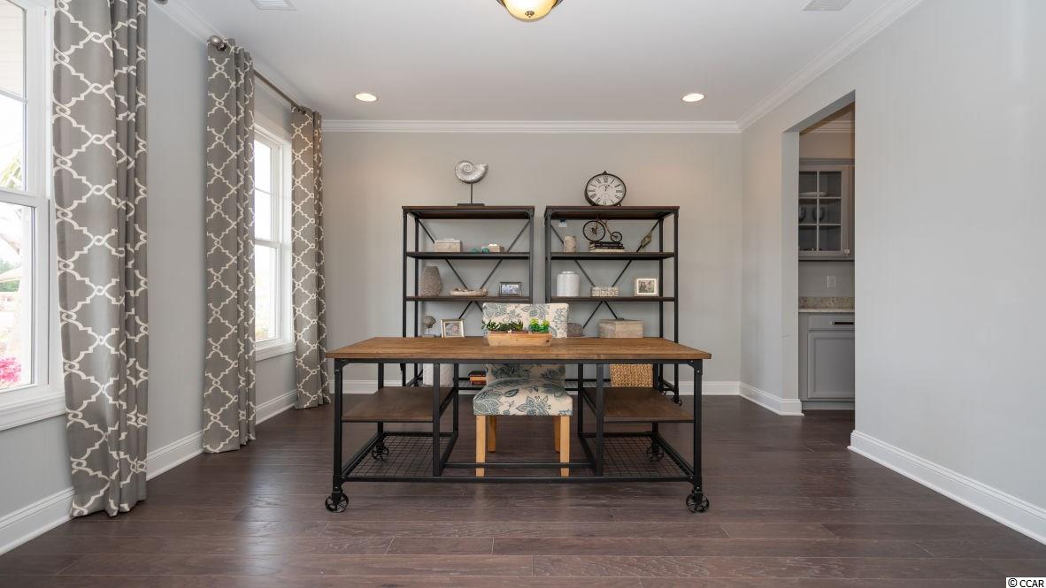 This popular plan brings functionality and style together! Incredible curb appeal is an understatement given the stacked front porches and tall entry door. Once inside, laminate wood flooring creates an inviting space and numerous windows bring in fantastic natural light. Off the entry is a spacious flex room. The large gourmet kitchen boasts granite countertops, an oversized island, stainless Whirlpool appliances, a walk-in pantry, and a gorgeous Butler's pantry. Spacious bedroom and full bathroom on the first floor is great for guests. Upstairs you will find the grand owner's suite with a cozy sitting room, huge walk-in closet, and en suite bath with large separate vanities, linen closet, and 5ft. shower! Rear screen porch! This home is located in a newest phase in a natural gas community in Carolina Forest! The Parks of Carolina Forest is a picturesque setting of ponds, an amazing amenity center, and park of the majestic ""Ten Oaks"" with a walking trail to get to the Carolina Forest library. *Photos are of a similar Harbor Oak floorplan. (Home and community information, including pricing, included features, terms, availability and amenities, are subject to change prior to sale at any time without notice or obligation. Square footages are approximate. Pictures, photographs, colors, features, and sizes are for illustration purposes only and will vary from the homes as built. Equal housing opportunity builder.)