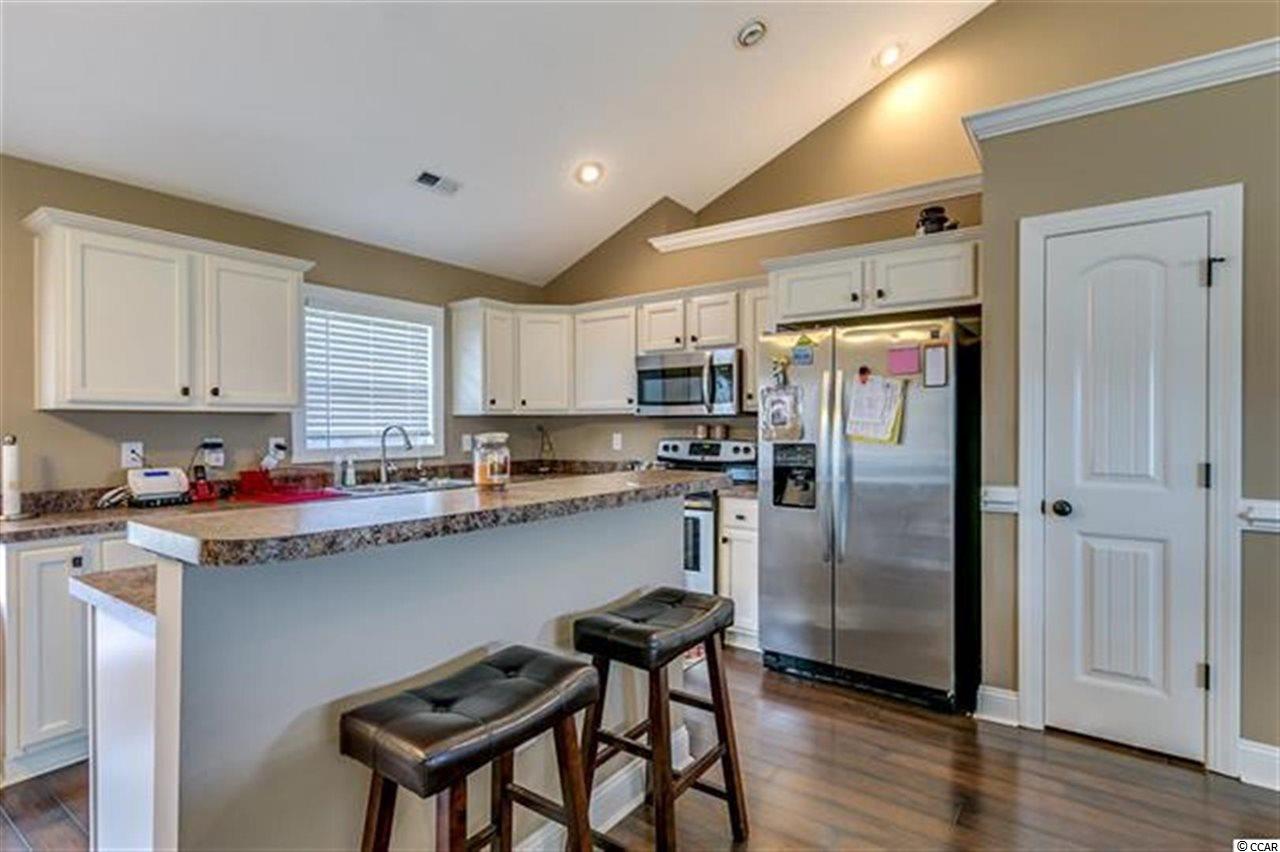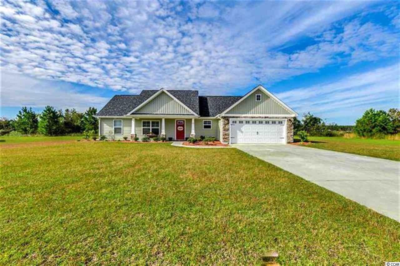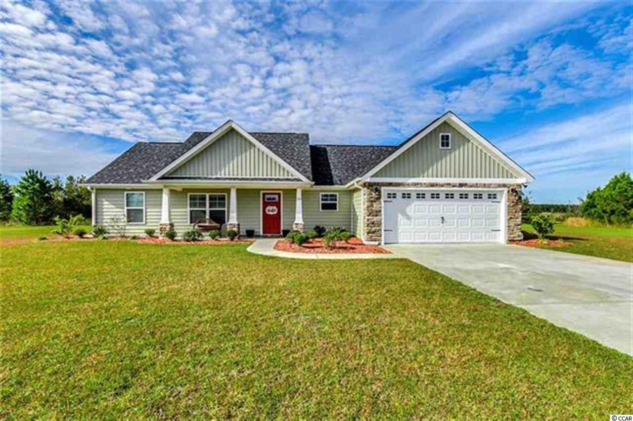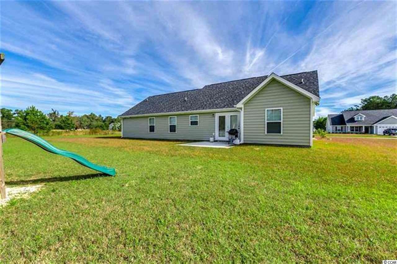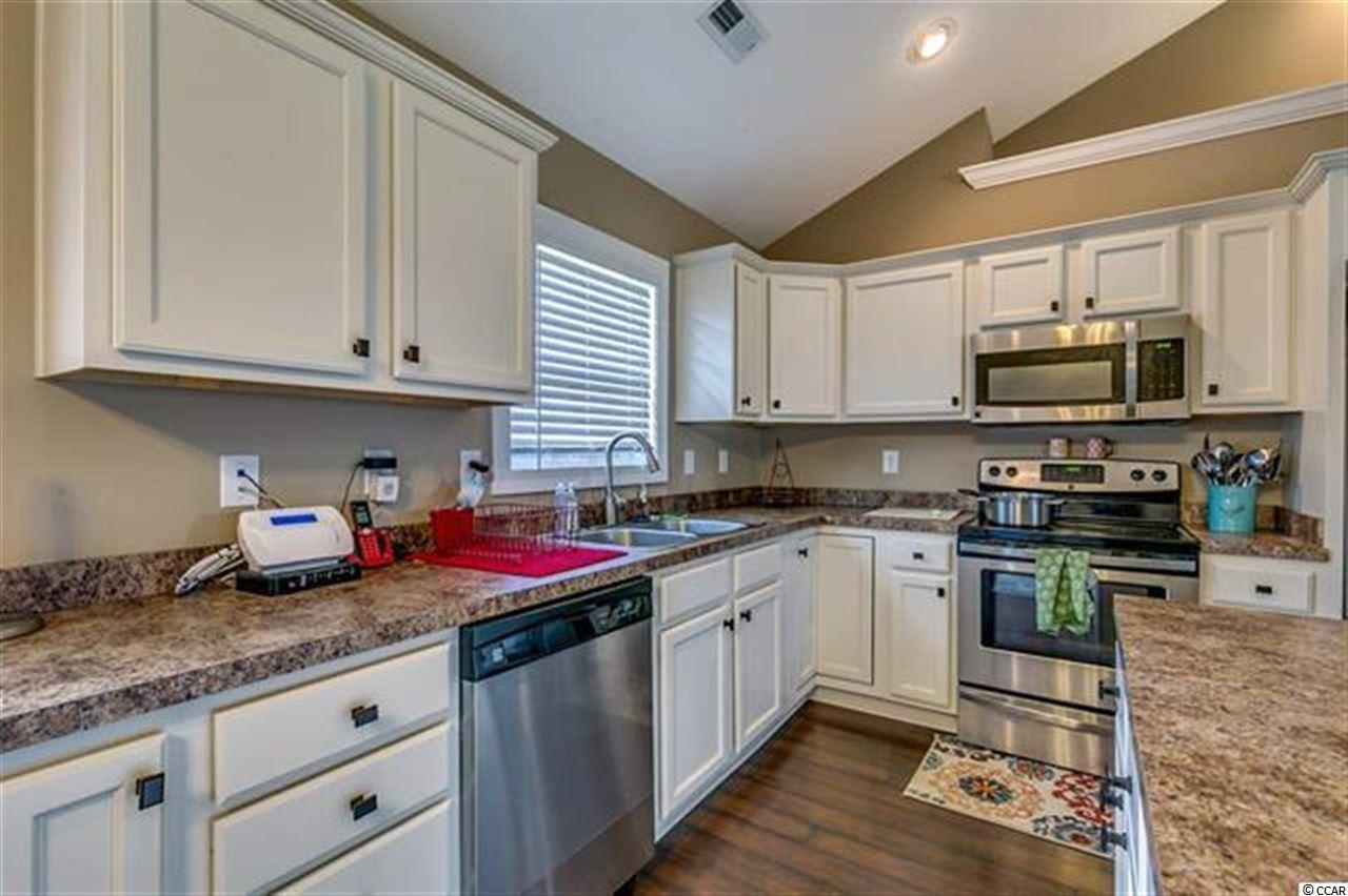 3 BEDROOM 2 BATH LOCATED ON 0.53 ACRE LOT- COZY FRONT PORCH- OPEN CONCEPT WITH WOOD LAMINATE FLOORING THRU LIVING, KITCHEN, AND DINING AREAS- KITCHEN FEATURES WORK ISLAND W/BREAKFAST BAR, PANTRY, STAINLESS APPLIANCES- LARGE MASTER SUITE BOASTS TRAY CEILING, WALK-IN-CLOSET, CORNER GARDEN TUB, SHOWER, AND DOUBLE SINKS- LOCATED ADJACENT TO COMMON AREA SONEIGHBORS ON ONLY ONE SIDE- PRIVATE BACKYARD- LOCATED 1.6 MILES FROM HWY 22 WITH EASY ACCESS TO NORTH END OF MYRTLE BEACH.