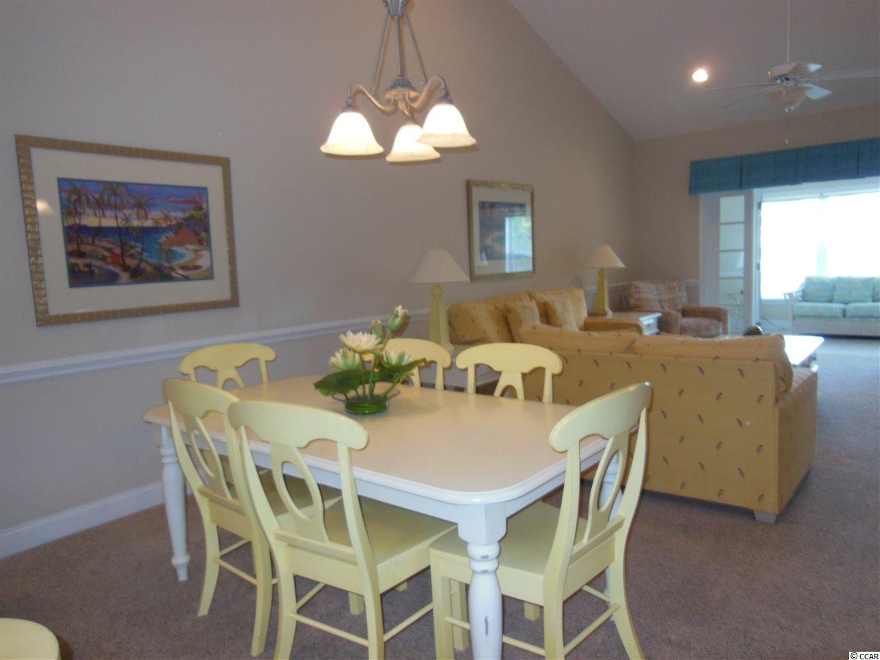 Beautifully decorated & professionally furnished (Includes all furnishings, artwork, accessories, TV's, kitchen equipment) . ELEVATOR in building. Top Floor - 3 bedroom, 2 bath (split BR plan) with open spacious living area. French Doors lead out to Carolina room with views of lake with fountain. Open Kitchen with breakfast bar. Large Laundry Room includes washer & dryer & cabinets for storage. Each unit has outside storage. Has tennis courts, Indoor Pool, Outdoor Pool, Picnic Area with Grill, Fitness Center,lovely Amenity Center. Daily Beach shuttle available during the summer season. Golf package included in HOA. Close to beach, shopping & restaurants. Great primary, vacation home with opportunity for vacation rental income.